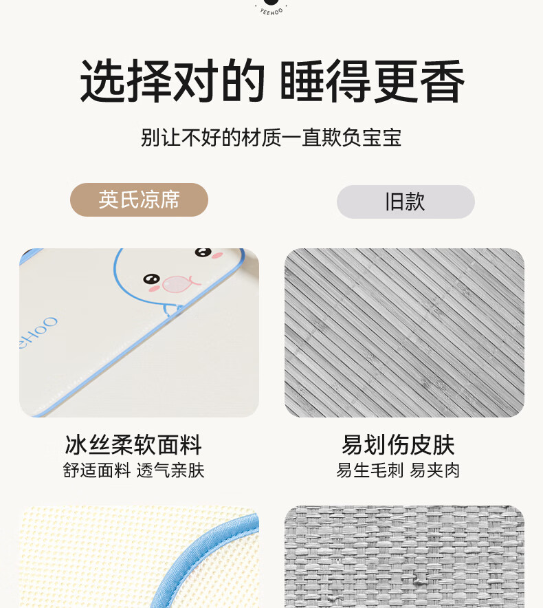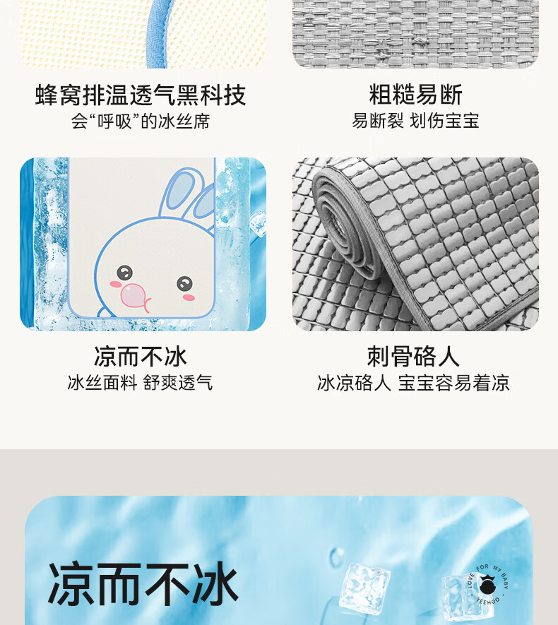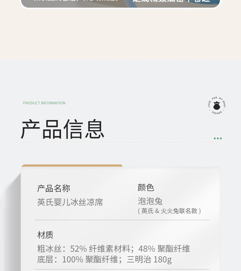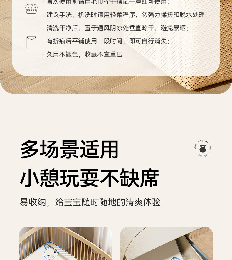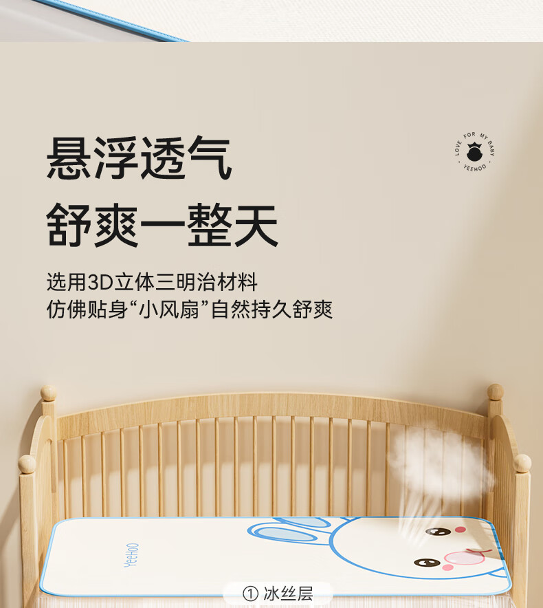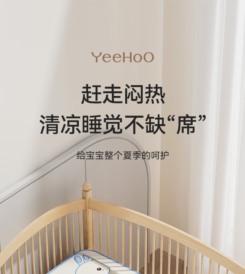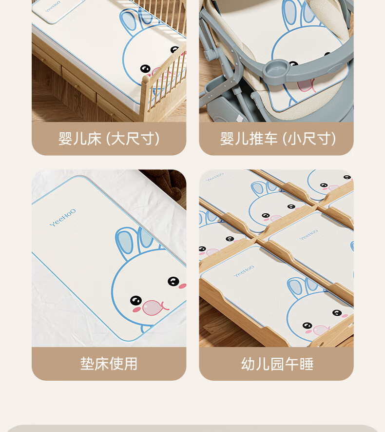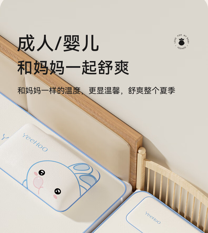 英氏(YEEHOO)婴儿综合日常护理席子冰丝凉夏天宝宝日常护理床上用品凉席 国宝熊【冰丝凉席】【可机洗】 120cm×65cm