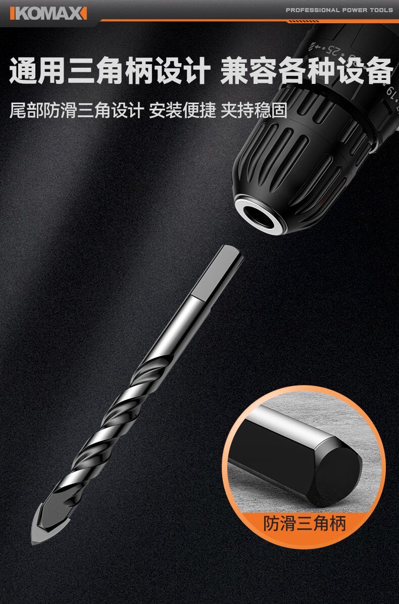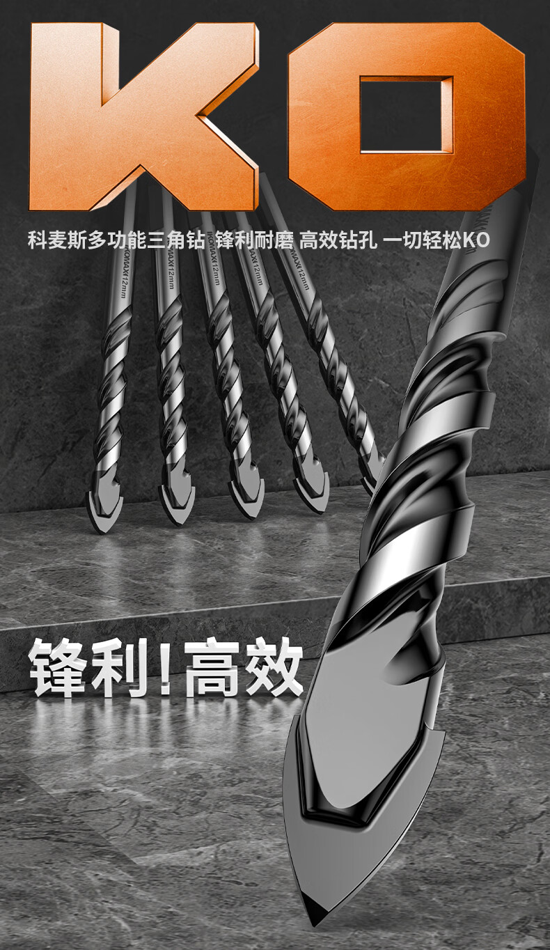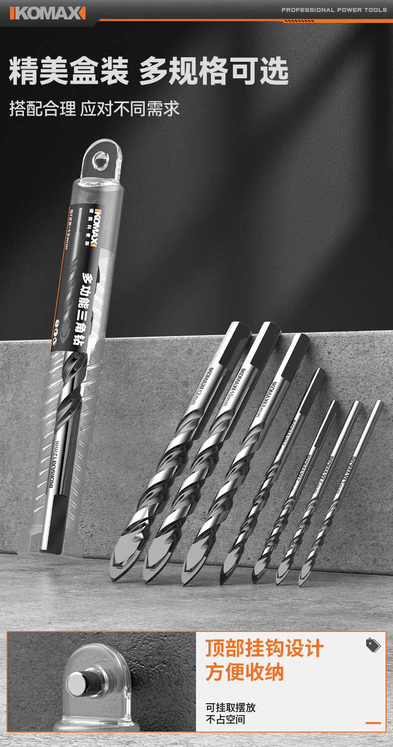 科麦斯(KOMAX)多功能高硬度合金三角钻头瓷砖混凝土大理石专用手电钻打孔钻头 多功能三角钻【3+4+5+6+8】共5支