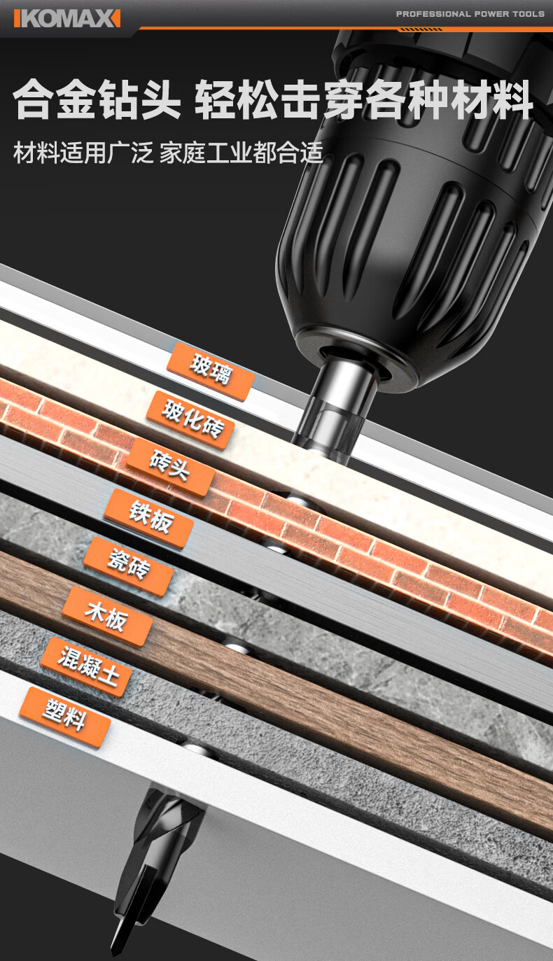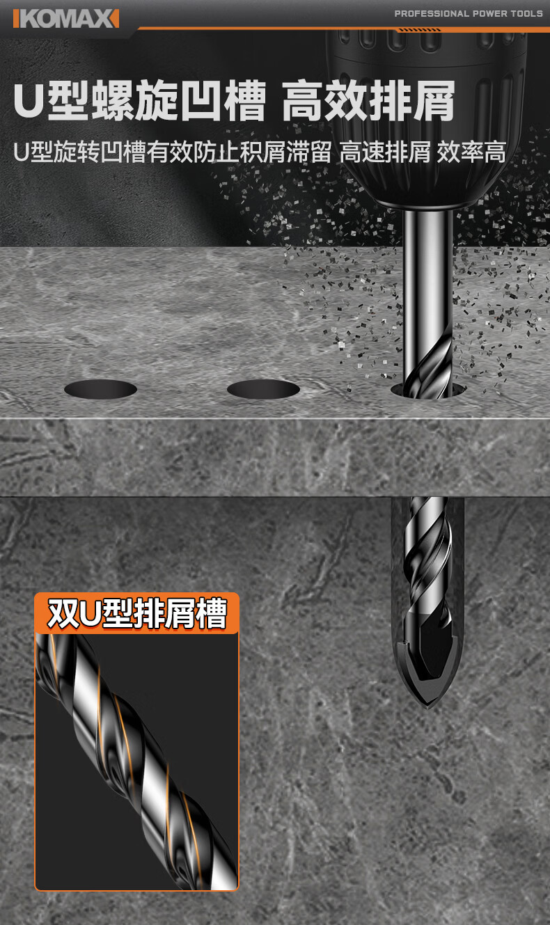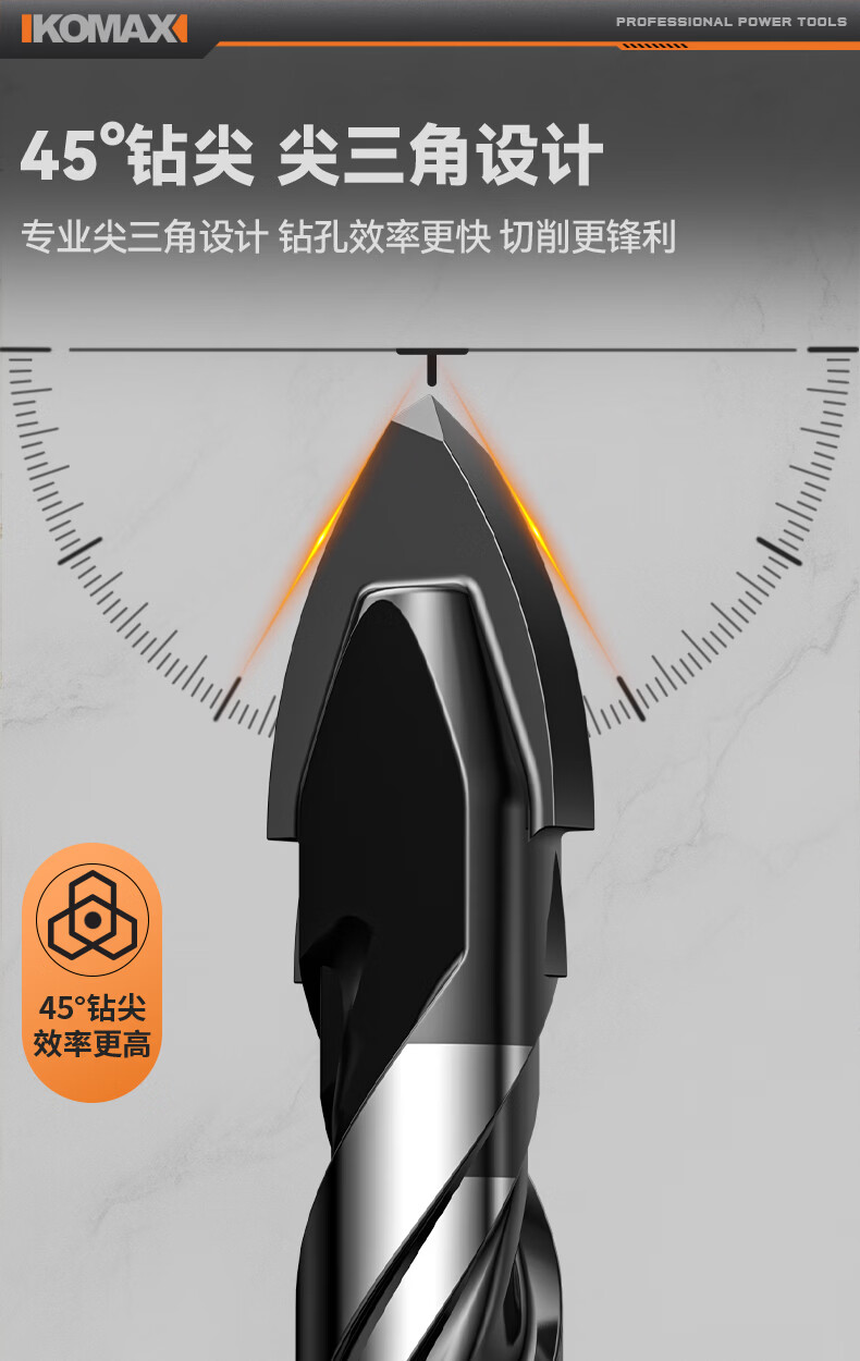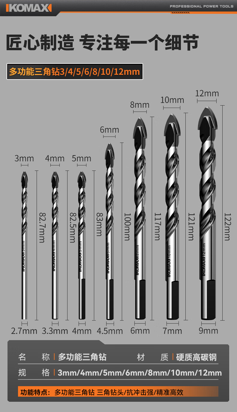 科麦斯(KOMAX)多功能高硬度合金三角钻头瓷砖混凝土大理石专用手电钻打孔钻头 多功能三角钻【3+4+5+6+8】共5支