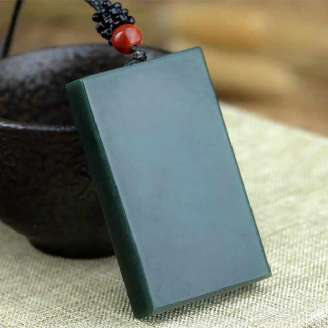 古甄轩和田玉吊坠定制青海料无事牌烟灰色刻字 尺寸约18*28毫米