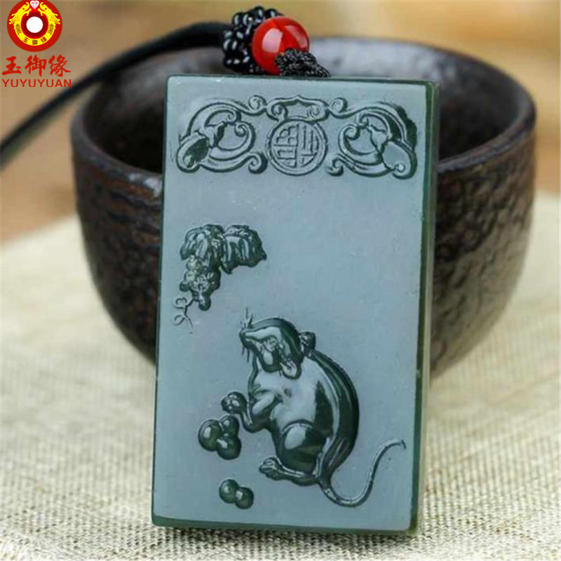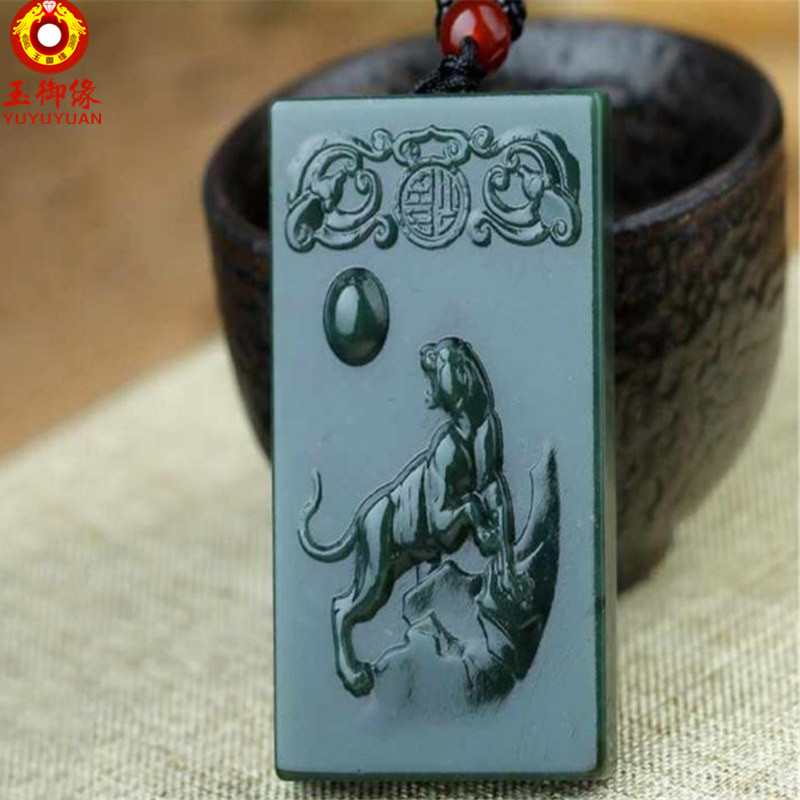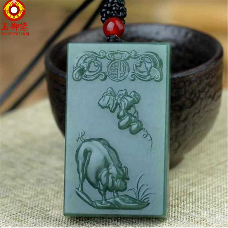 玉御缘 原创新款玉石青玉十二生肖玉吊坠鼠牛虎兔龙蛇马羊猴鸡狗猪玉珠玉佩本命年挂件男女款礼物带证书免 生肖猪吊坠+证书+精美包装