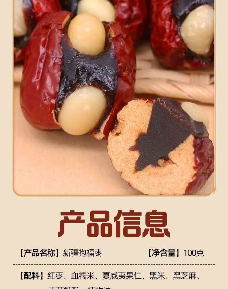 一品玉抱福枣暴富枣红枣夹血糯米夏威夷果仁 100g*4袋