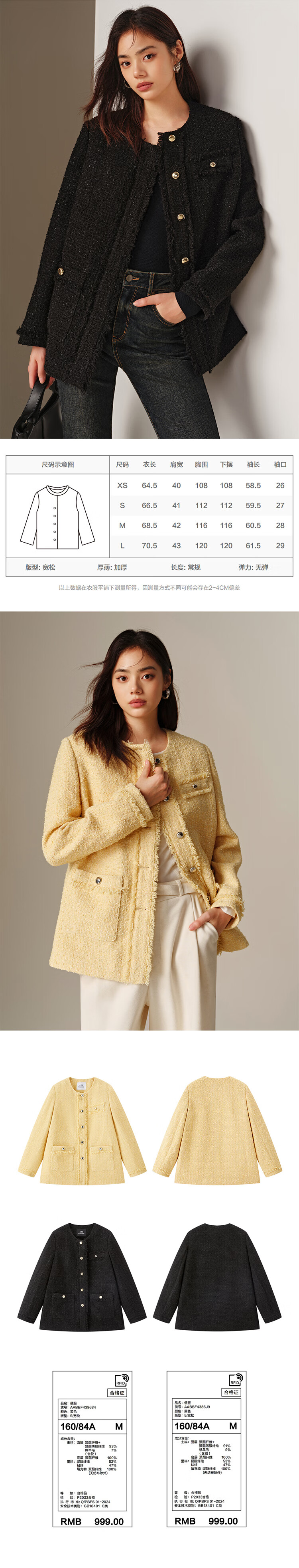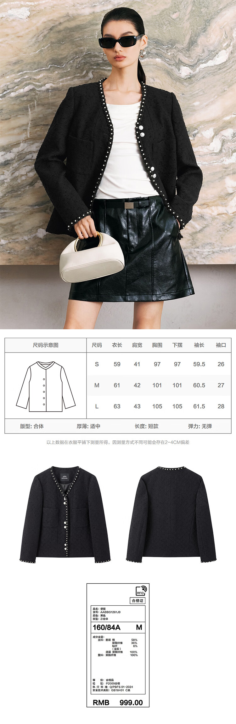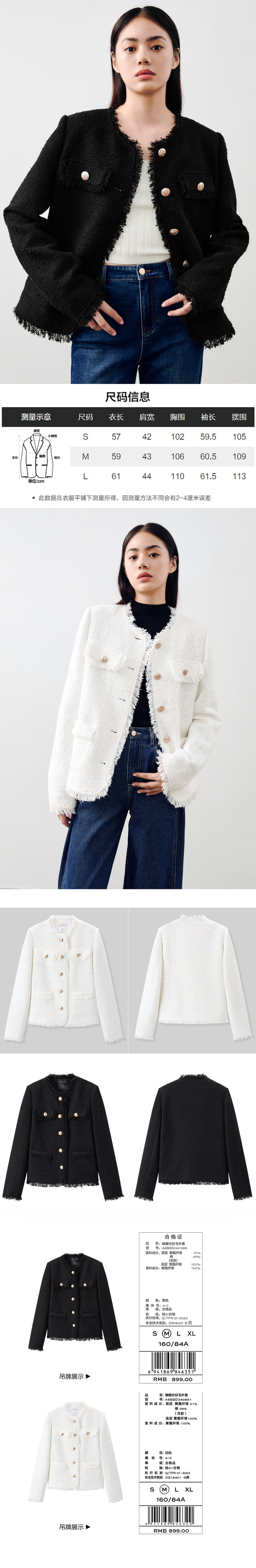 太平鸟秋冬外套集合链接新款女装小香风机车服PU外套冬装夹克 小香风外套白色 L