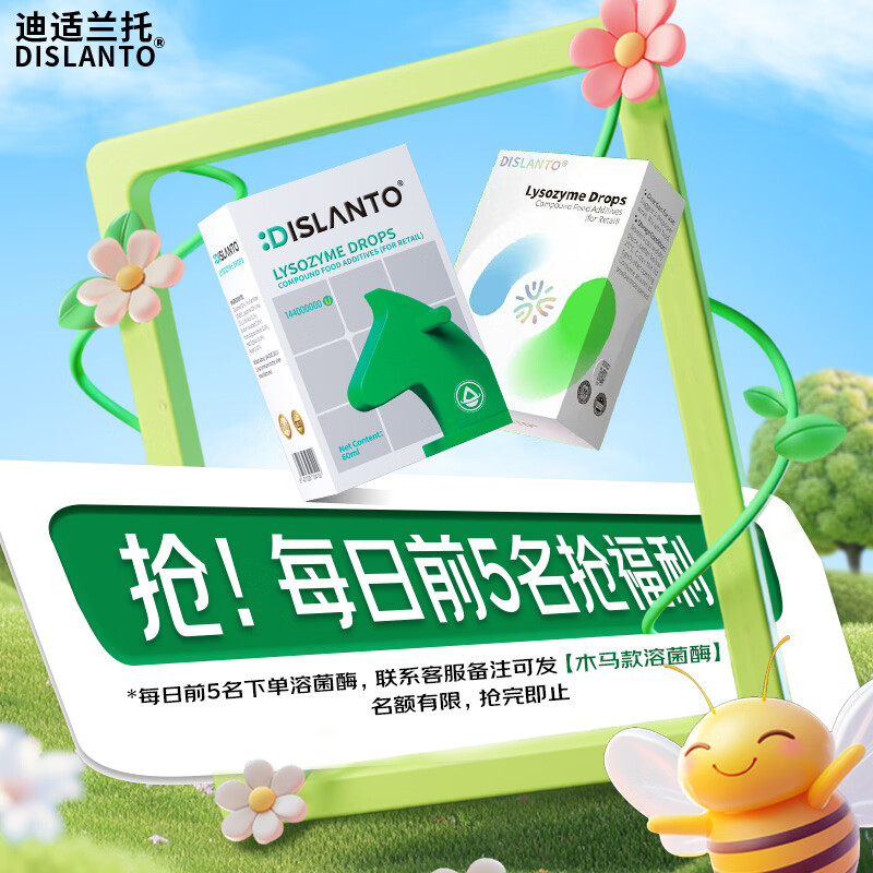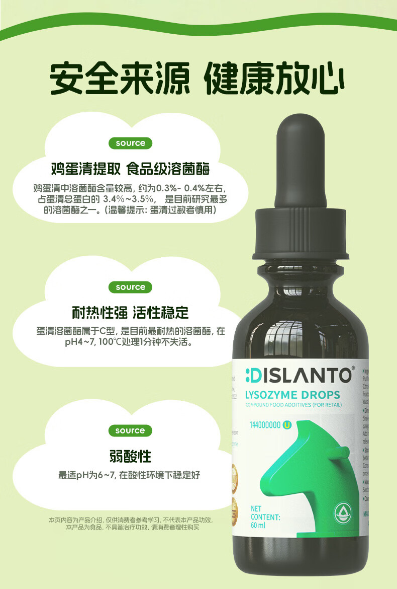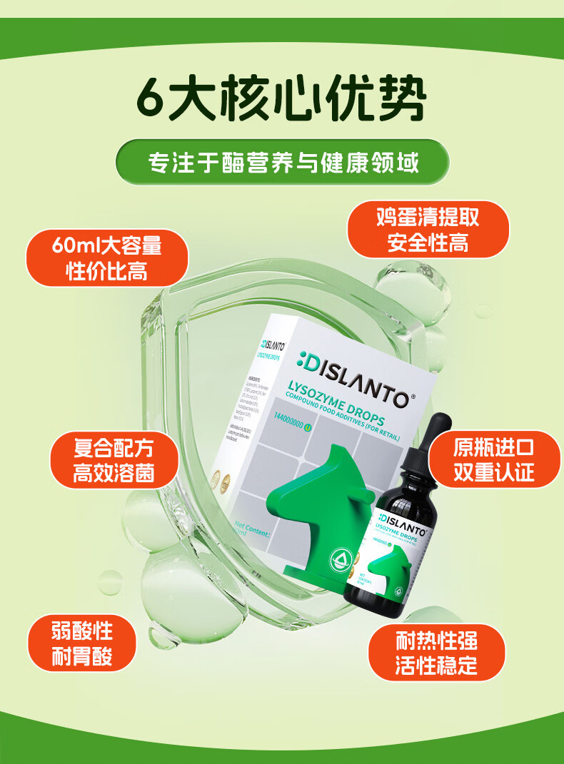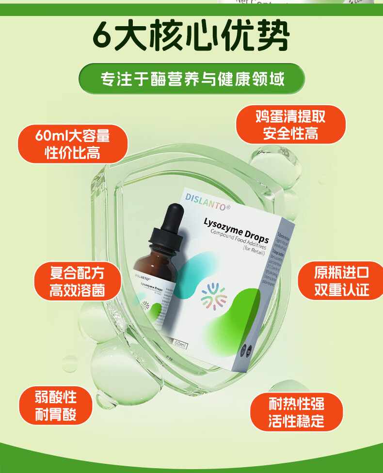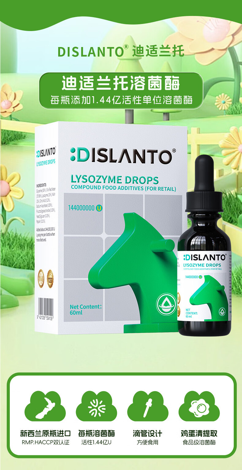 迪适兰托溶菌酶滴剂复配酶乳酸链球菌素蛋白酶弱酸性溶菌酶新西兰原装进口 【新西兰进口】溶菌酶 60ml*1瓶