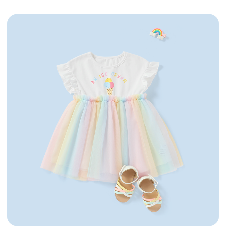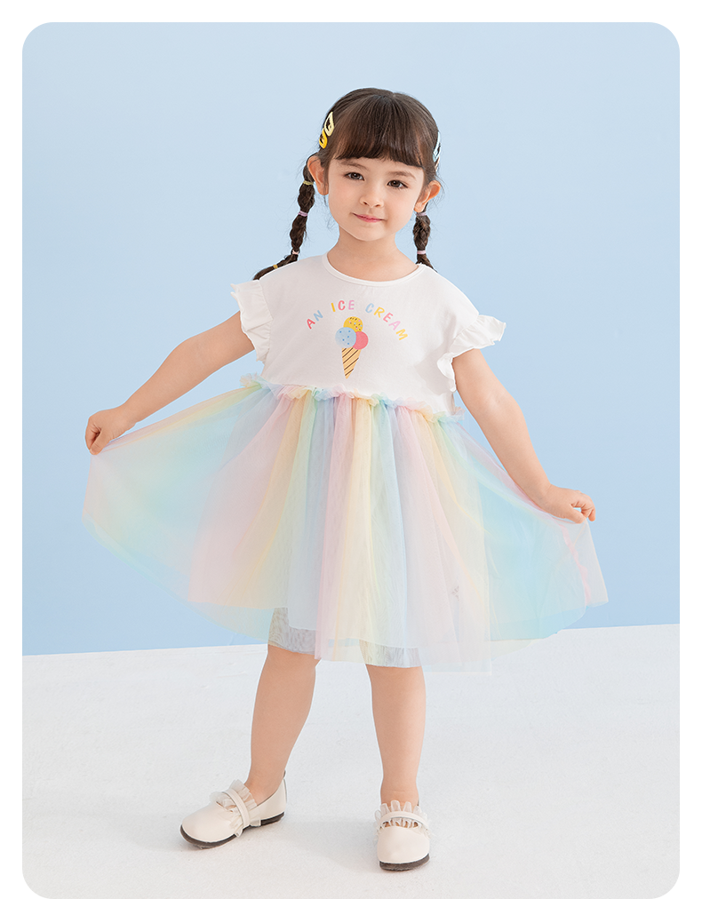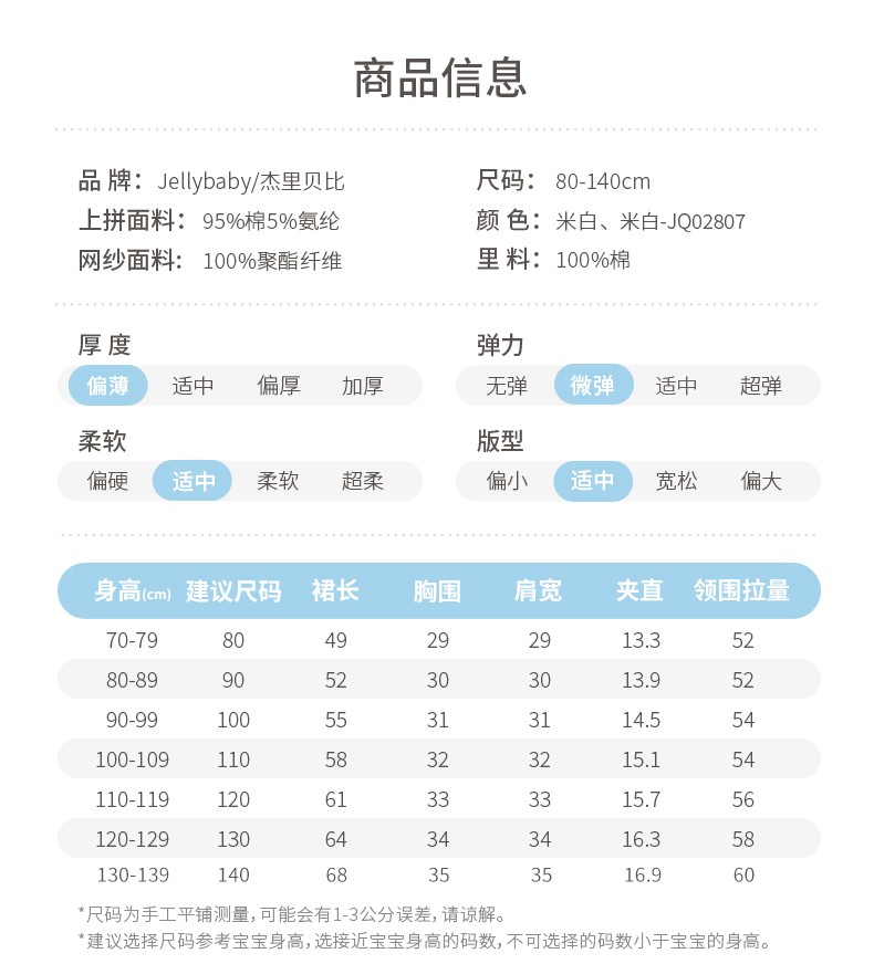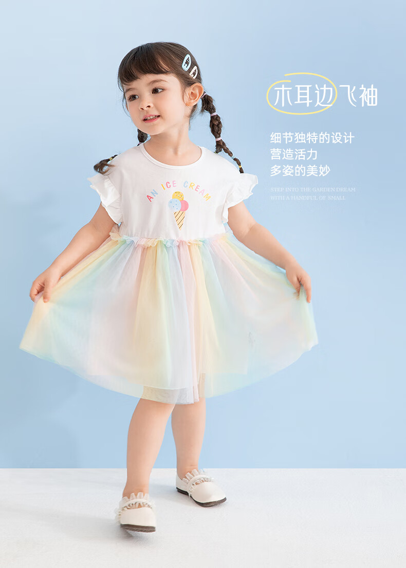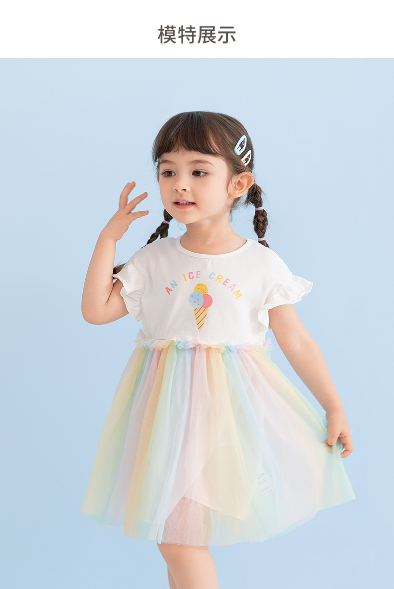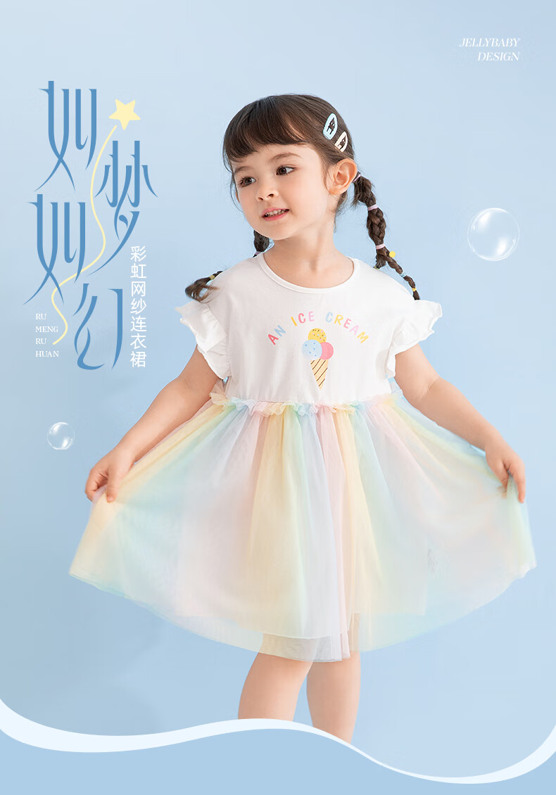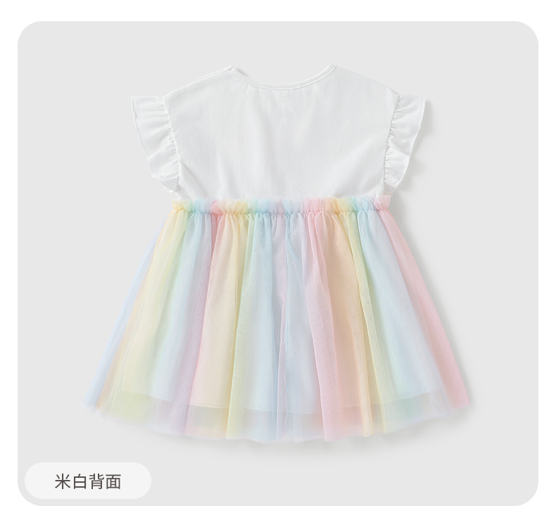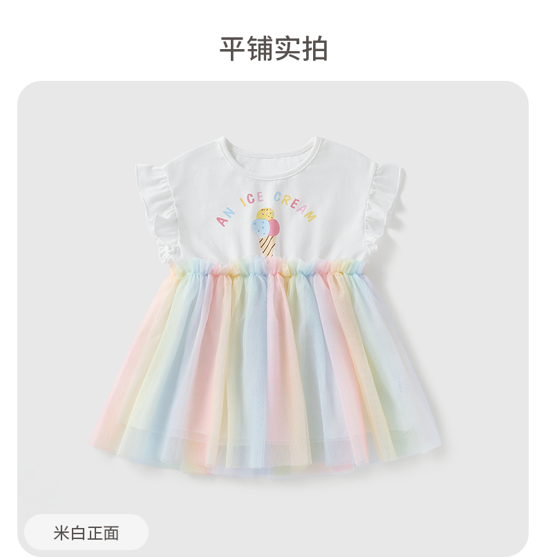 JELLYBABY公主裙女童2026新款连衣裙夏季新款宝宝甜美短袖网纱儿童夏日穿搭 米白 90