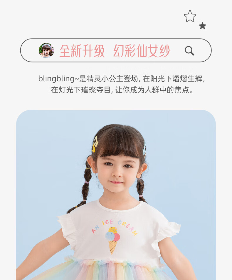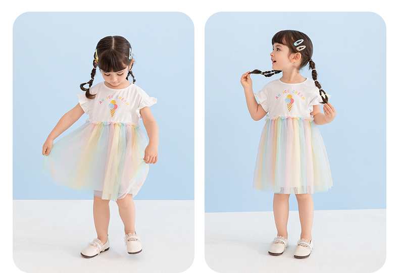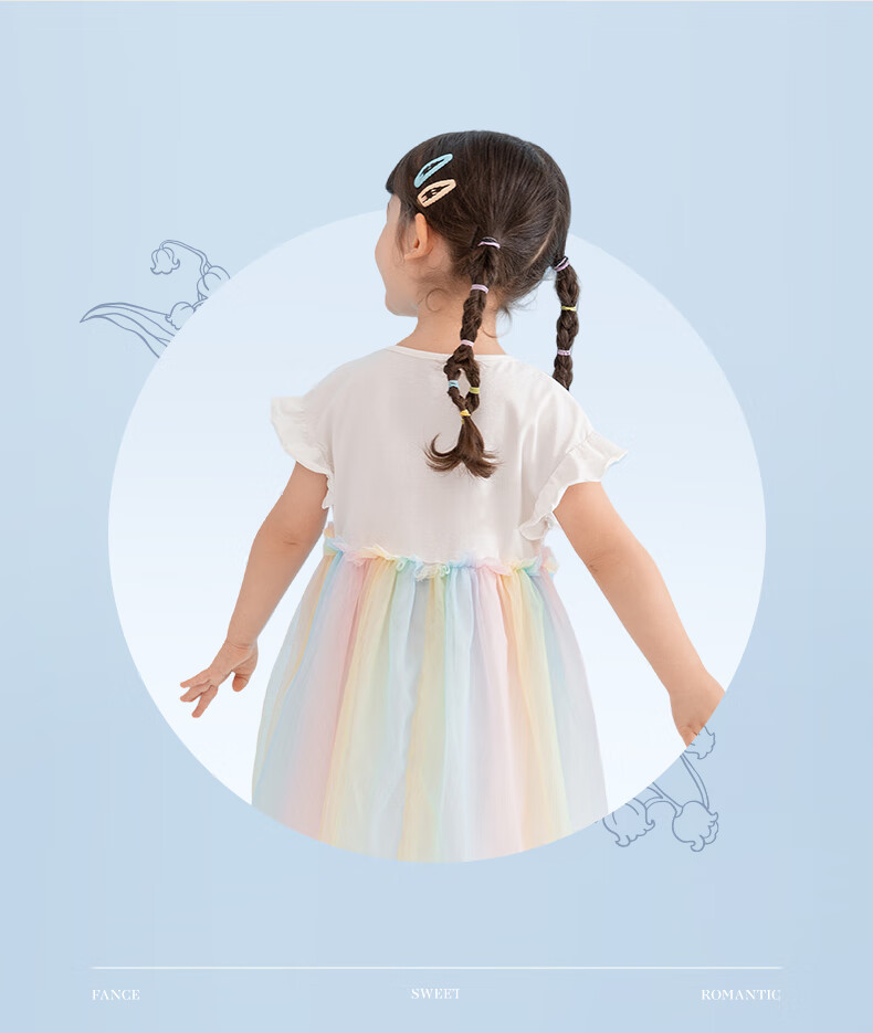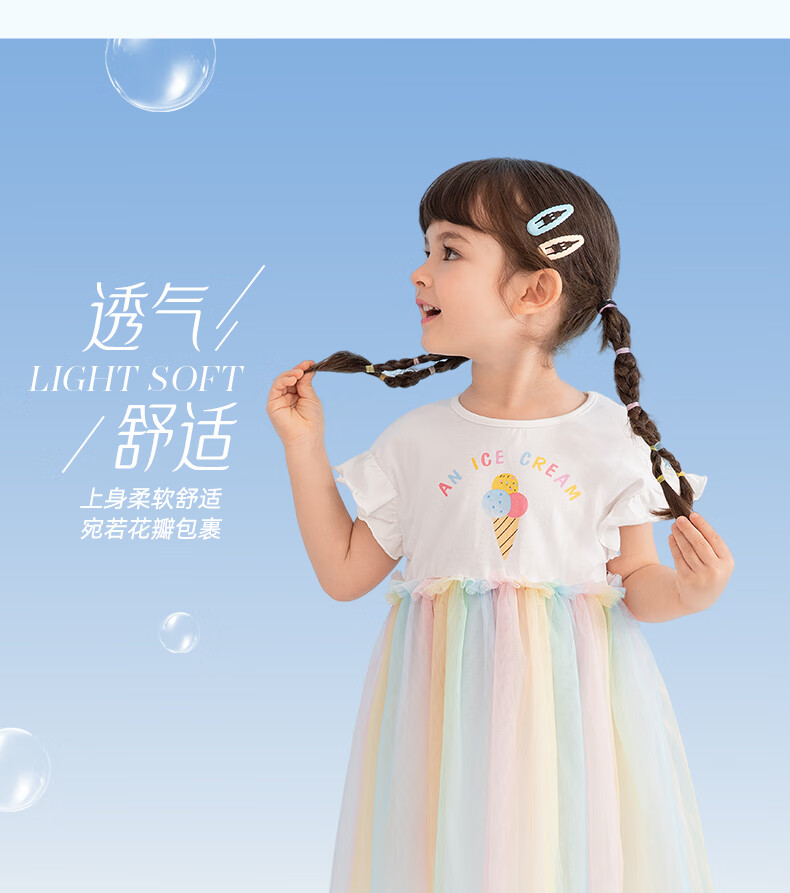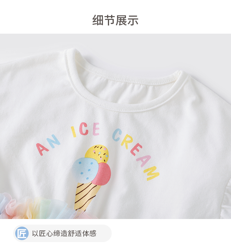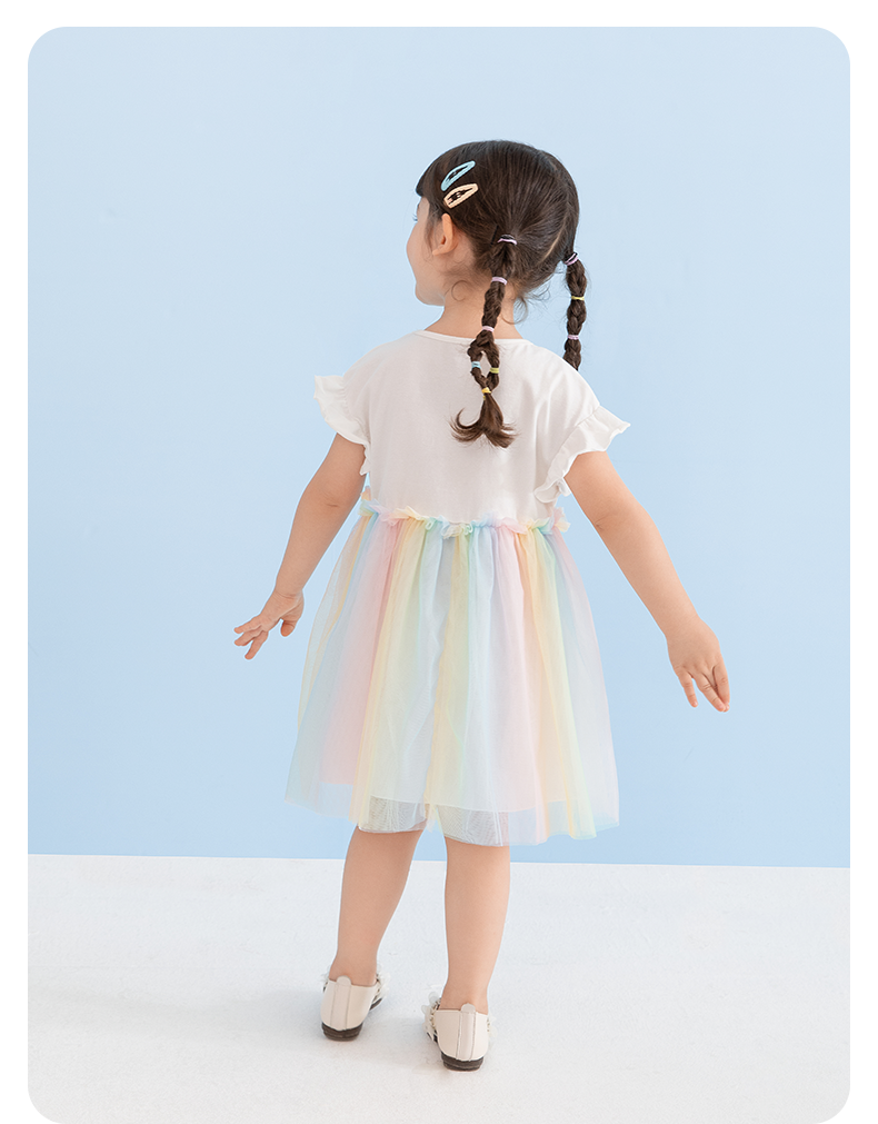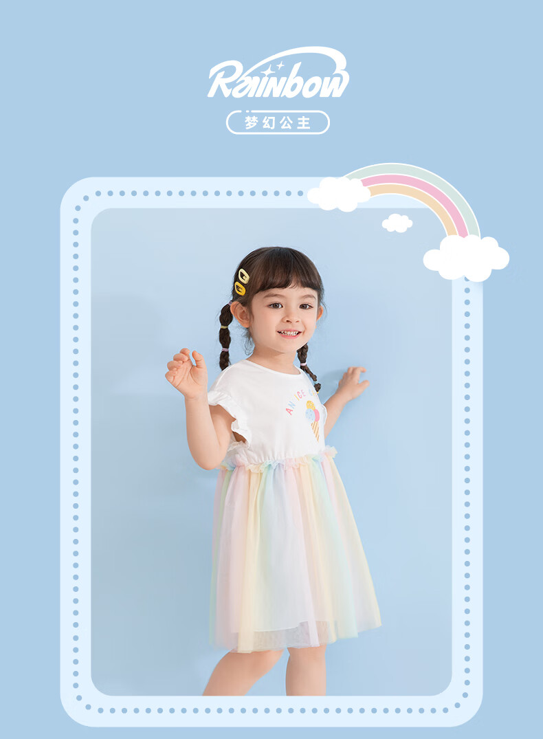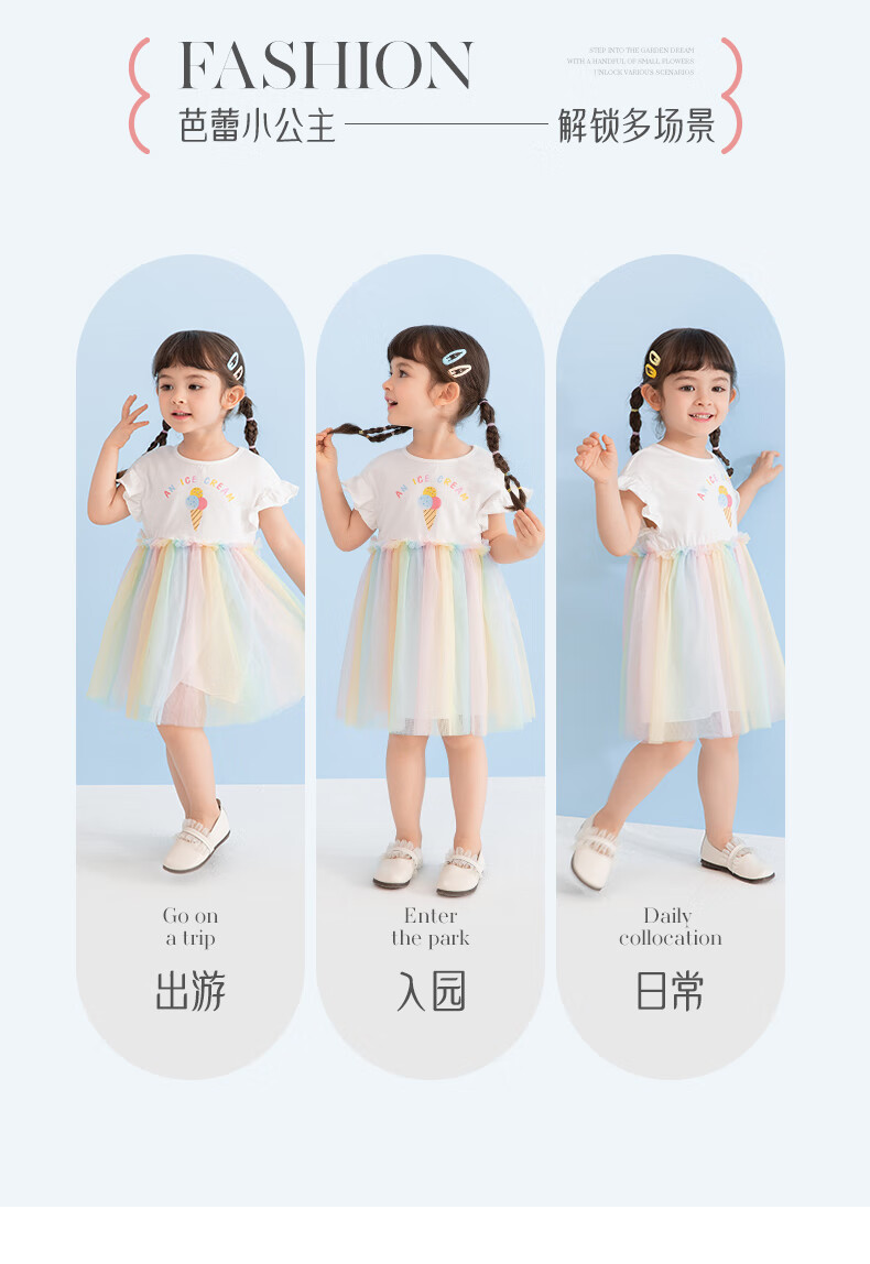 JELLYBABY公主裙女童2026新款连衣裙夏季新款宝宝甜美短袖网纱儿童夏日穿搭 米白 90