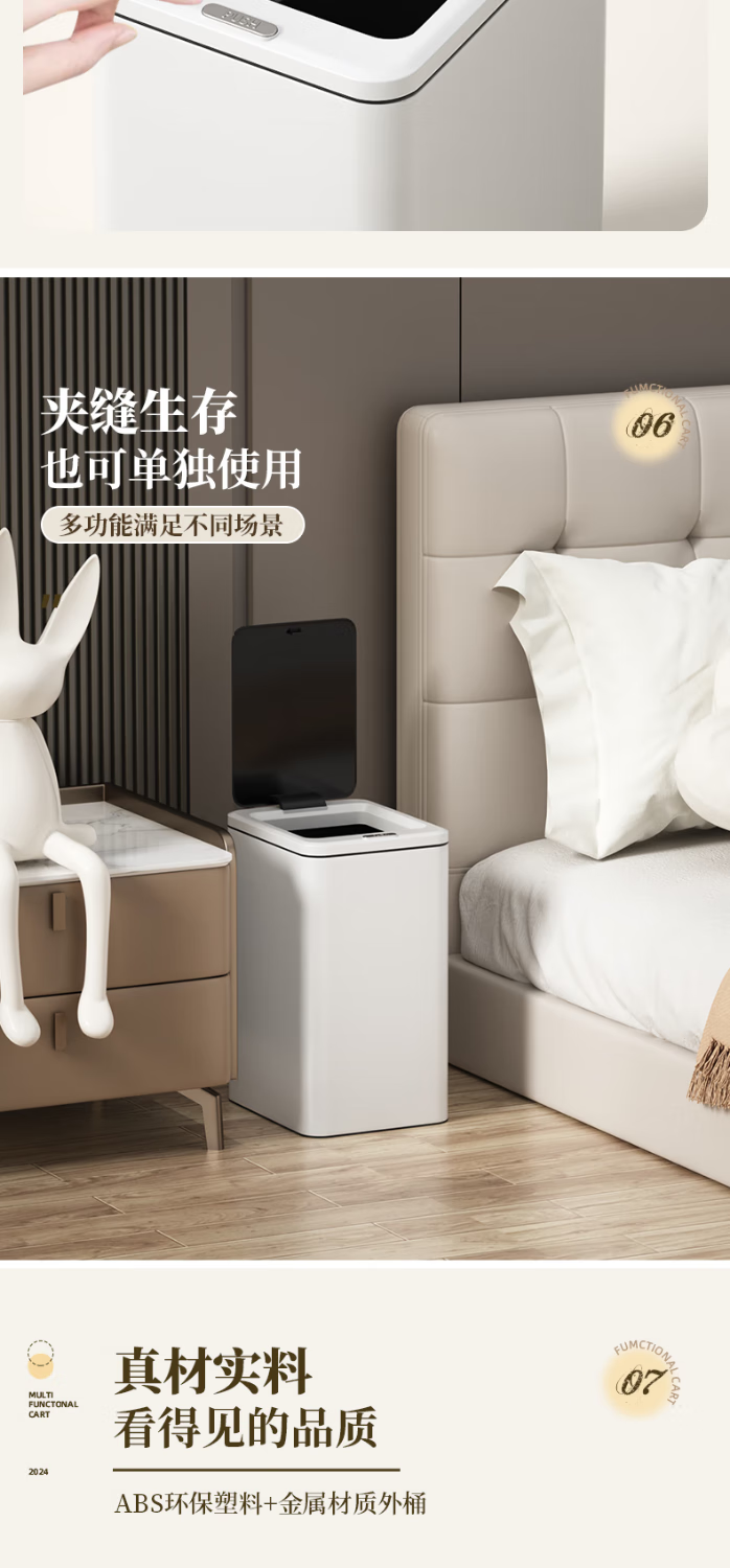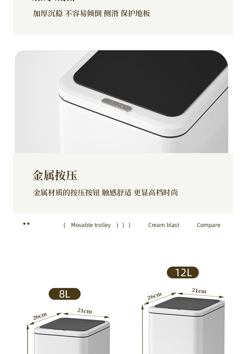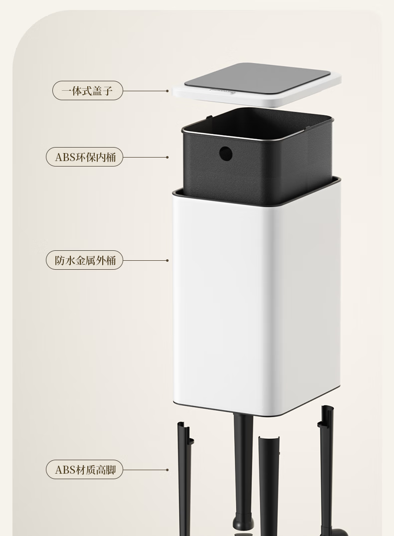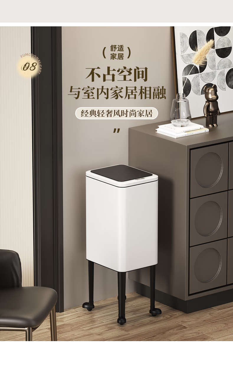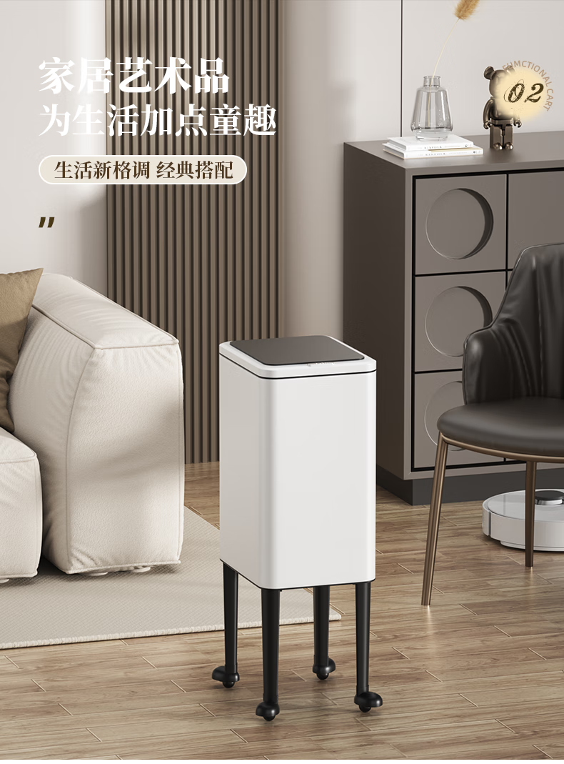帝梵厨房垃圾桶带滑轮轮子家用可移动卫生间卧室大容量厨房客厅带盖 15L砂钢银丨按压式【高脚带轮】