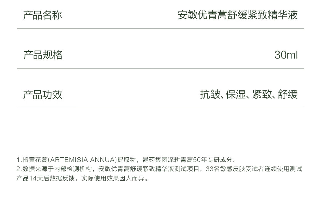 安敏优(ARMIYO)青蒿舒缓紧致精华液30ml保湿抗皱改善干纹细纹紧致舒缓敏肌适用 紧致精华液30ml