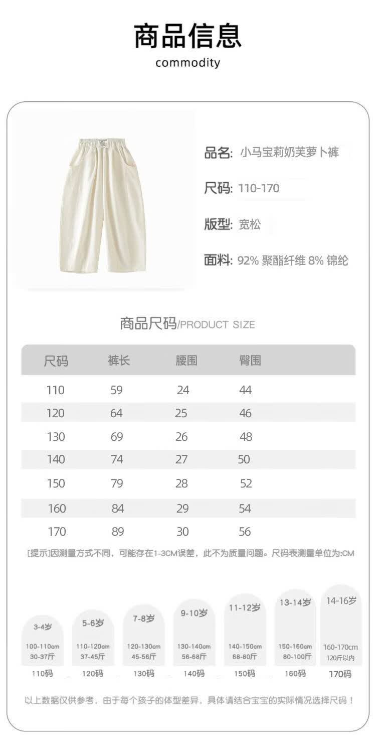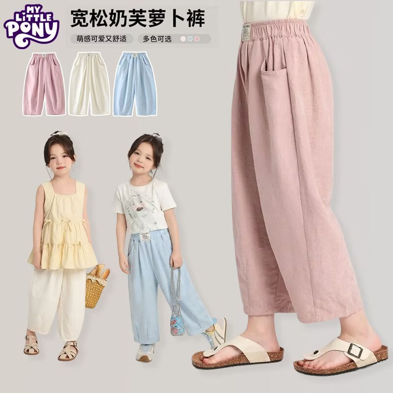 小马宝莉(MY LITTLE PONY)童装夏装女童洋气裤子2026新款百搭中大童宽松萝卜裤阔腿裤 粉色 150