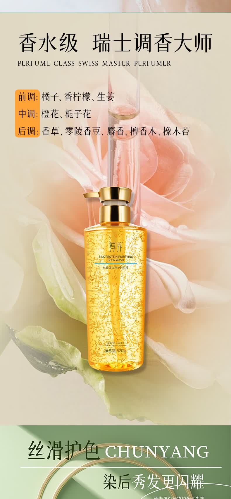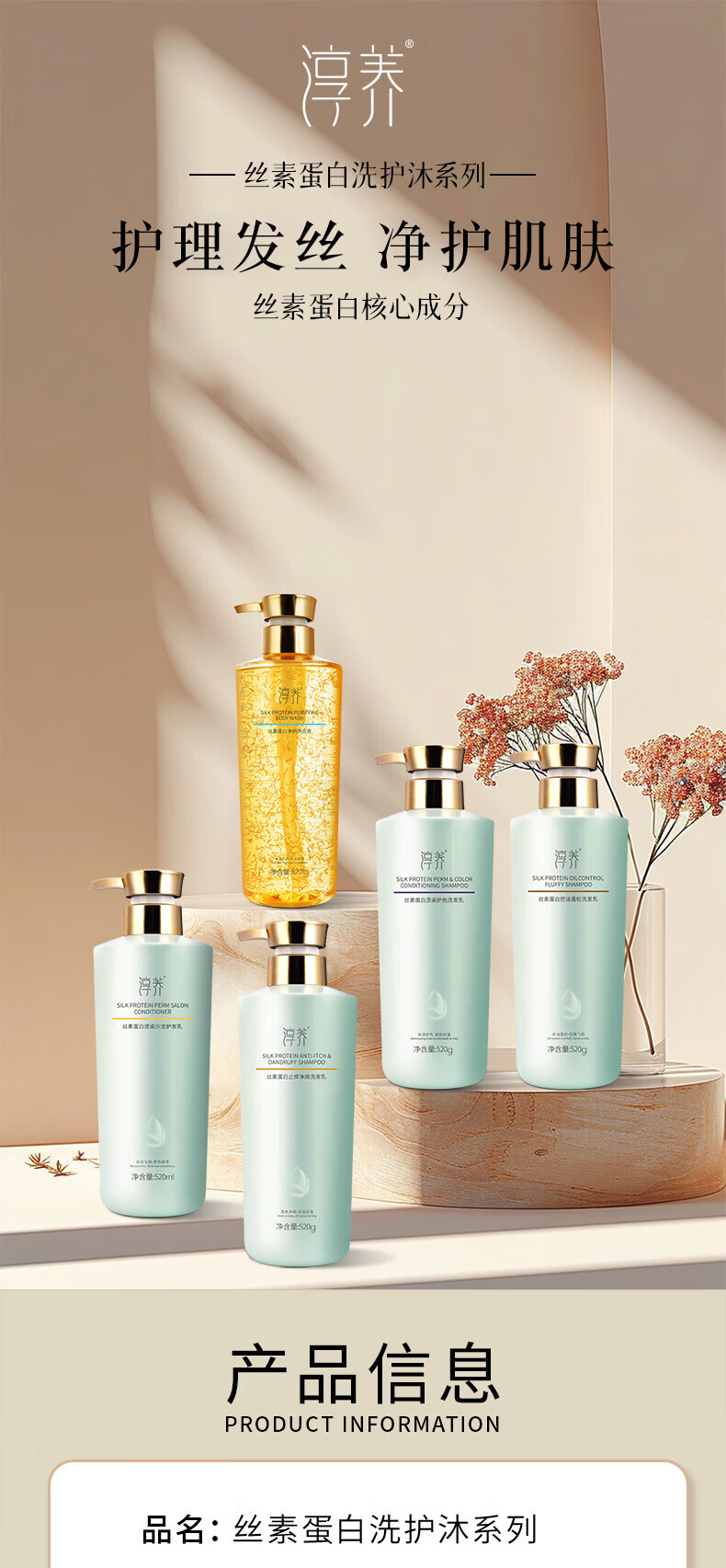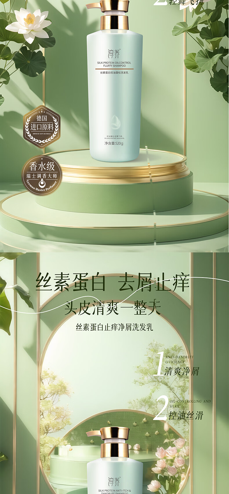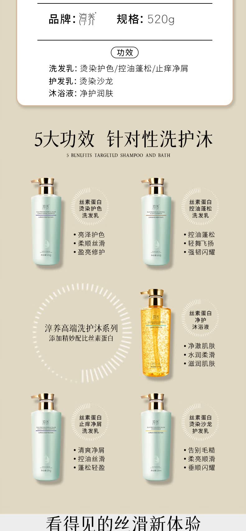 淳养丝素蛋白控油蓬松洗发水氨基酸去屑止痒洗头膏烫染护色芳香洗发露 净护沐浴液(控油保湿)520g