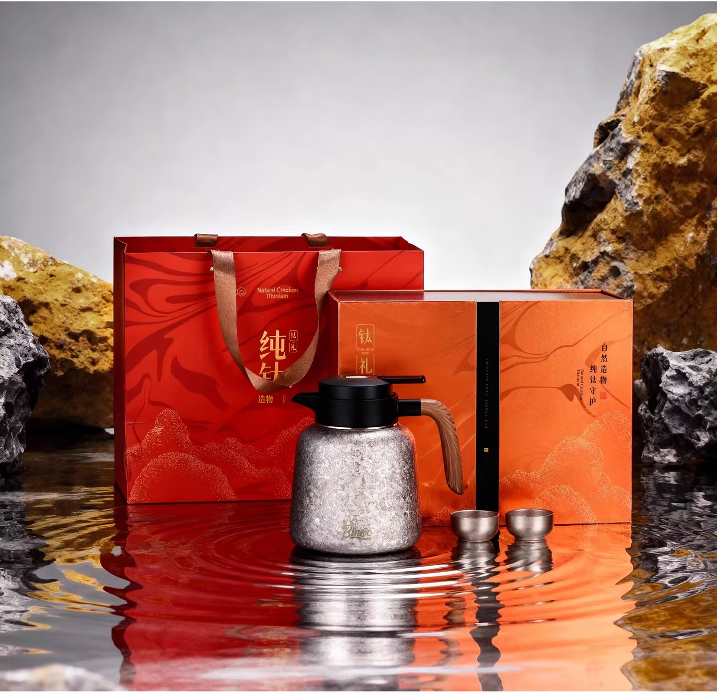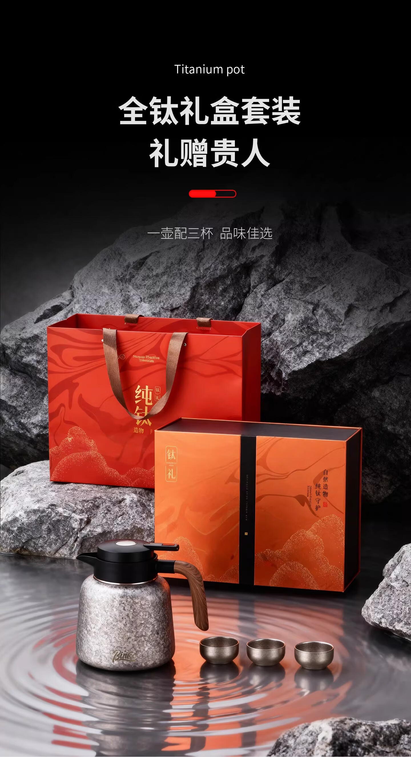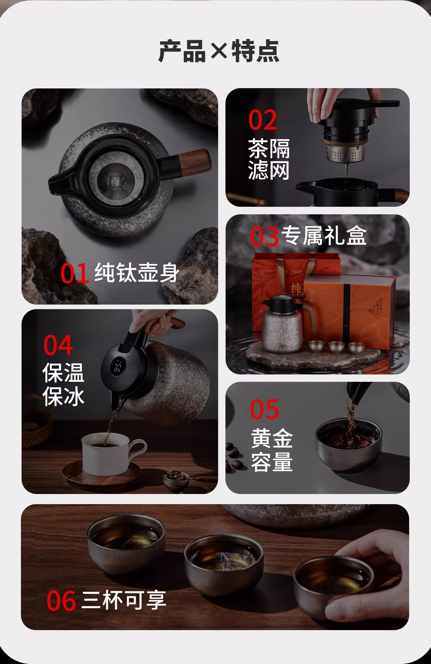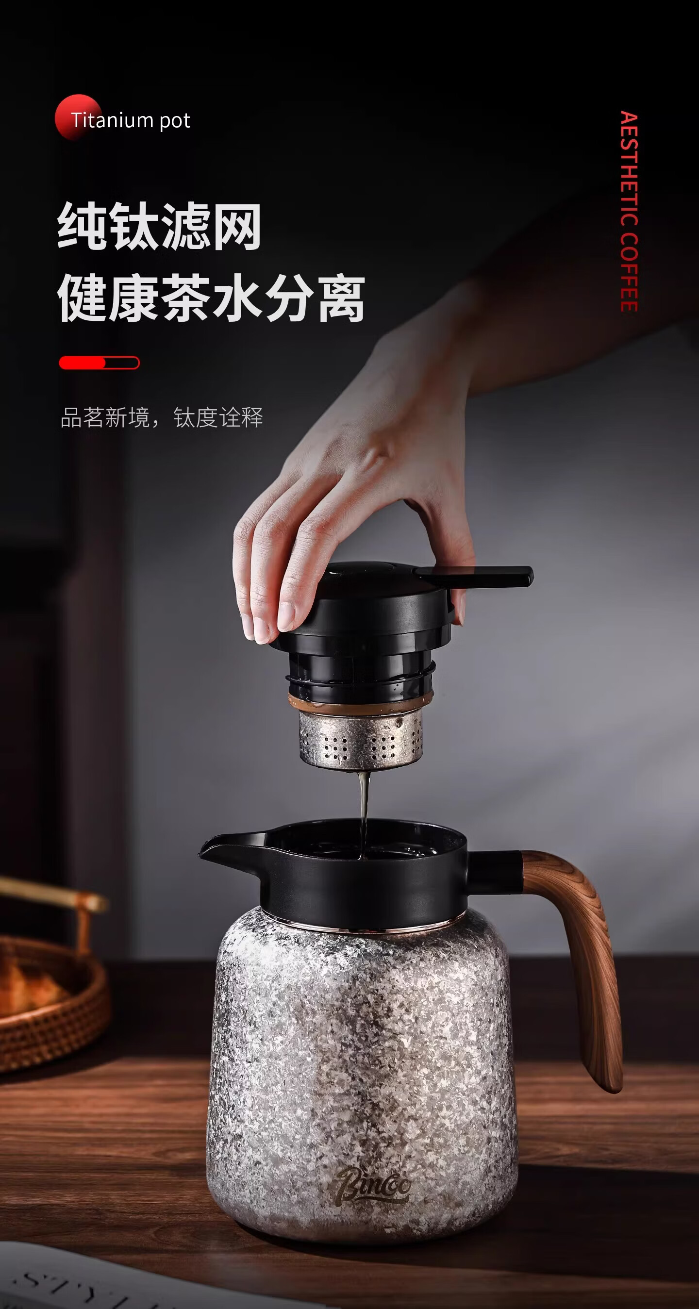 Bincoo纯钛保温壶大容量咖啡壶家用焖茶壶办公室闷泡壶显温热水瓶 冰花银1.2L【一壶三杯礼盒装】