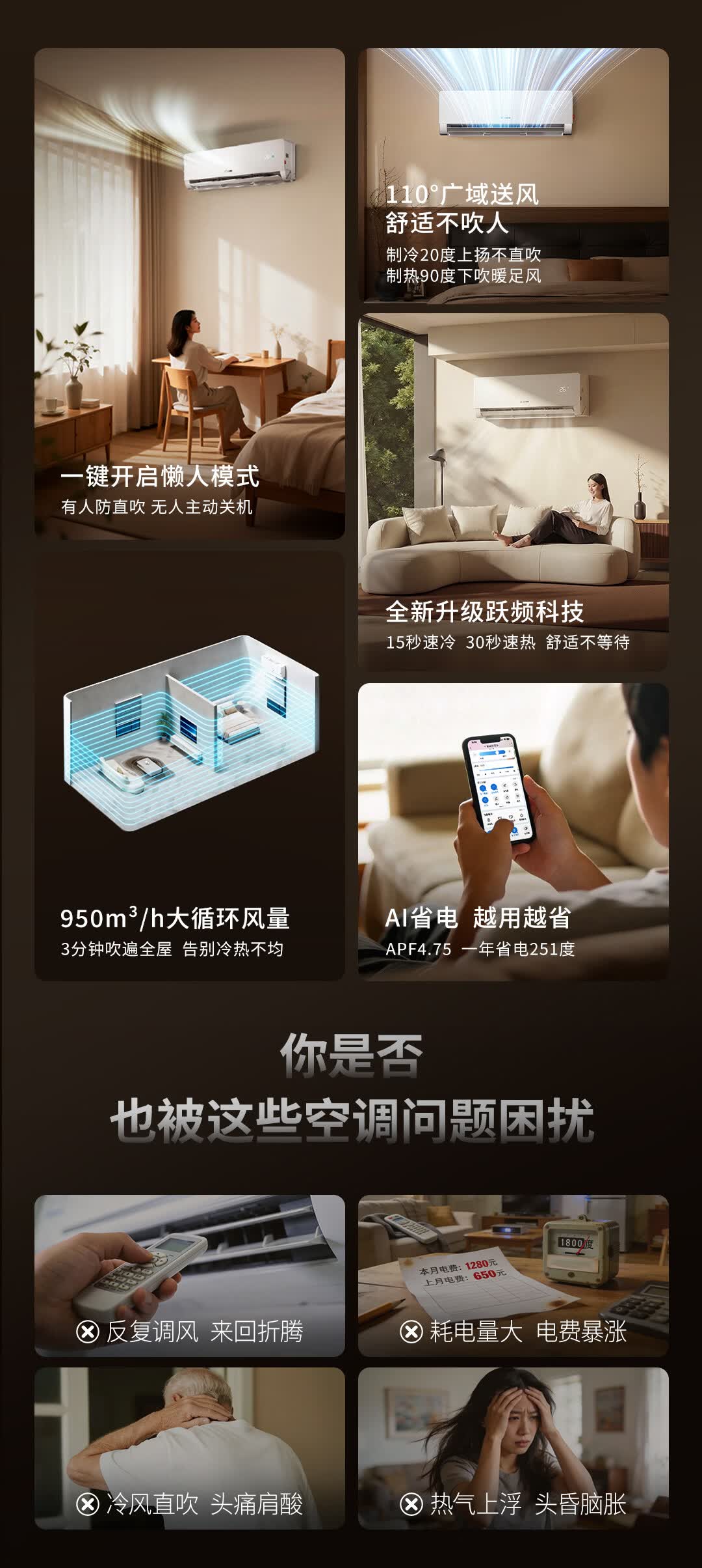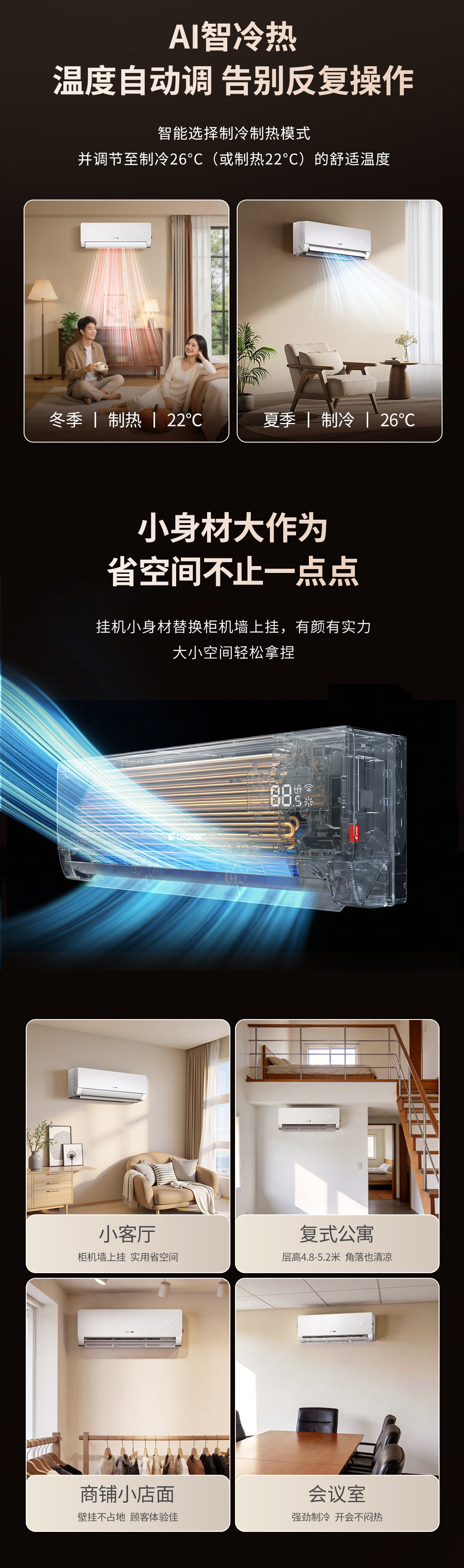 统帅空调 懒人神机人感防直吹 双排铜管2匹一级能效空调冷暖客厅挂机 以旧换新KFR-50GW/LX1-1