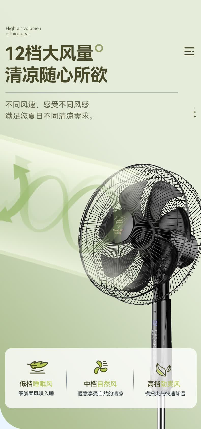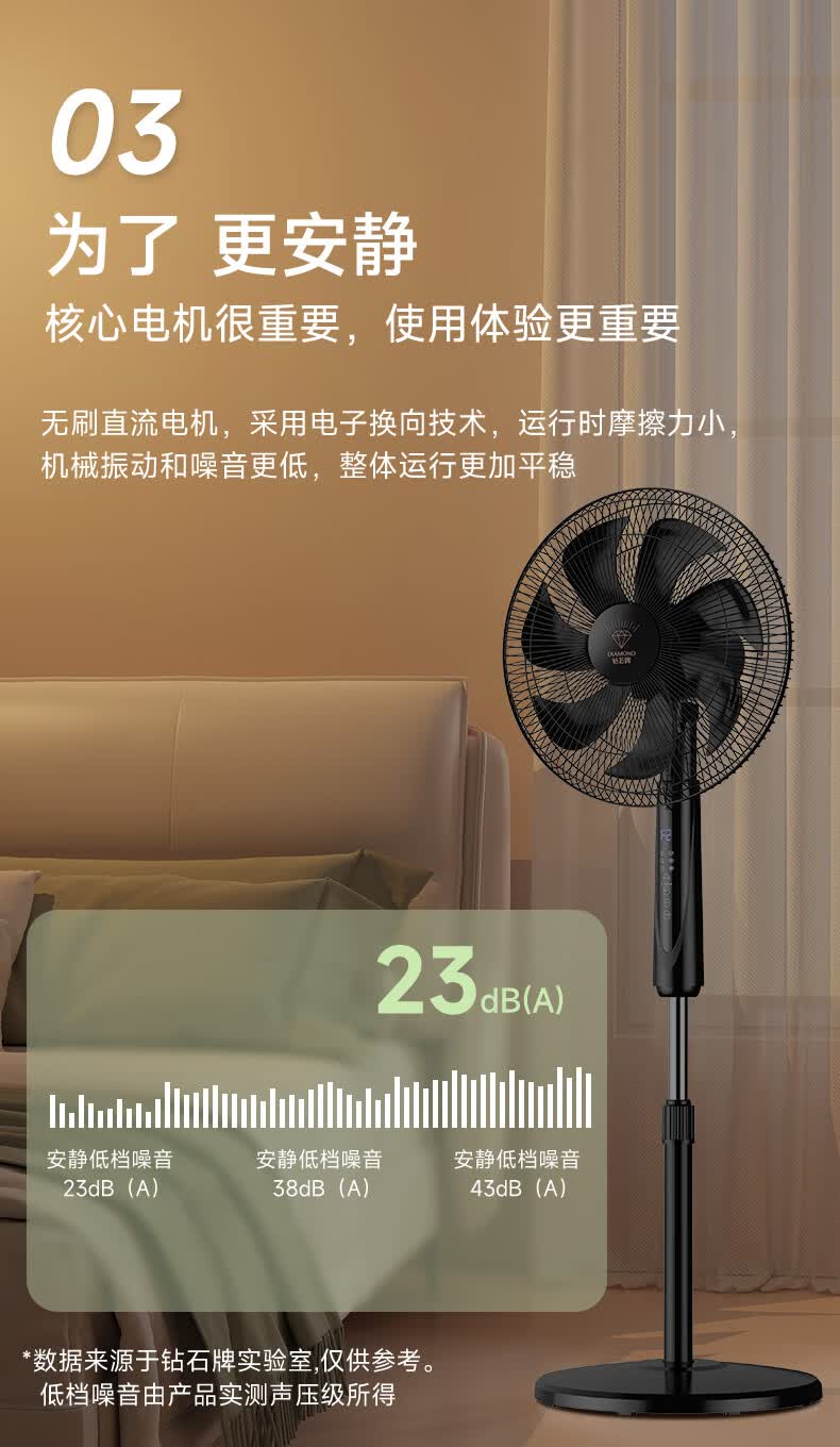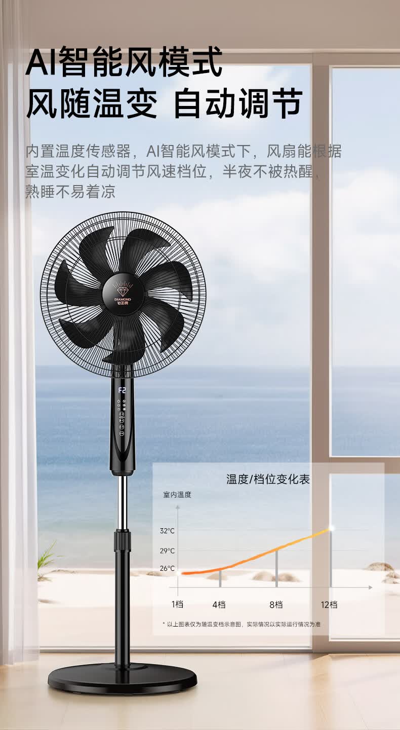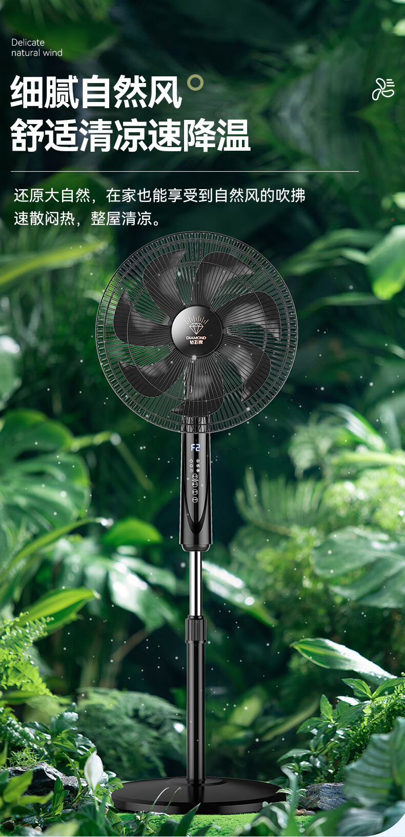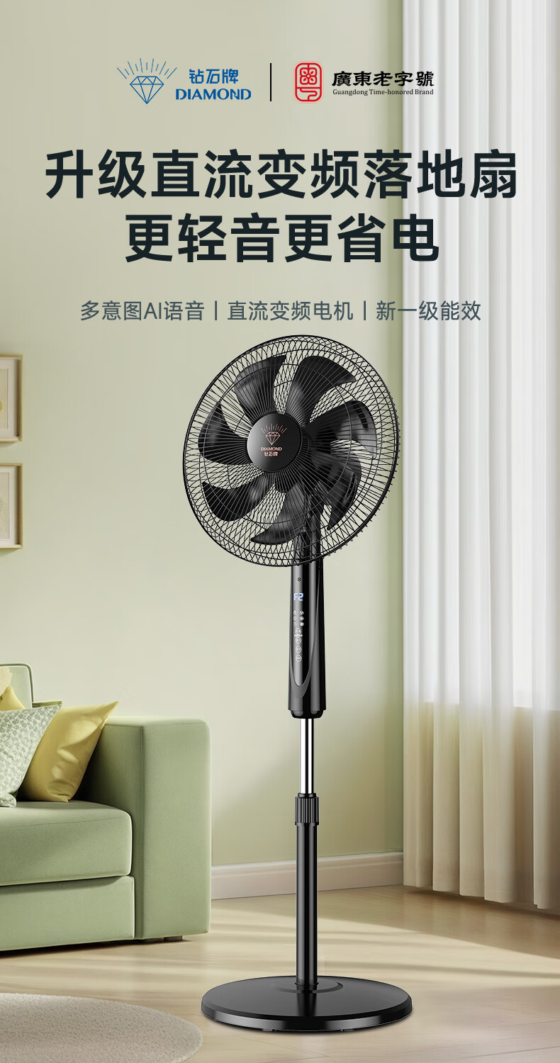 钻石牌落地扇【1级能效+直流变频+纯铜电机】家用电风扇机轻音摇头扇强劲风力智能语音遥控DFS-ZFR07