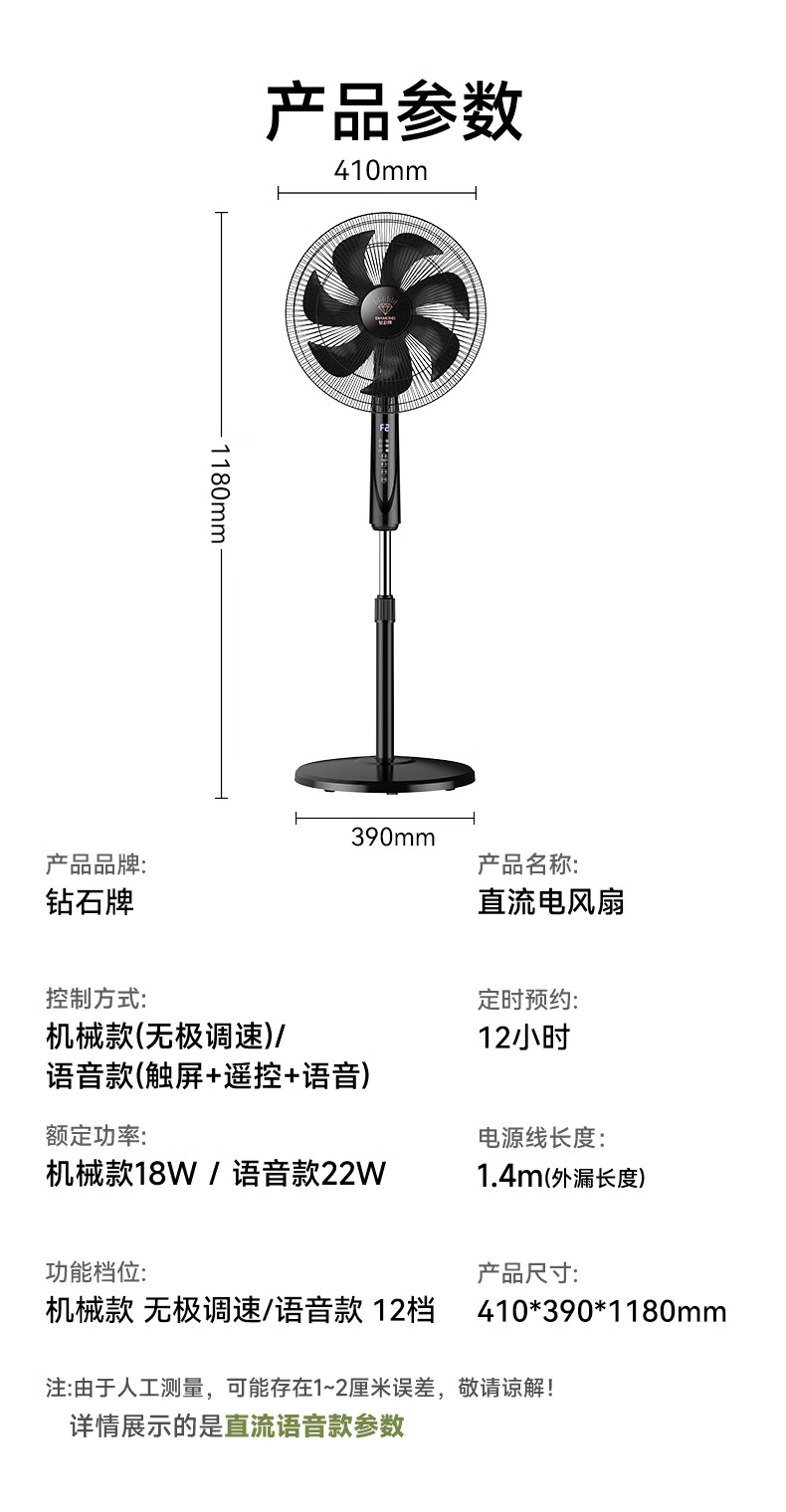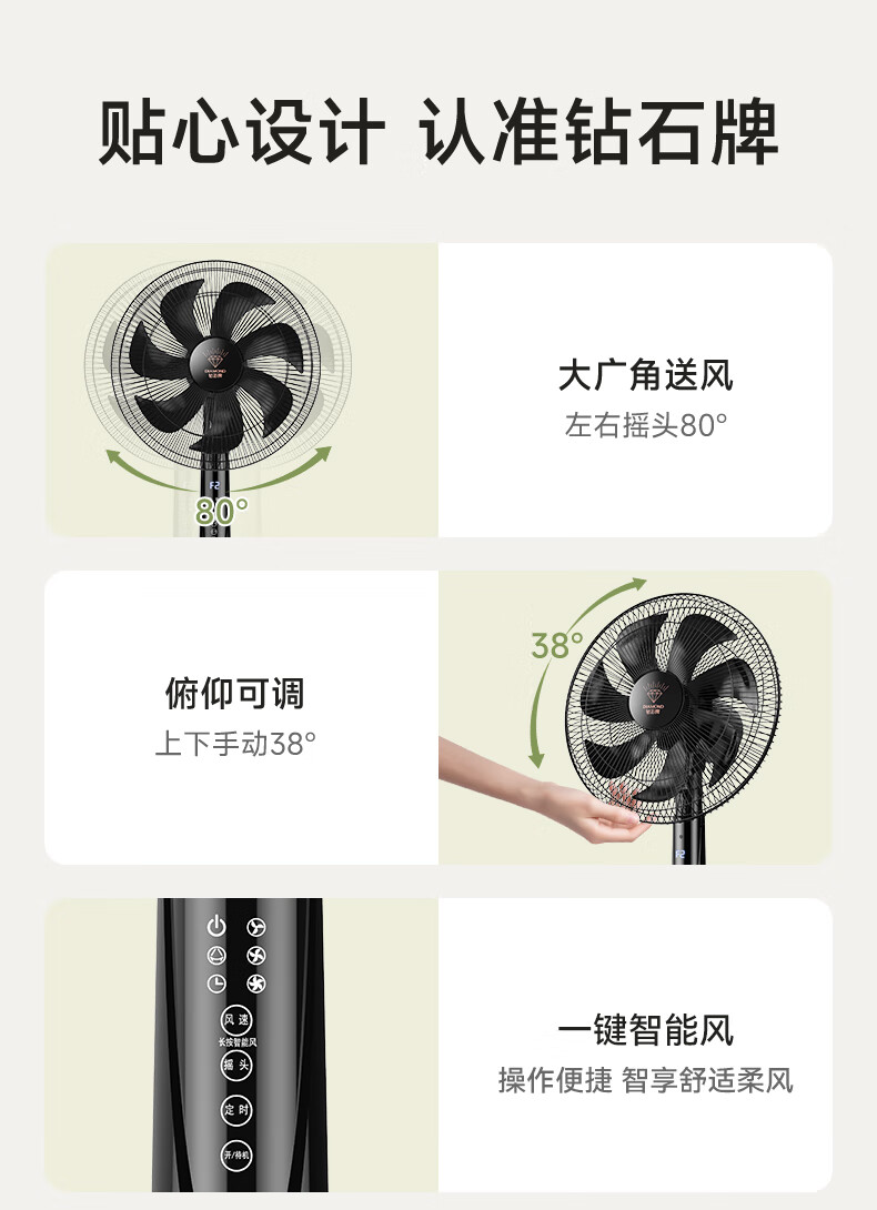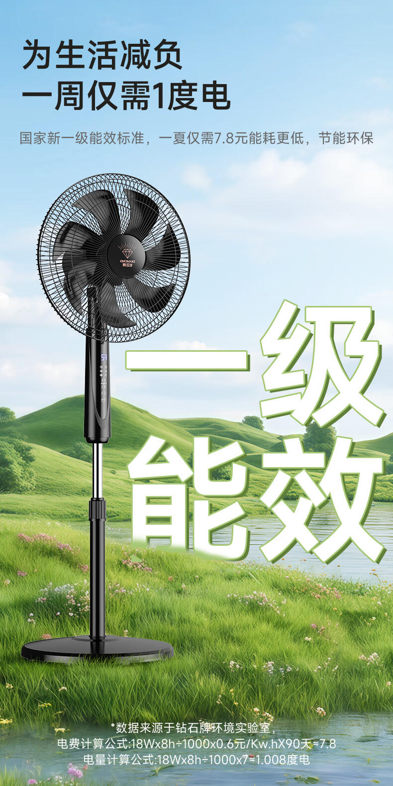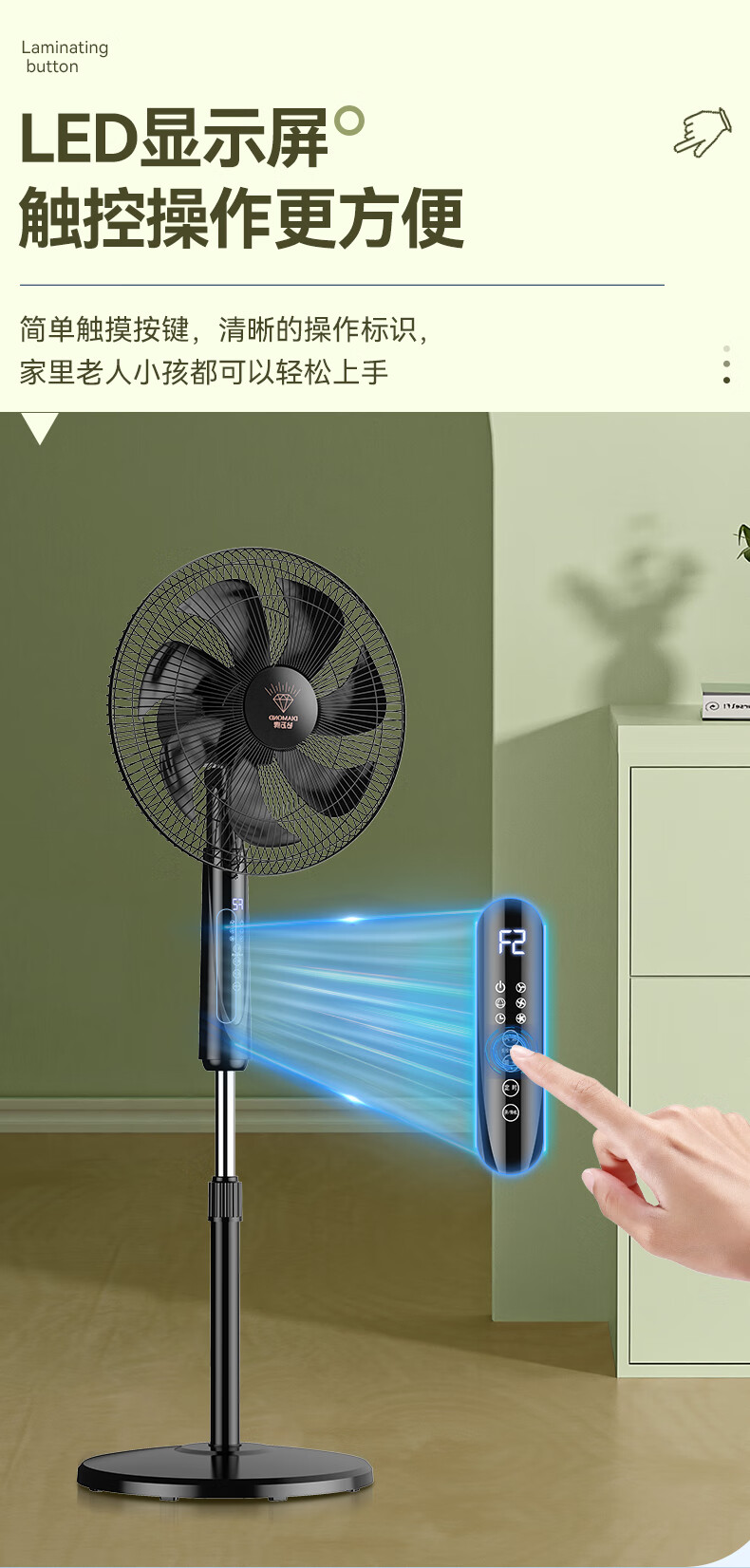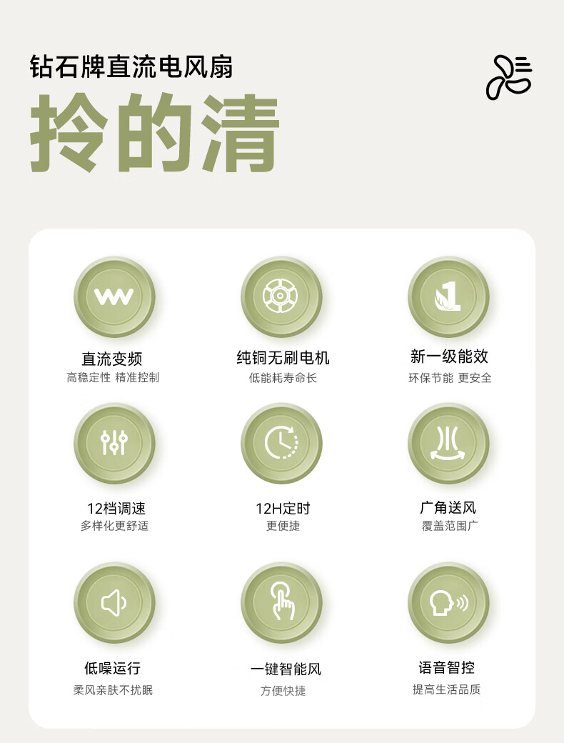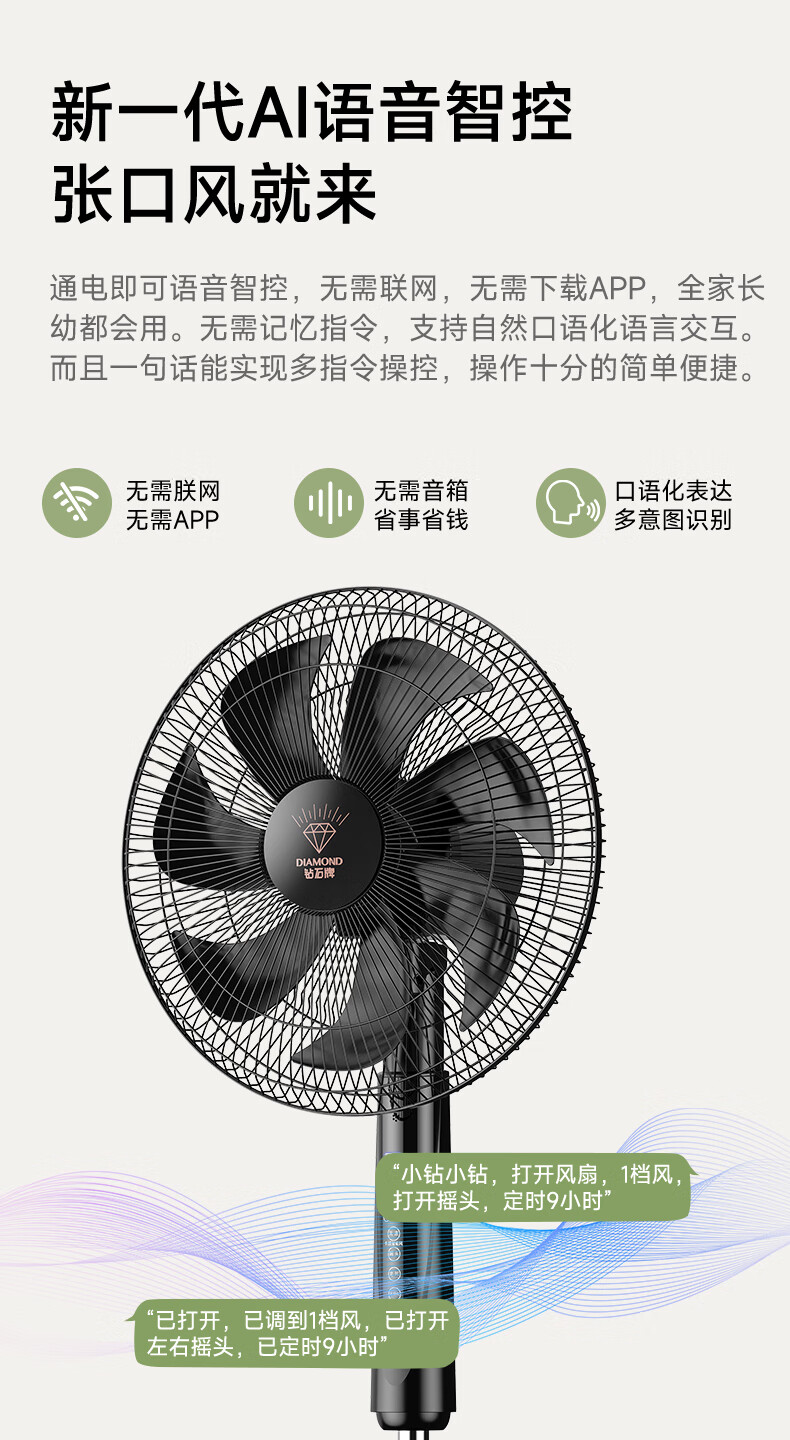 钻石牌落地扇【1级能效+直流变频+纯铜电机】家用电风扇机轻音摇头扇强劲风力智能语音遥控DFS-ZFR07