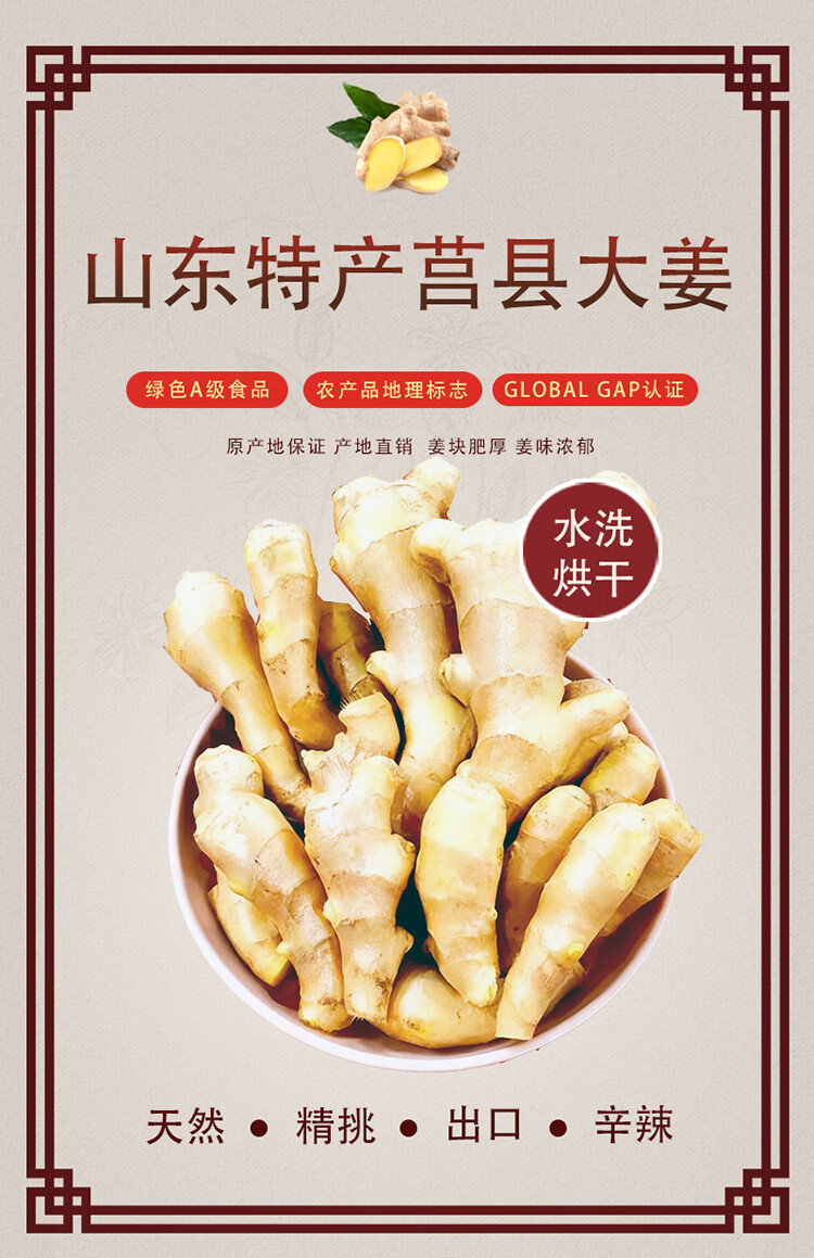 京鲜生 安心姜 山东生姜新鲜老姜 水洗 大姜净重3斤 源头直发