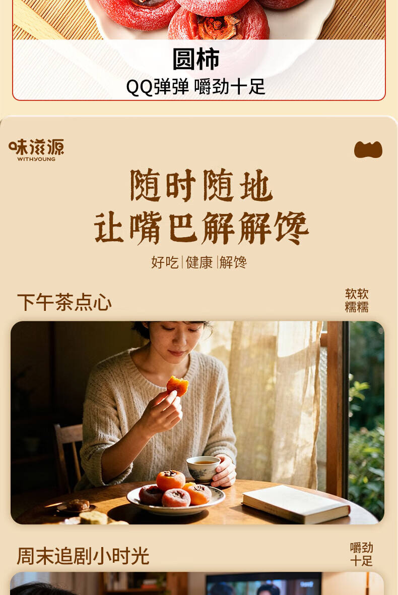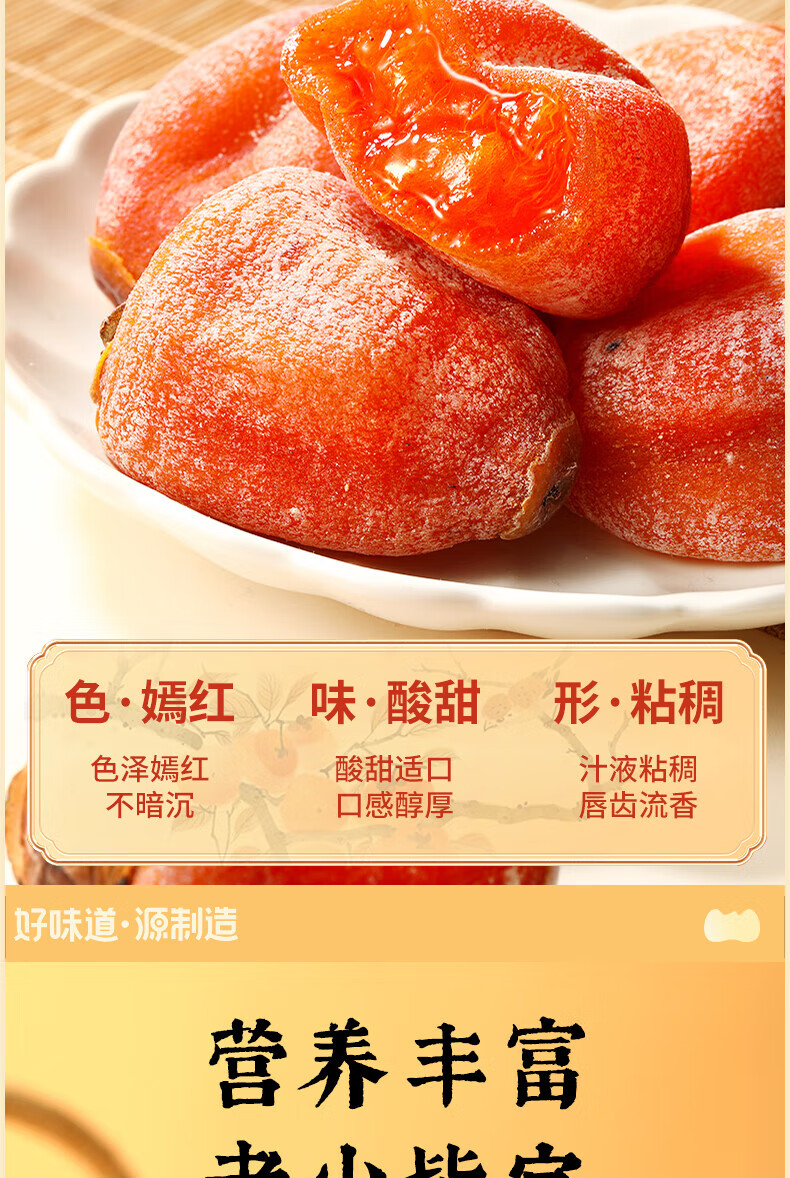 味滋源正宗圆柿饼传统流心柿饼吊柿独立包装农家柿子饼休闲零食点心 500g/袋*1