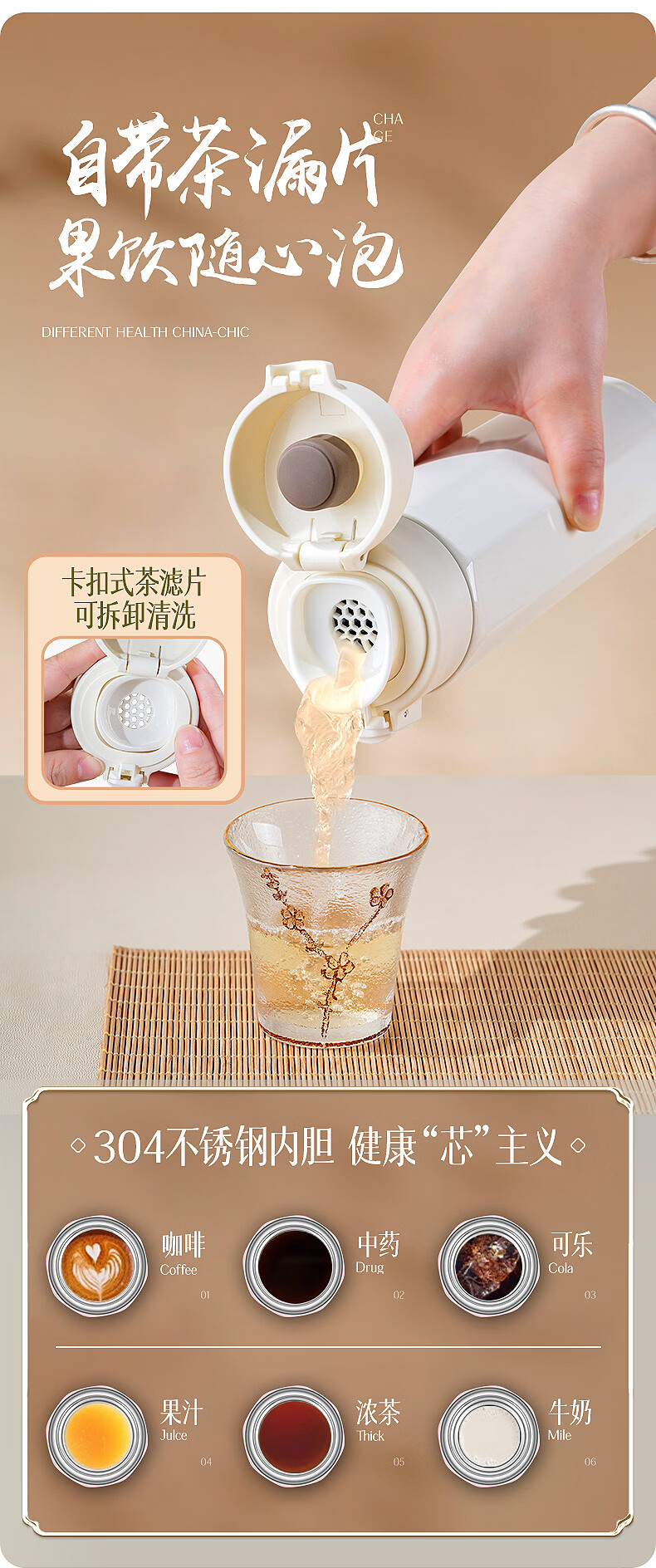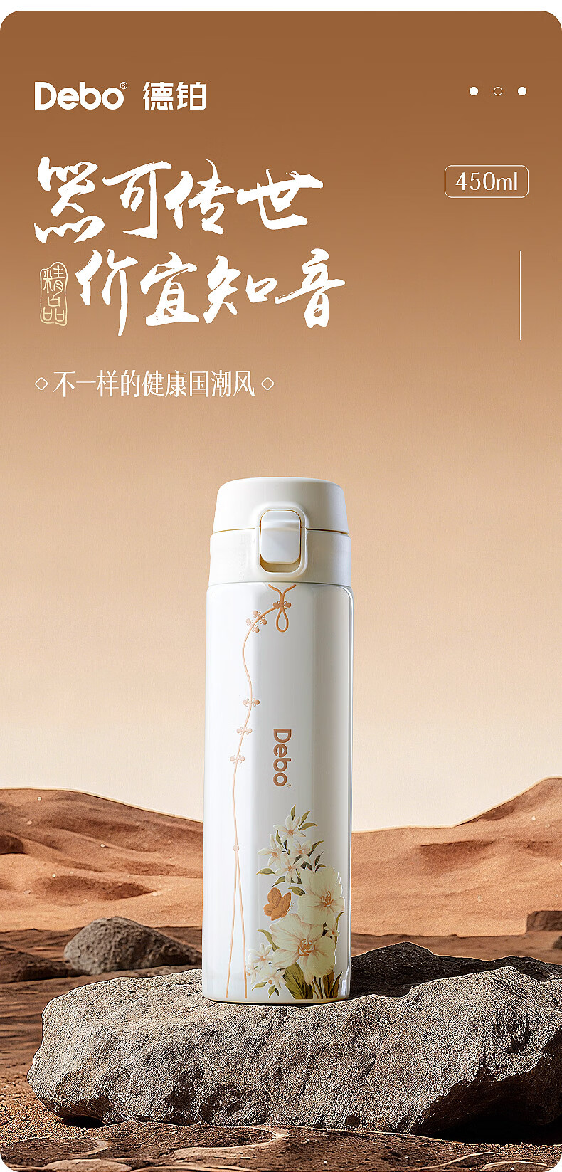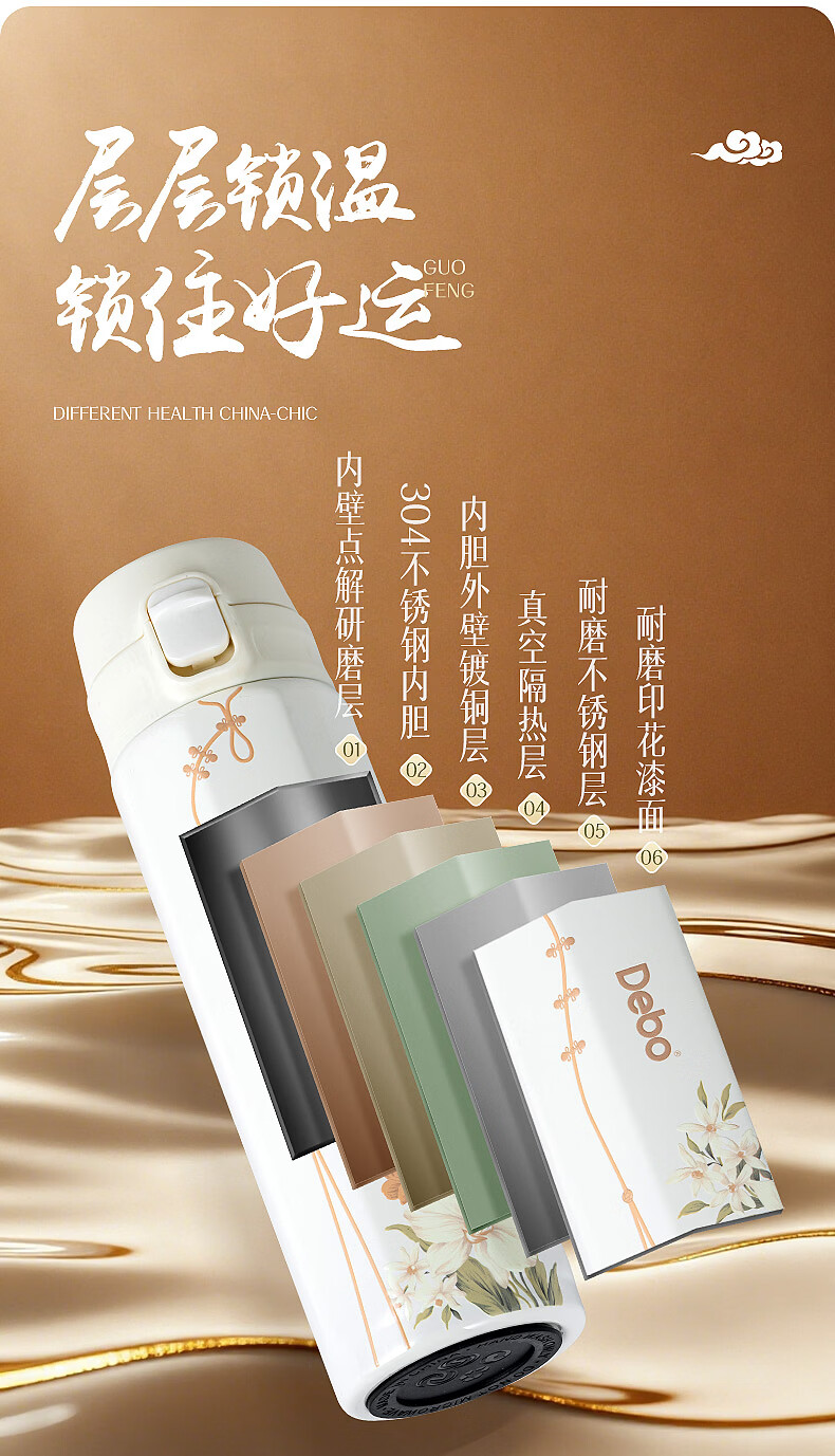 Debo德铂304不锈钢保温杯保温保冷国潮保温杯茶水分离耐磨 江山如画