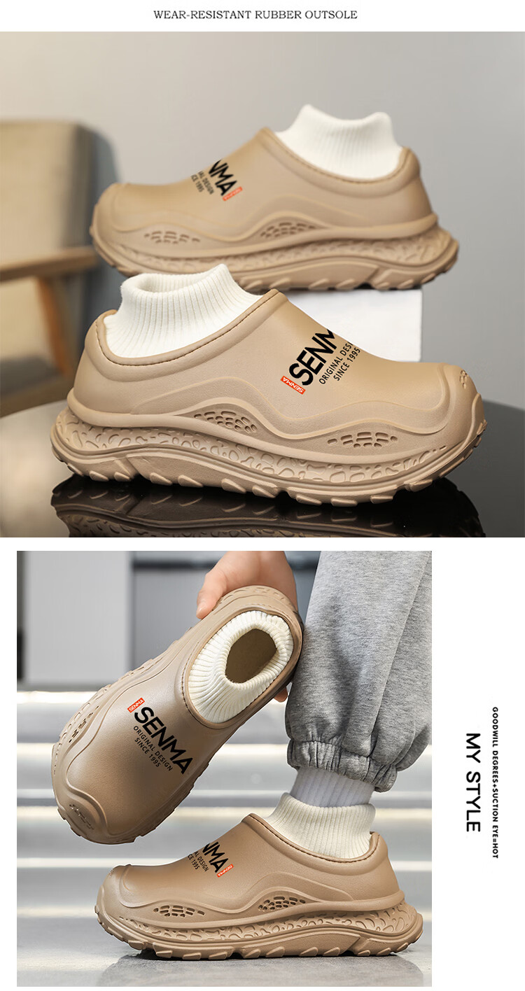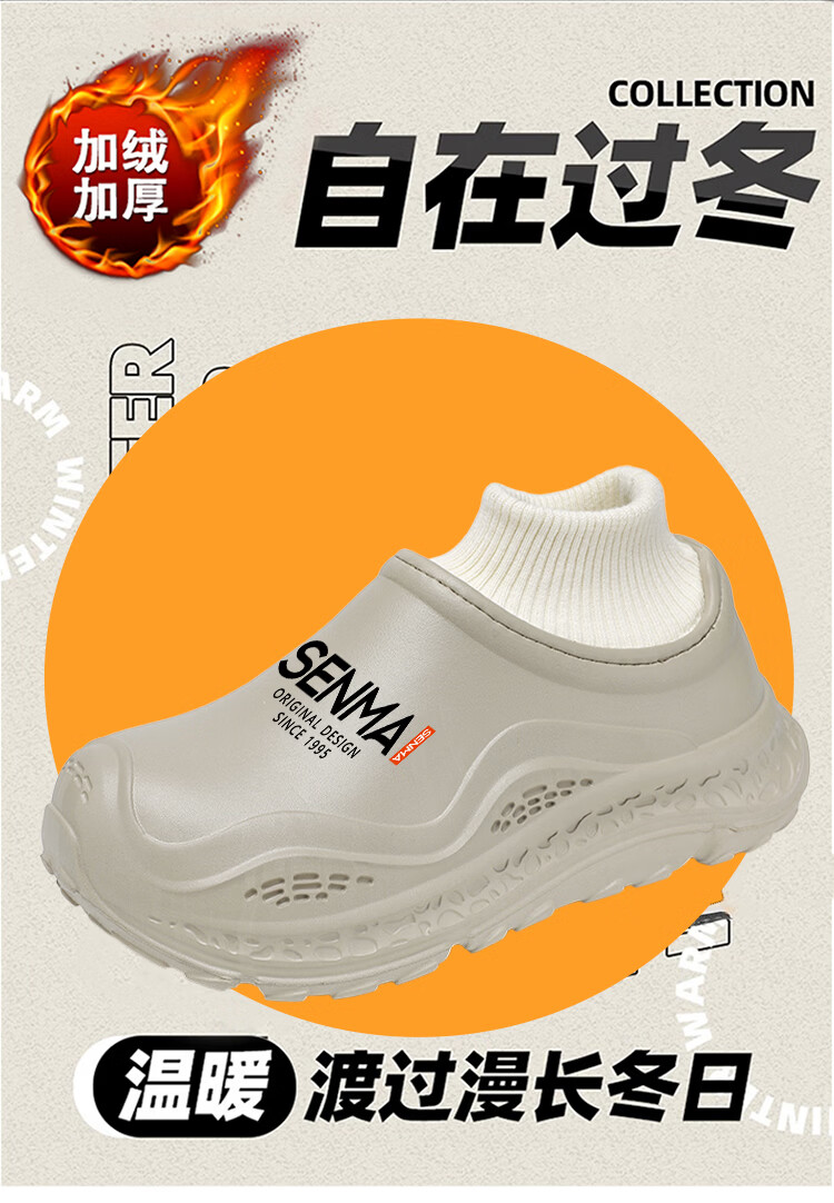 森馬厚底棉拖鞋男冬季2026新款包跟防水保暖加绒外穿防寒防滑情侣棉鞋 黑色【基础款】 35-36 【现货秒发】