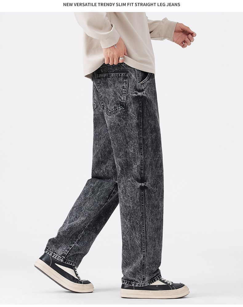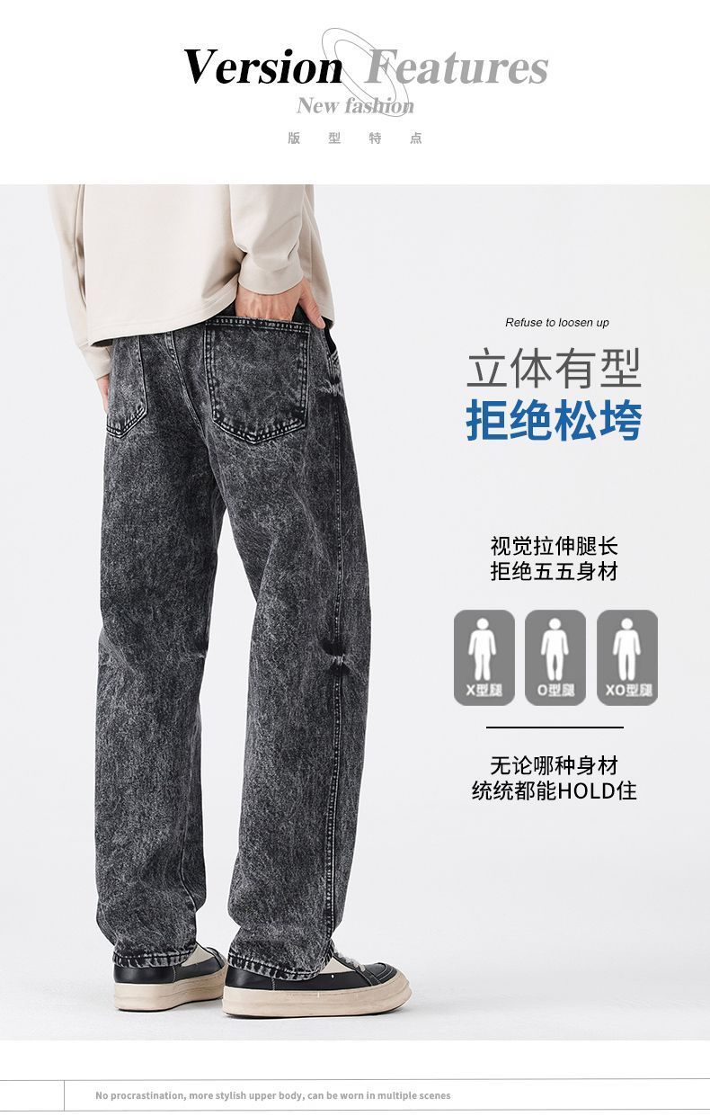 真维斯(Jeanswest)2026春季潮牌新款美式复古雪花牛仔裤男宽松百搭垂感直筒休闲长裤 雪花灰 28