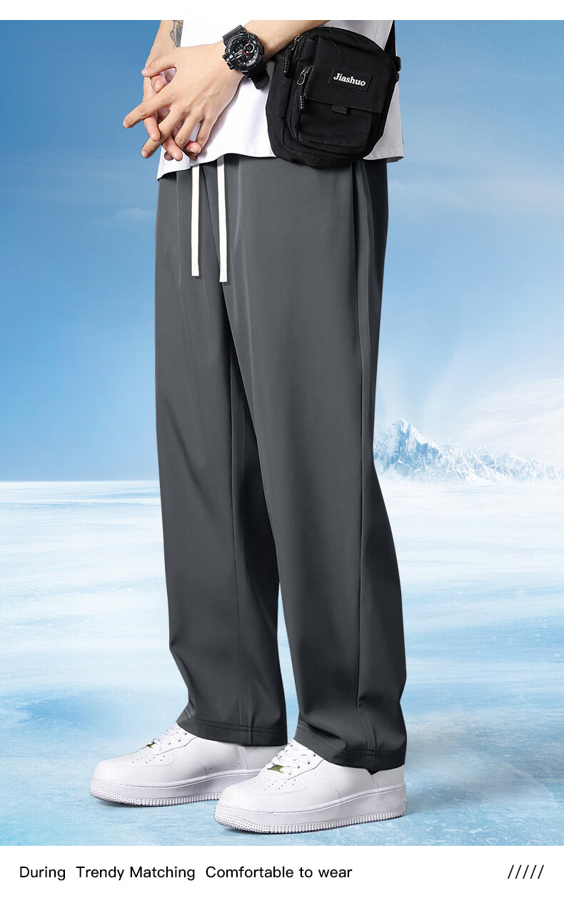 真维斯(Jeanswest)冰丝凉感速干裤子男款夏季2026新款防晒UPF50+直筒卫裤运动休闲裤 深灰 奔跑腊肠_K M