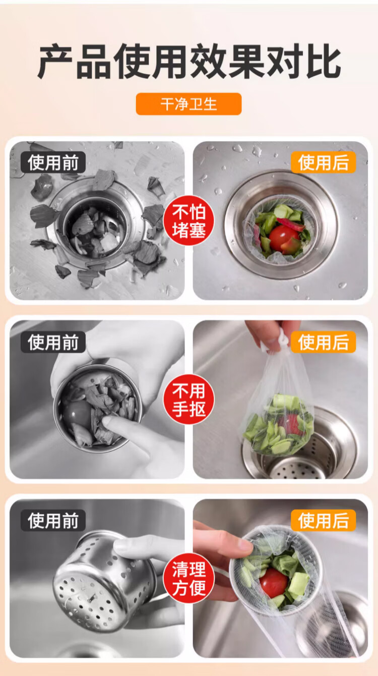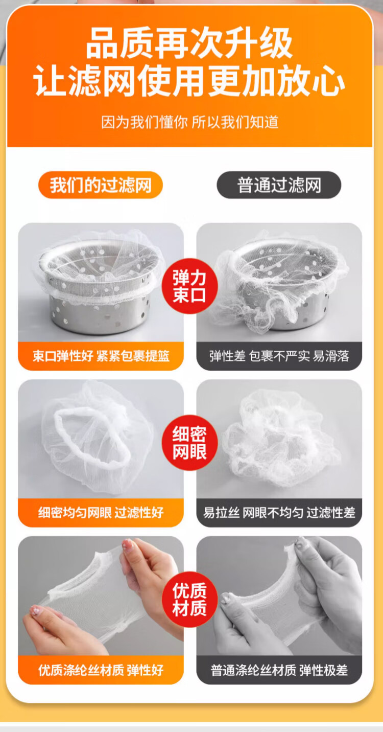 优奥 厨房水槽过滤网200只装下水道水池漏网兜垃圾漏网防堵塞袋网筛