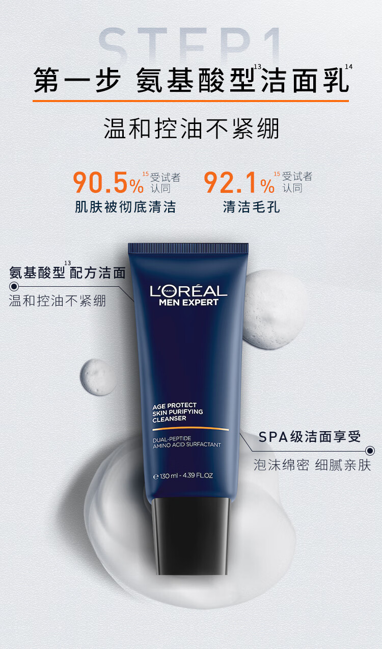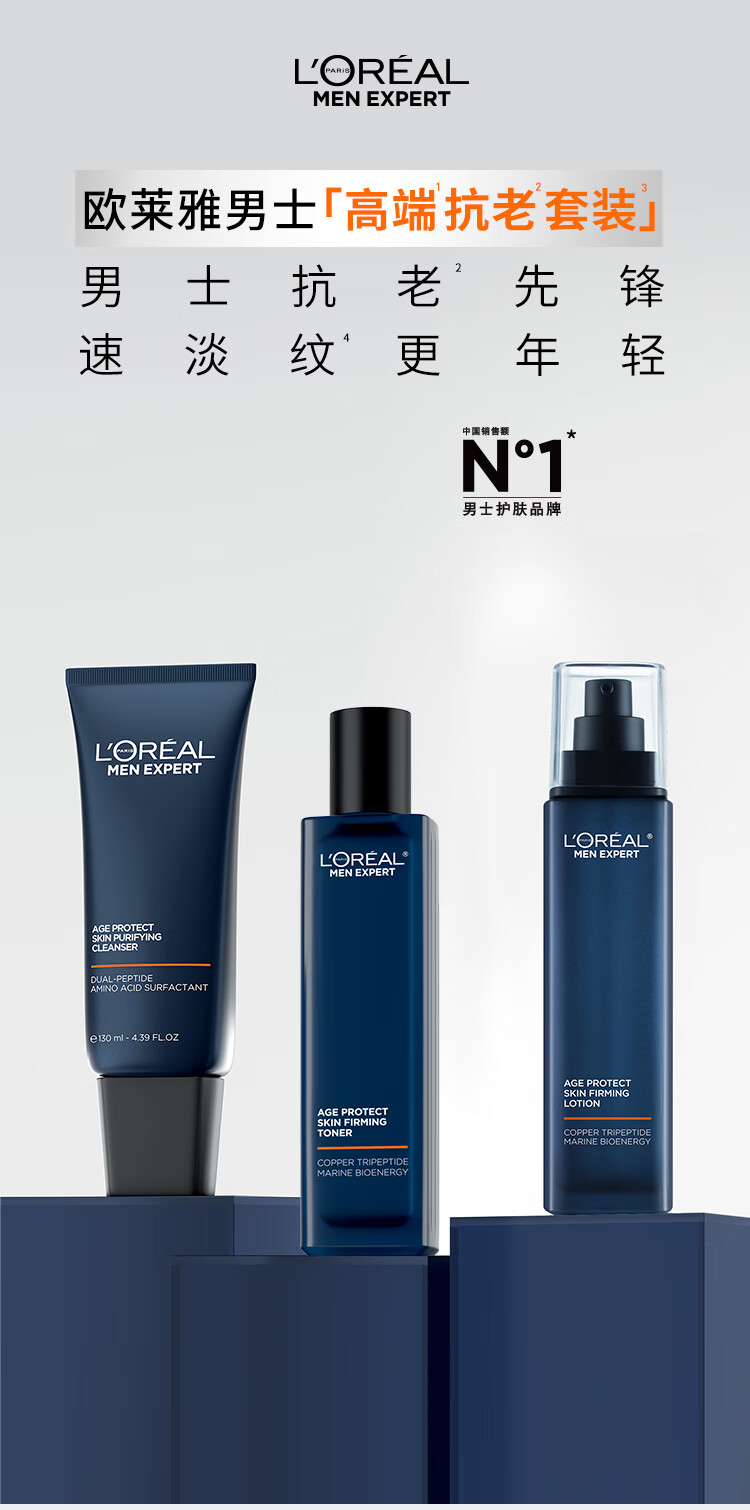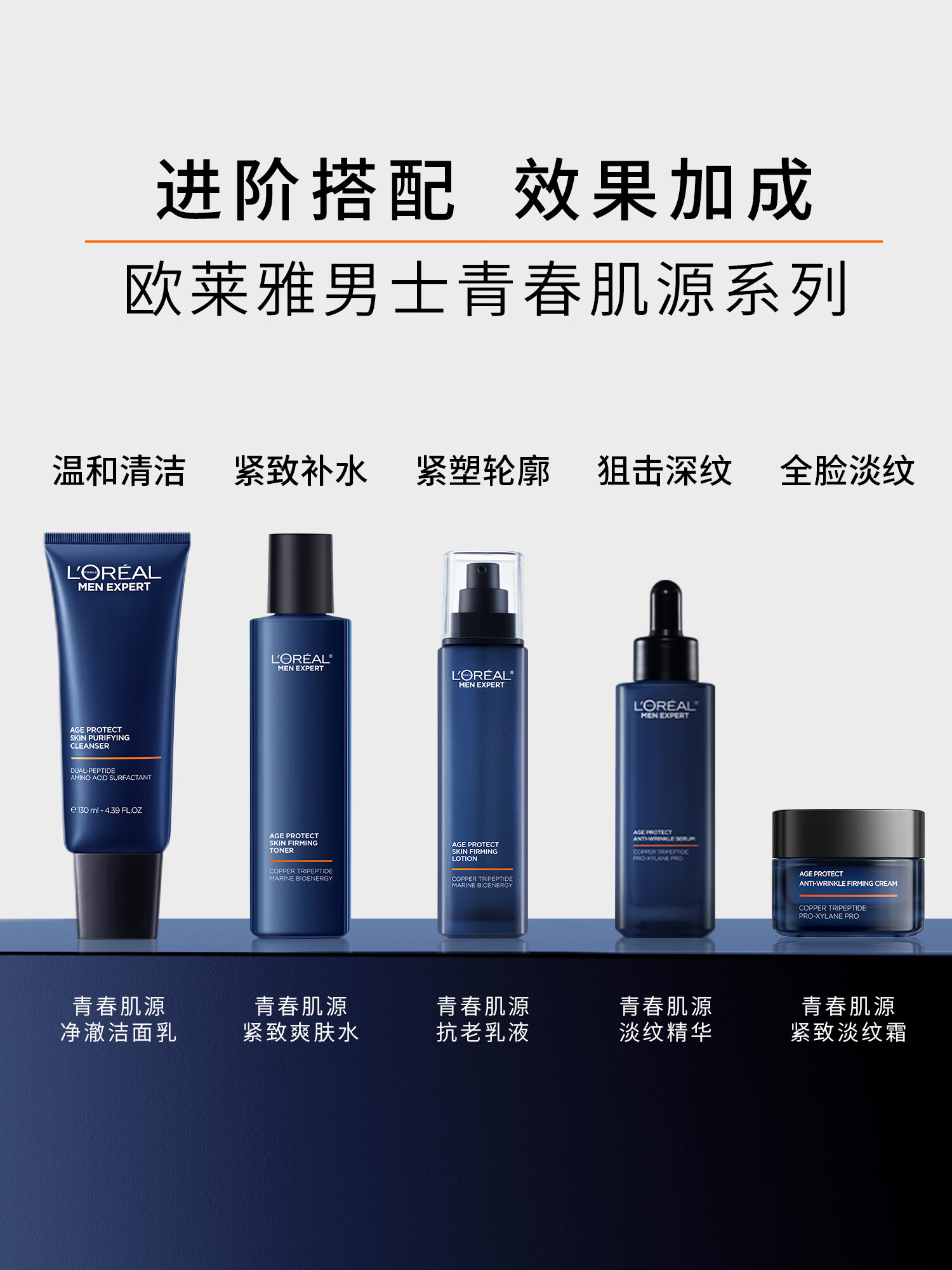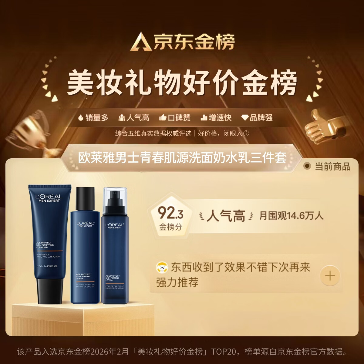 欧莱雅男士护肤品礼盒青春肌源洗面奶水乳三件套装抗皱紧致礼物