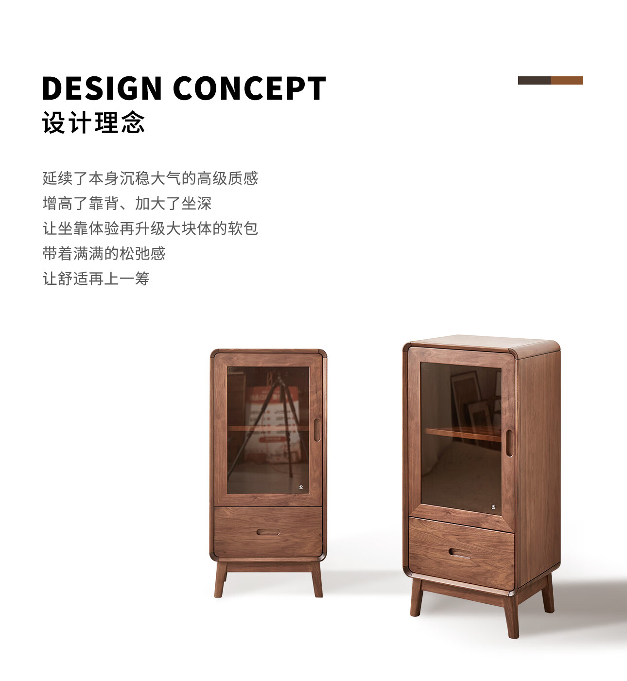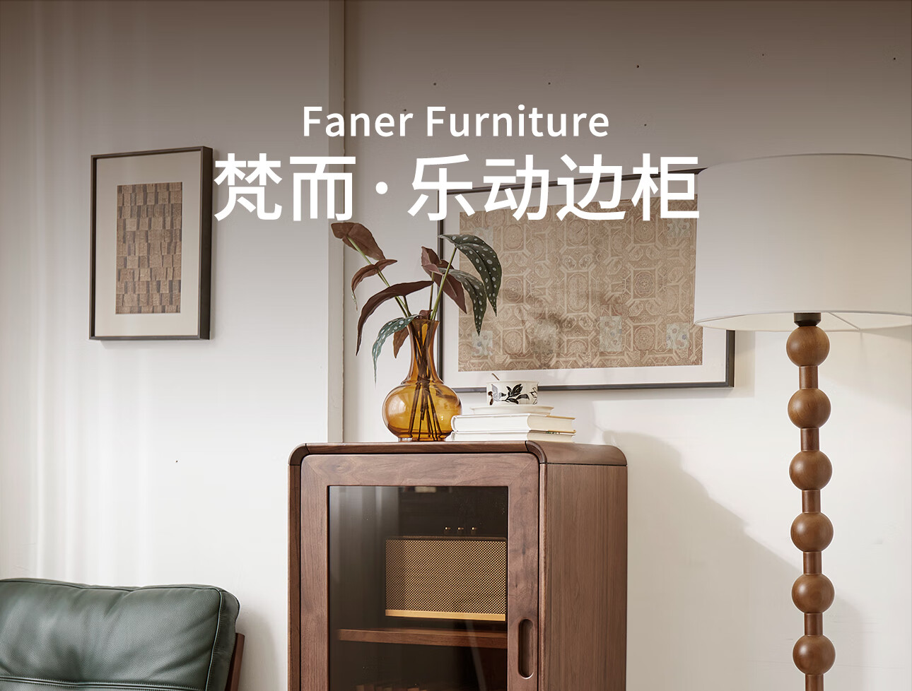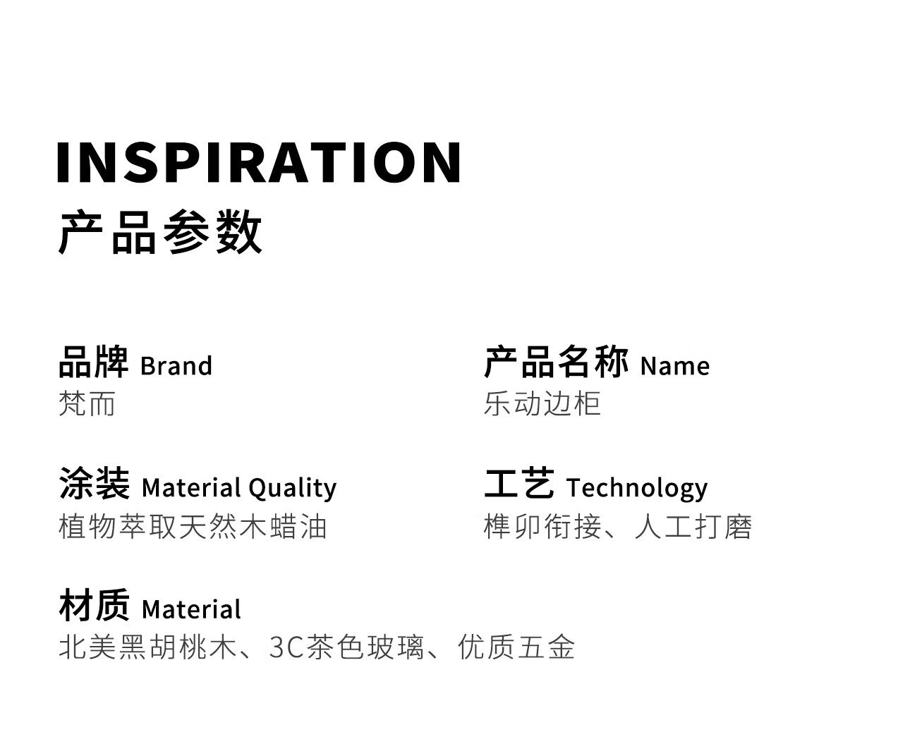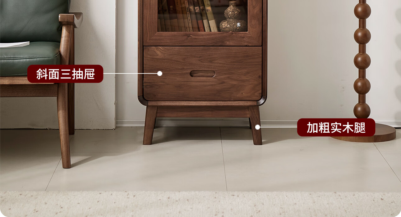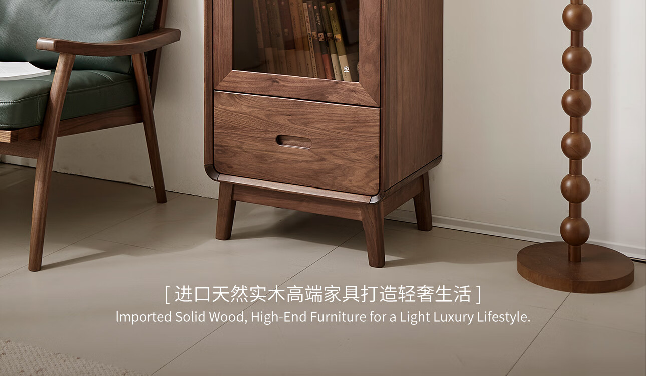 梵而餐边柜实木北美黑胡桃客厅靠墙高脚橱柜储物酒柜现代简约茶具柜子 乐动边柜【北美黑胡桃】