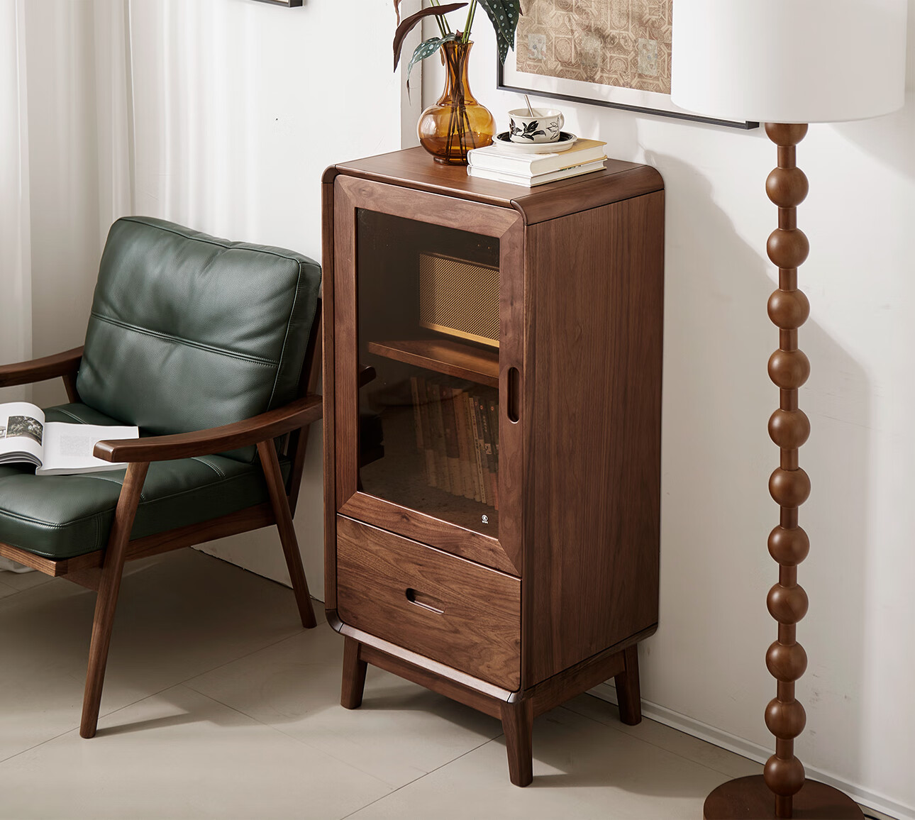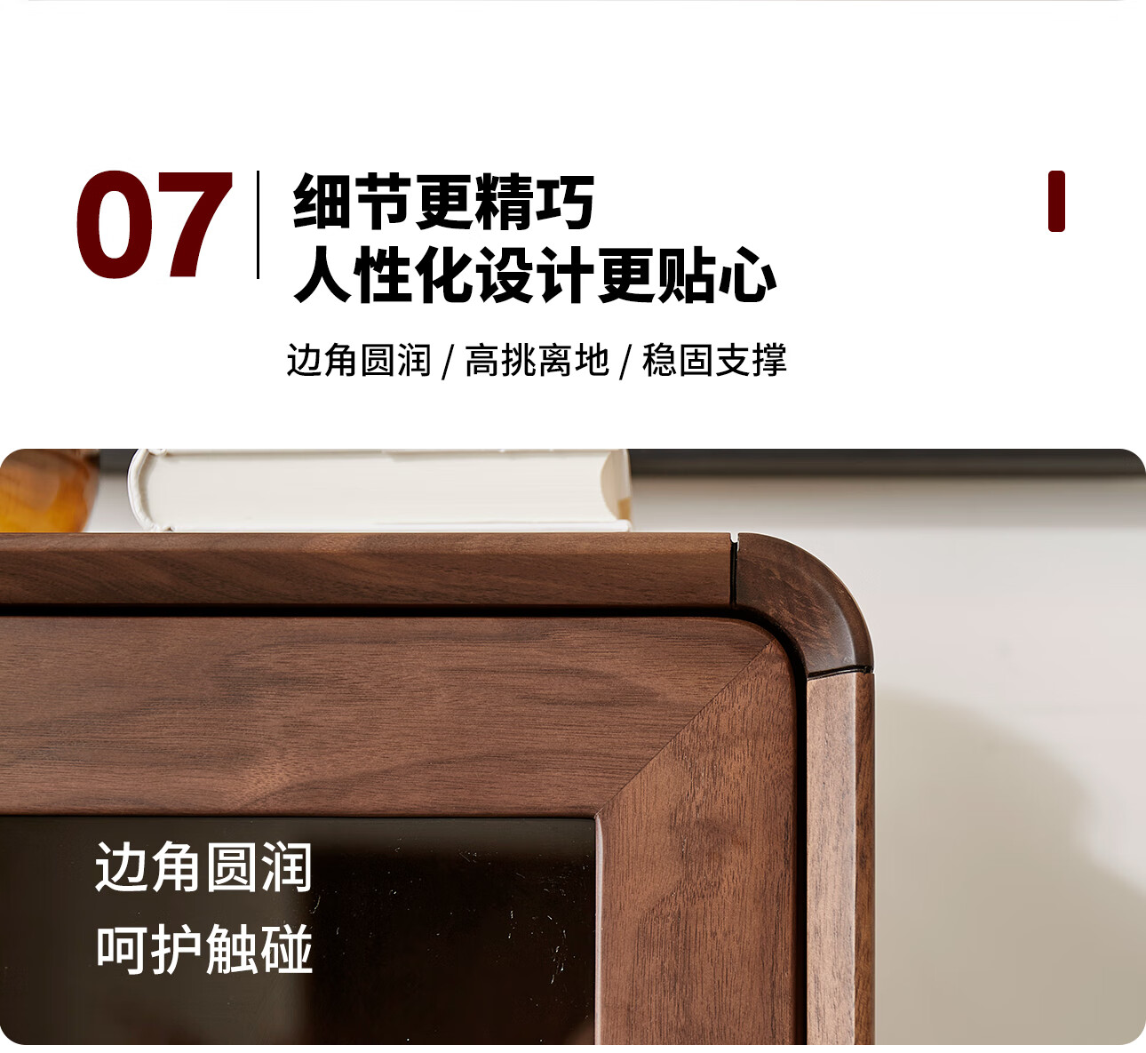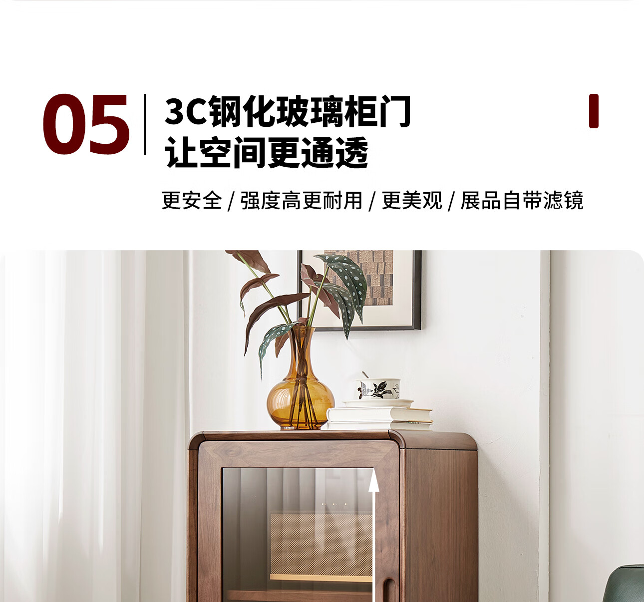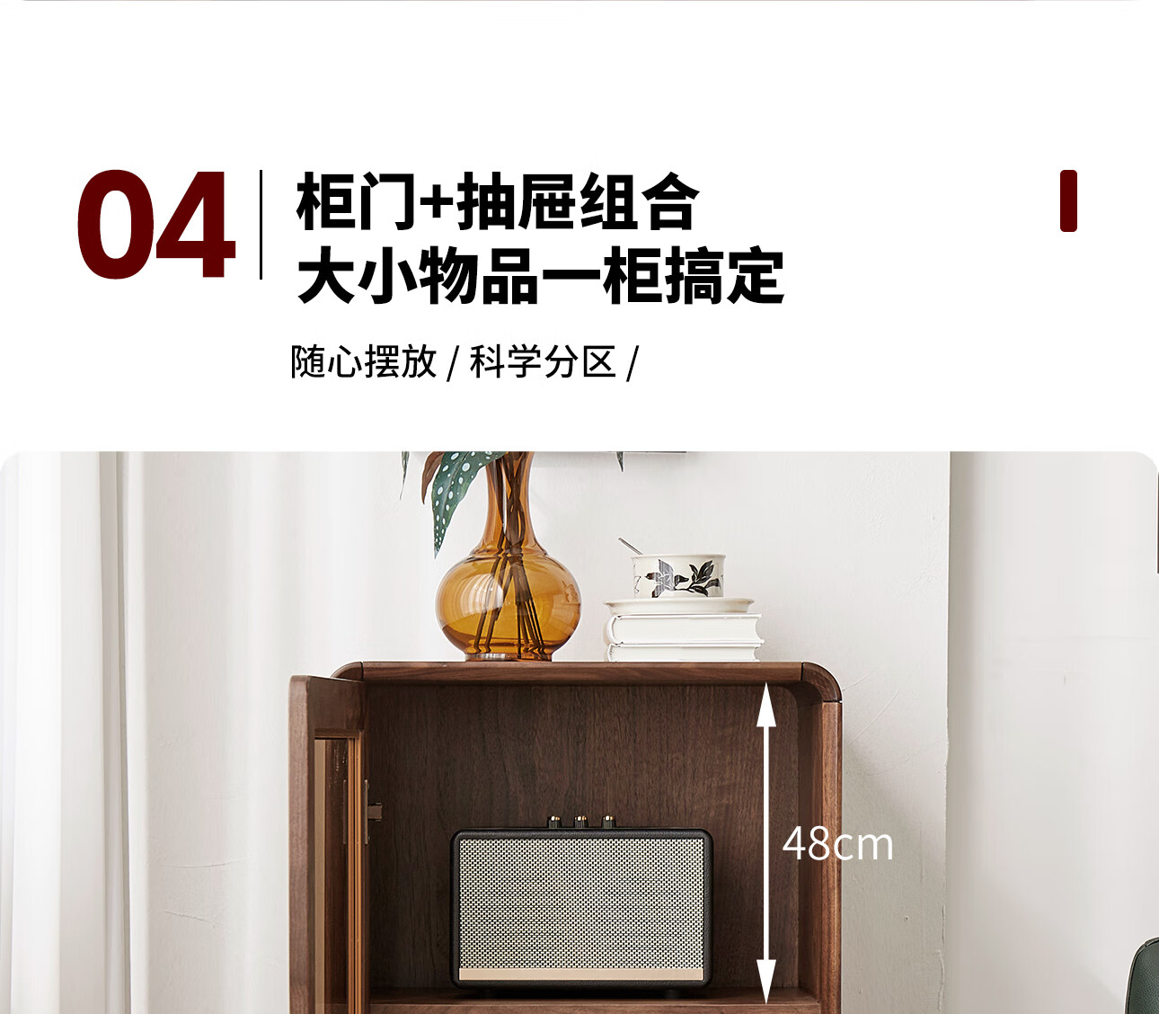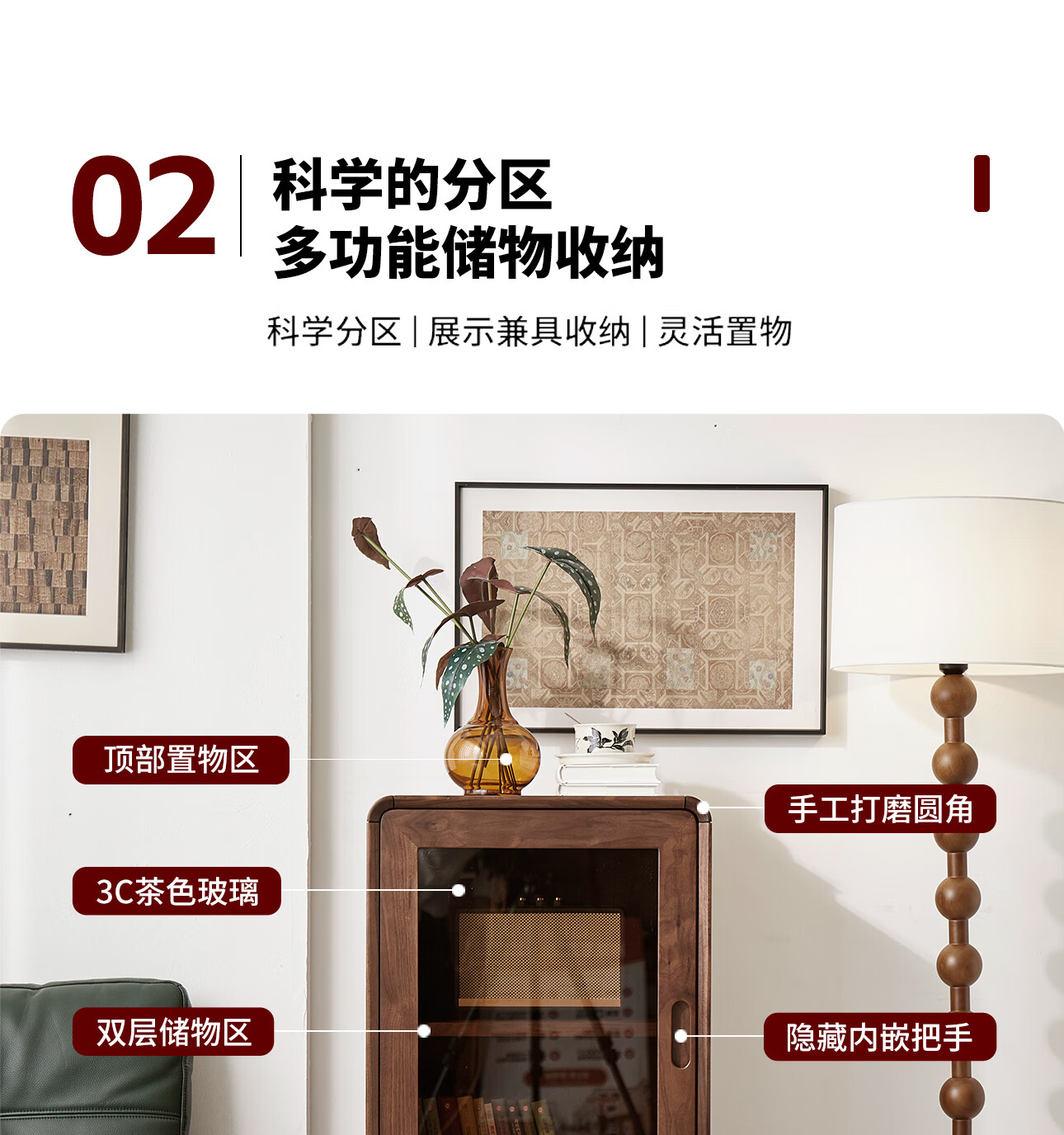 梵而餐边柜实木北美黑胡桃客厅靠墙高脚橱柜储物酒柜现代简约茶具柜子 乐动边柜【北美黑胡桃】