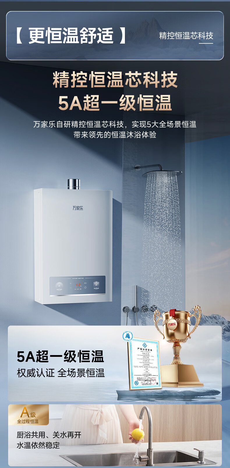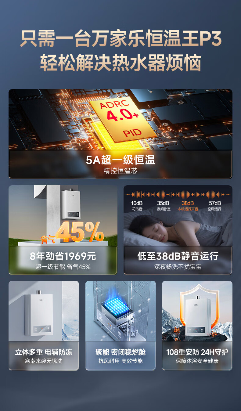 万家乐【超暖浴P3(F)·5A超一级恒温】13升天然气一级节能静音直流变频风机省气防冻以旧换新燃气热水器