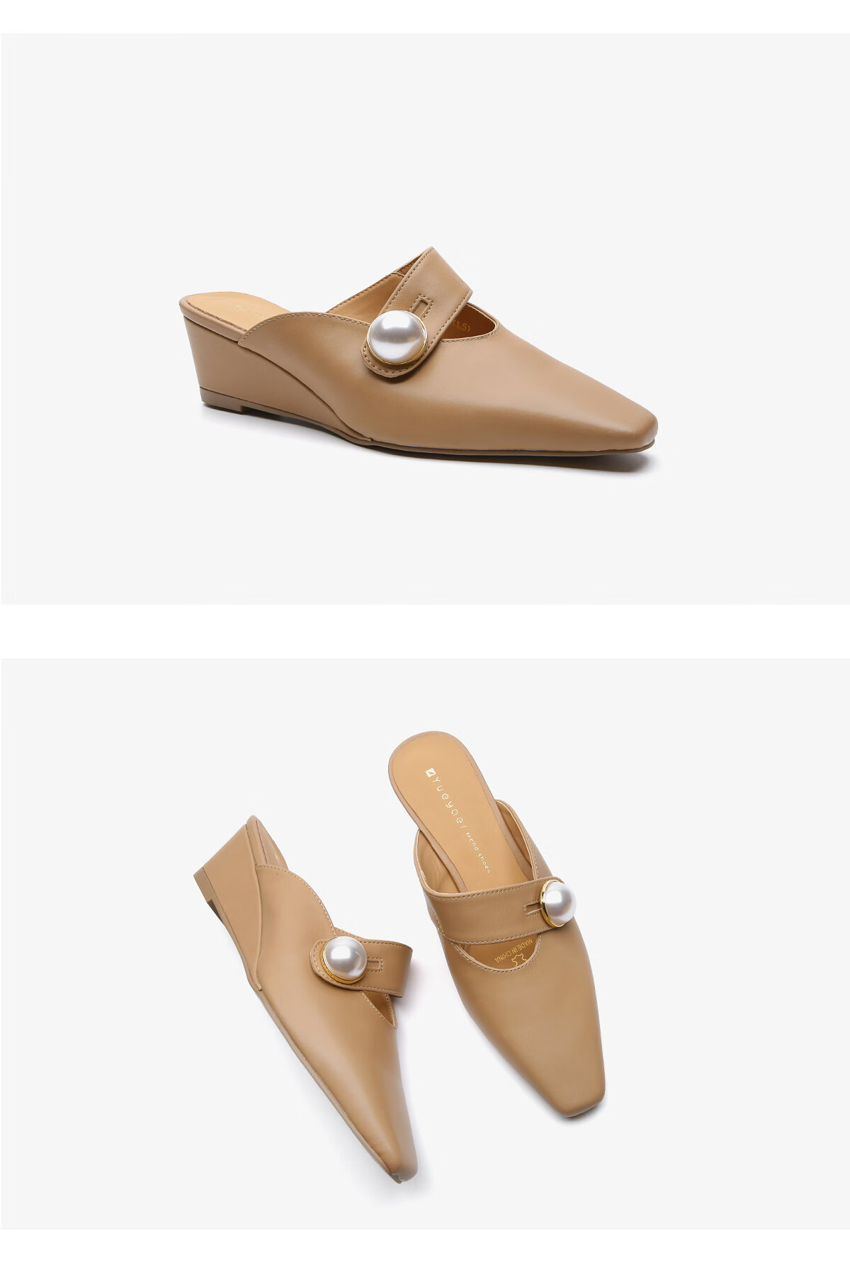 月芽儿包头半拖鞋女款2025年冬季季新款穆勒拖猫跟懒人一脚蹬舒适单鞋 米白色14S 34