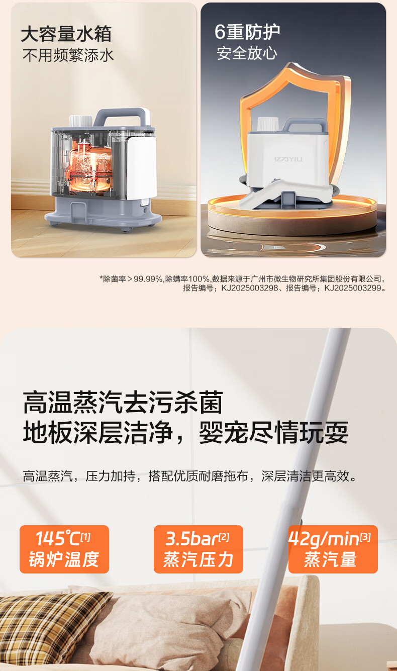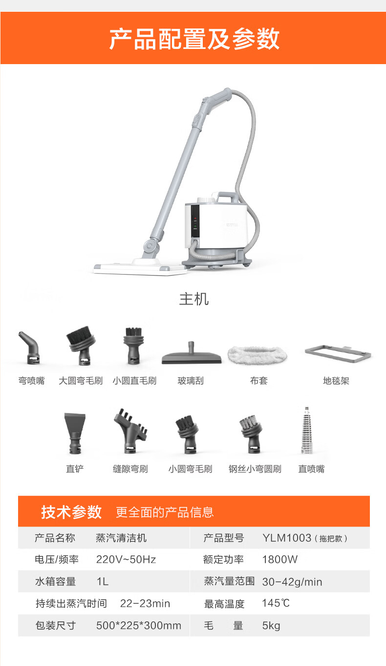 亿力高温高压蒸汽清洁机高压蒸汽拖把消毒机全屋家庭清洁油烟机厨房去油污空调沙发清洗机器1003拖地款