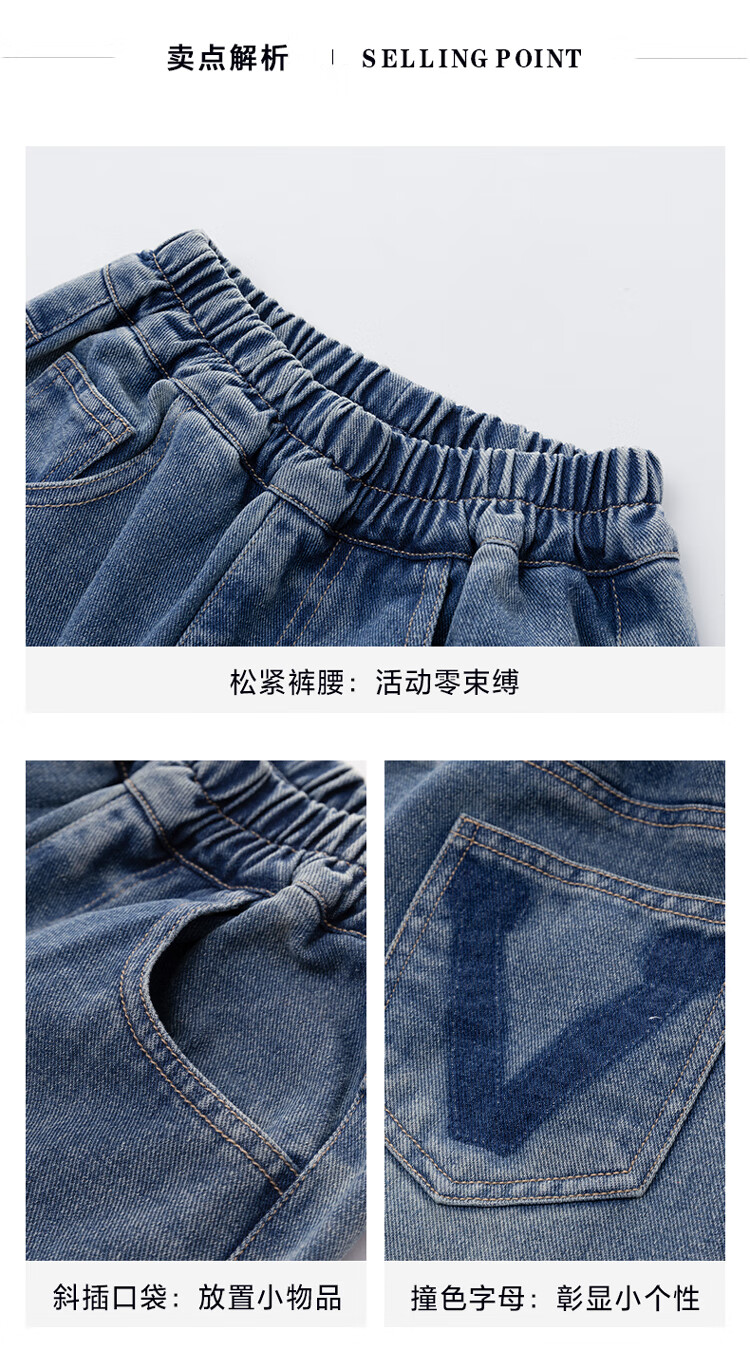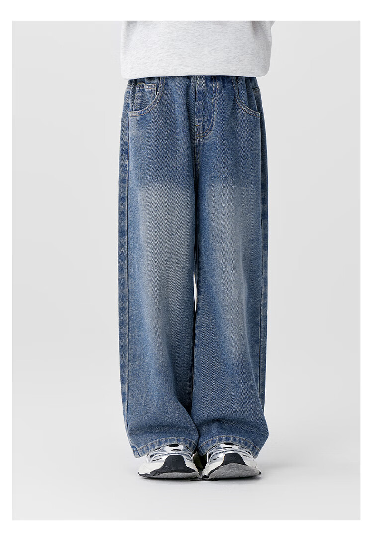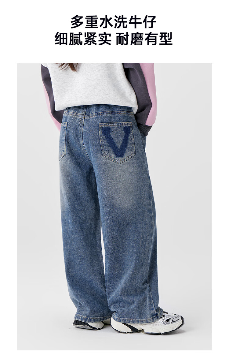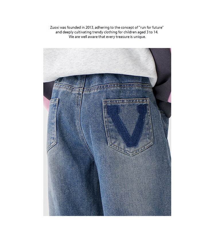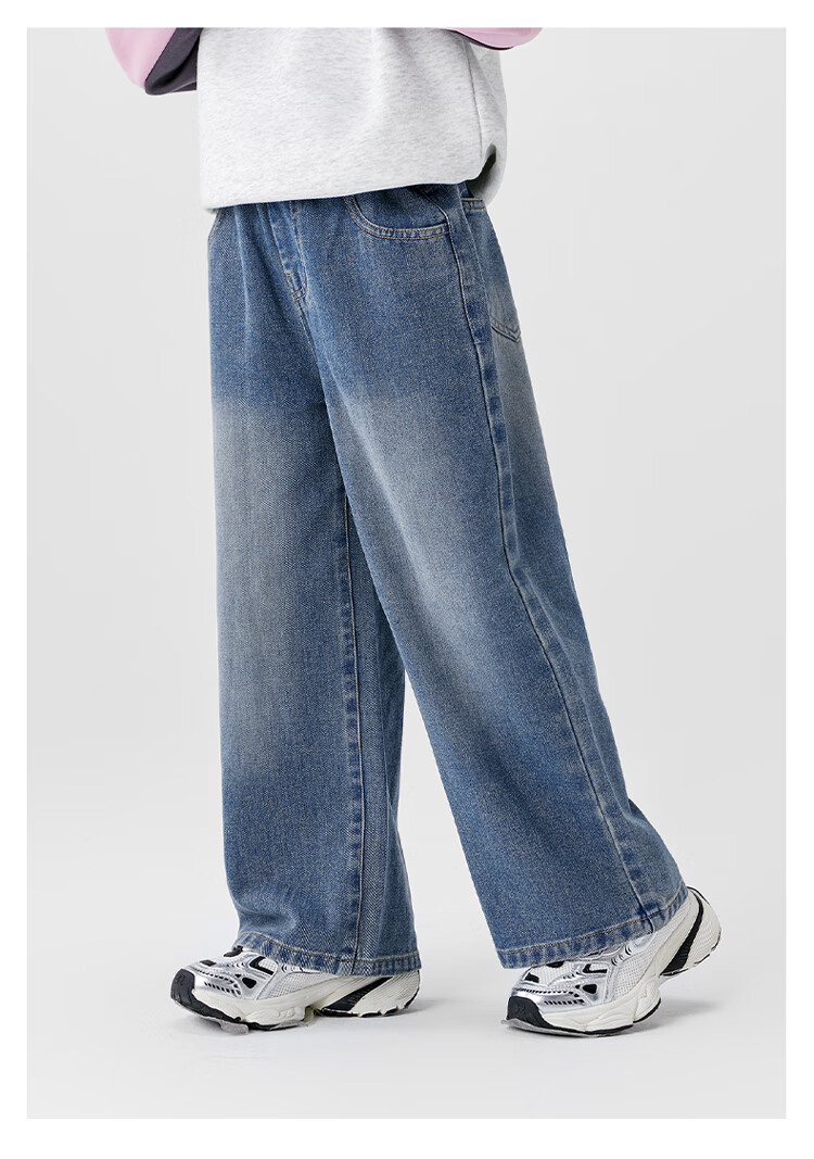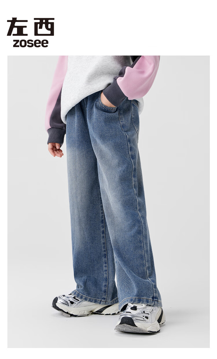 左西女童牛仔裤儿童裤子直筒裤2026新款中大童春装长裤潮 牛仔色 150
