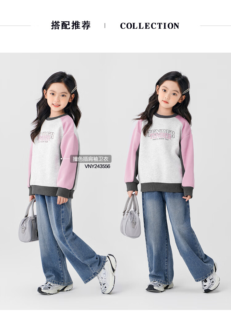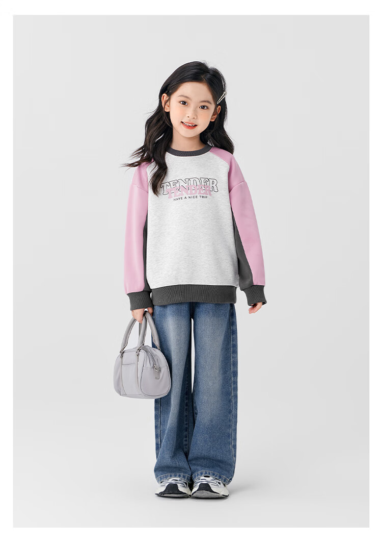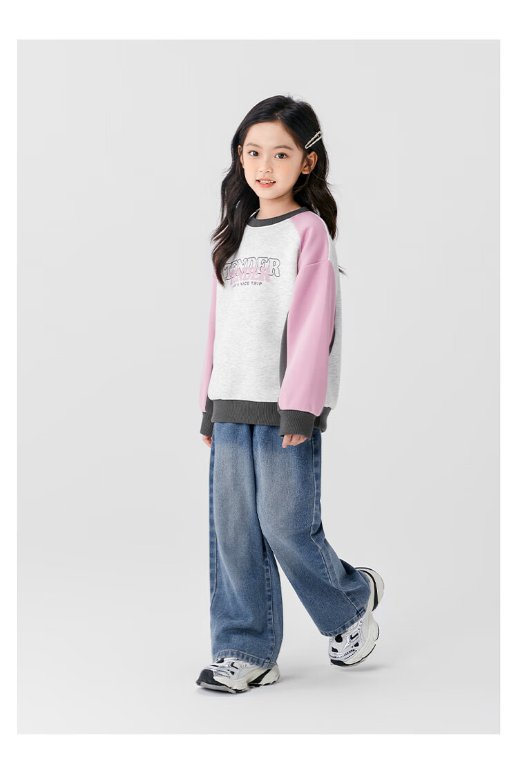 迷你巴拉巴拉男女童长袖套装潮流拼色上衣长裤两件套春季新款 海盐千层 100 【91-100cm 12-16kg】