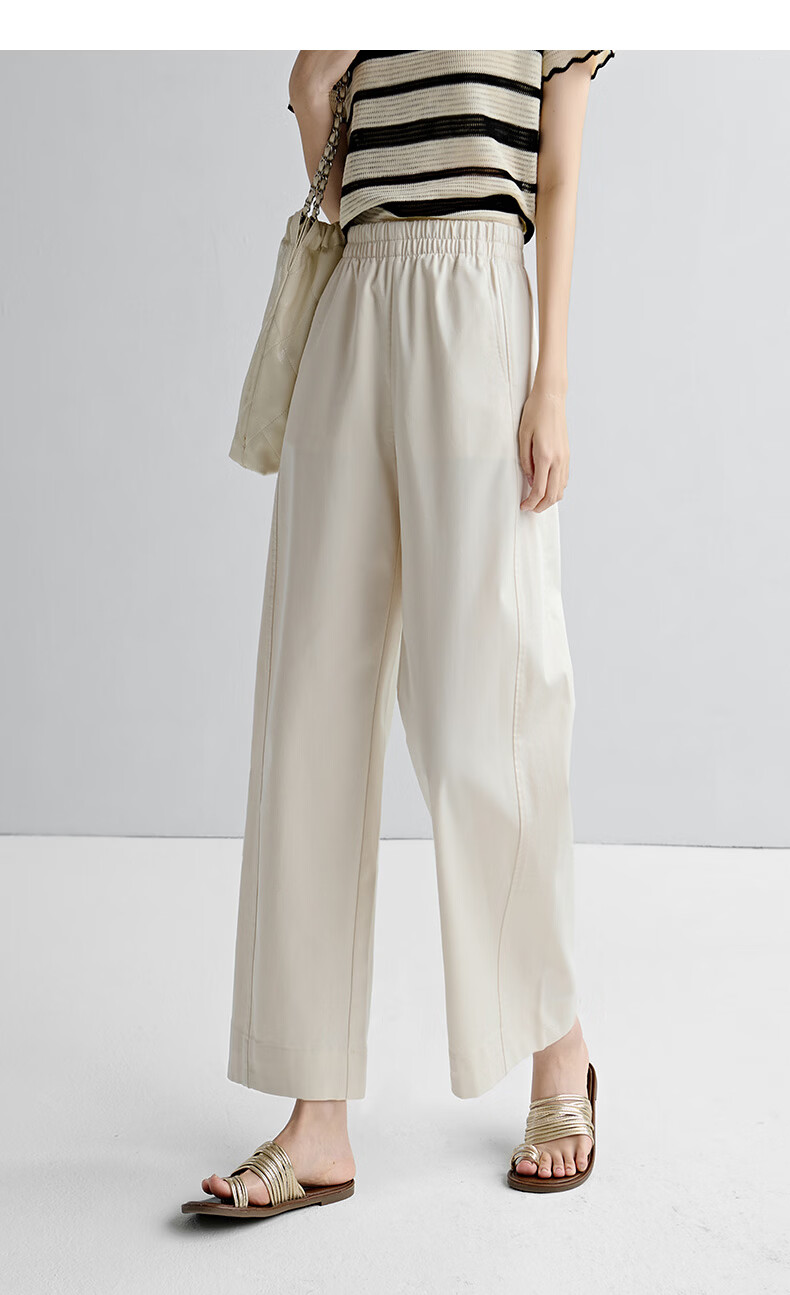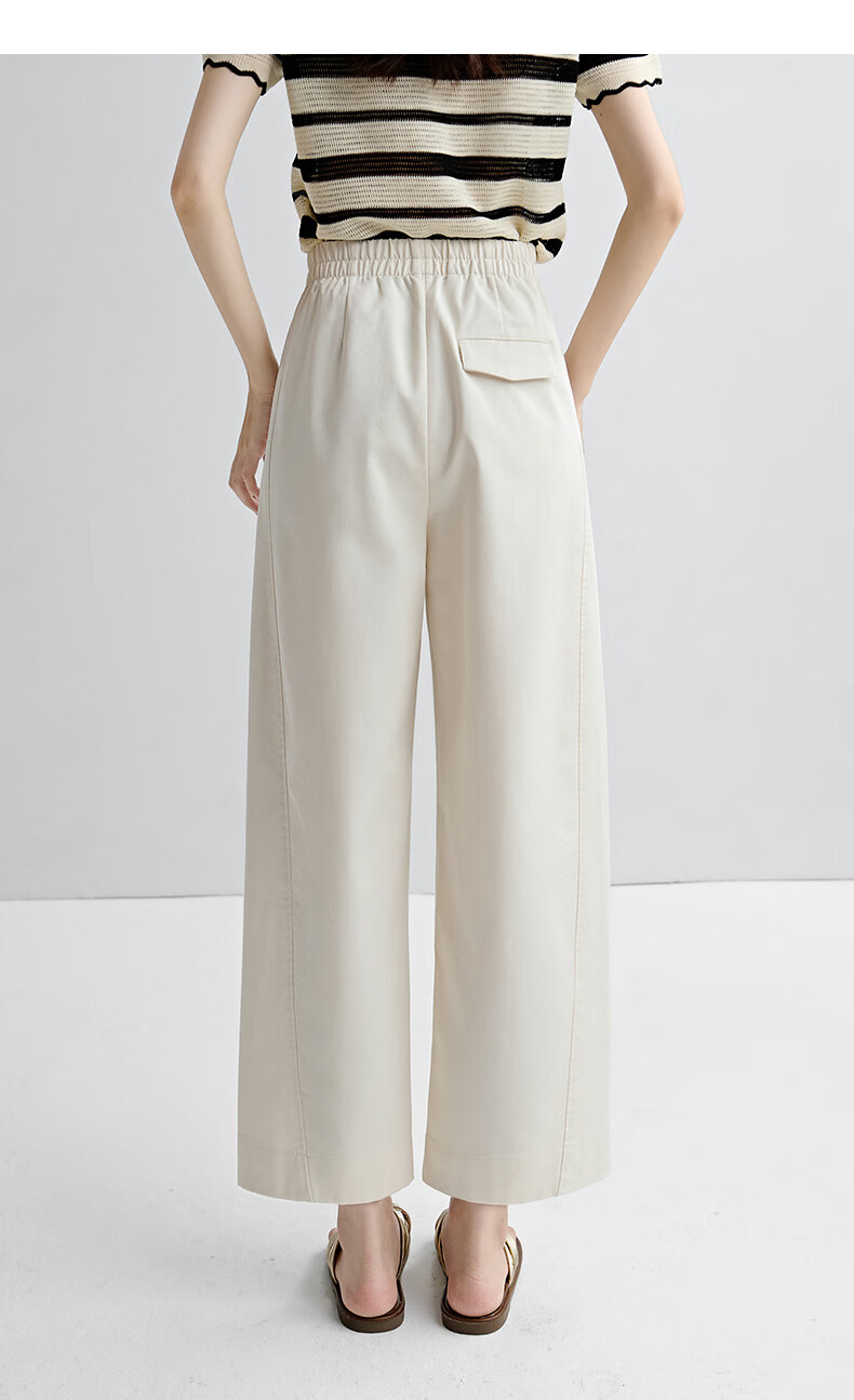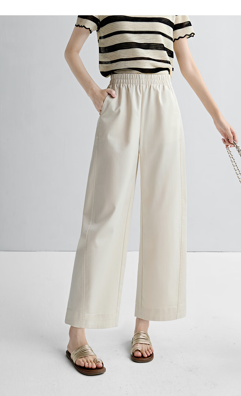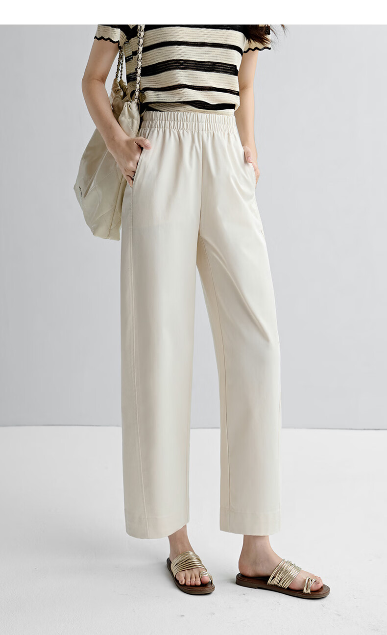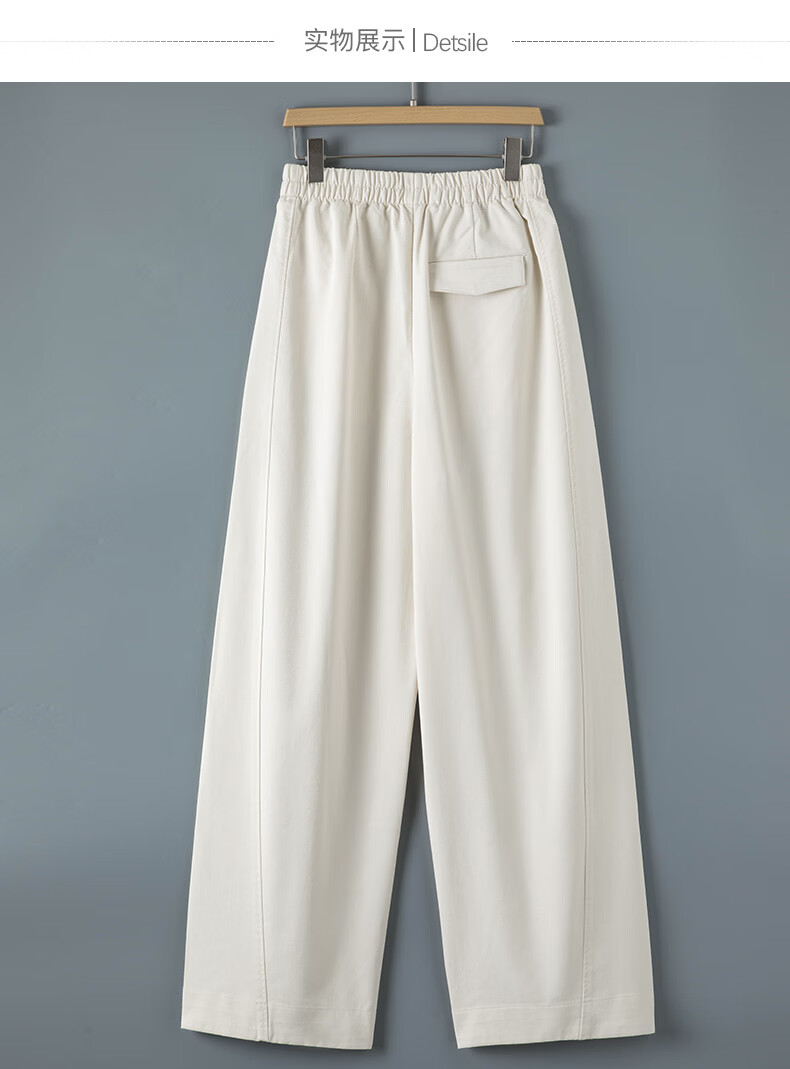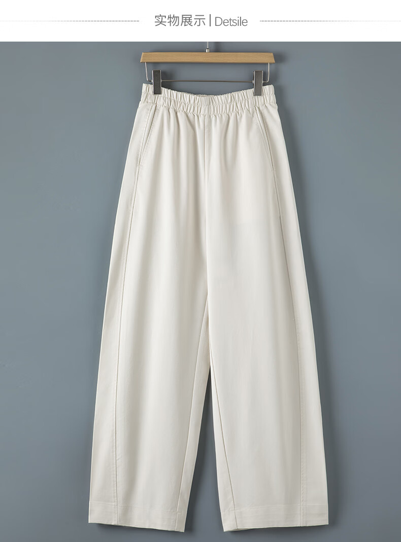 晚白【新品】2026年春款休闲高腰裤子棉感亲肤松紧腰舒适阔腿裤女 杏色 26