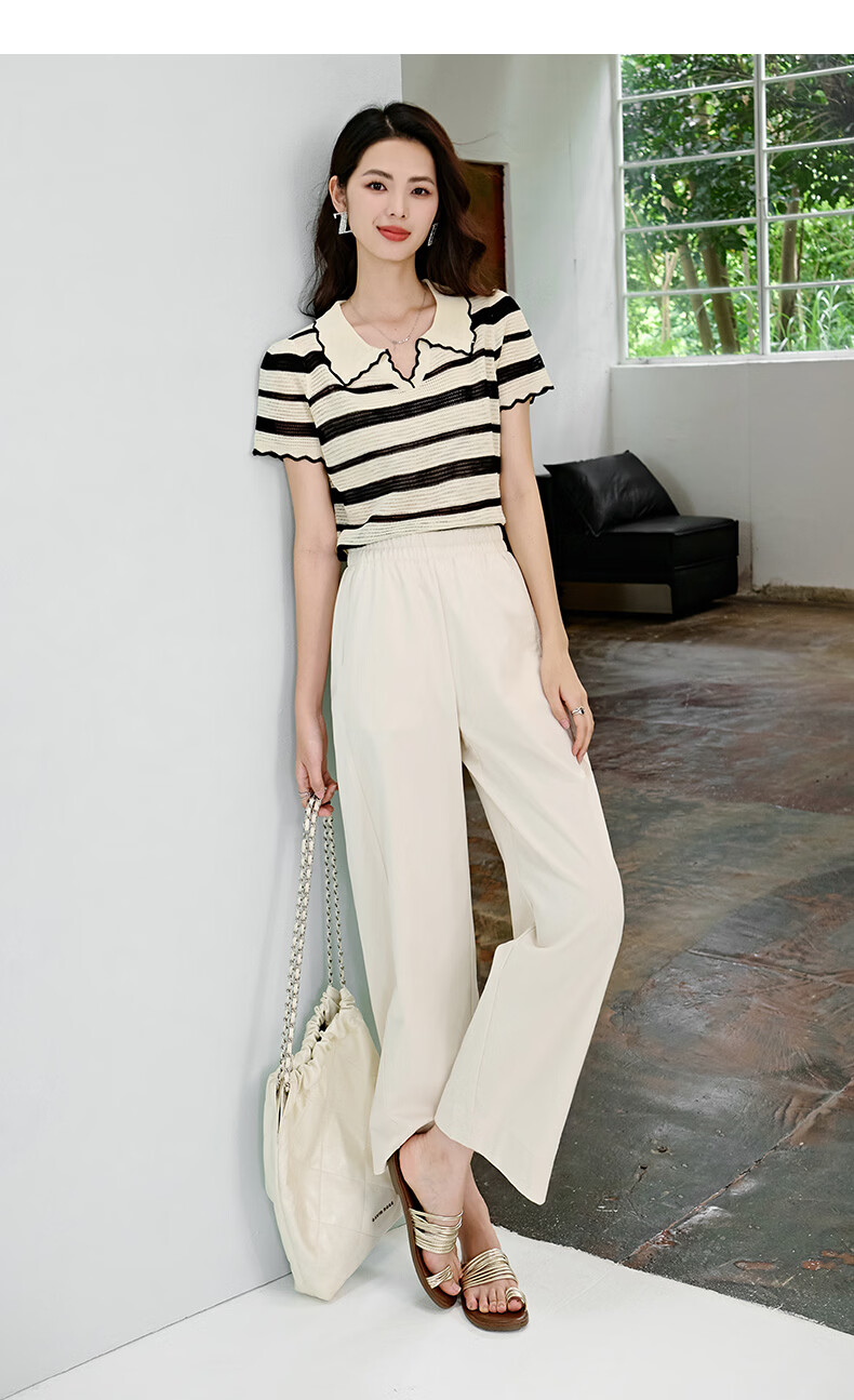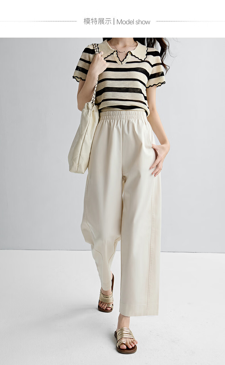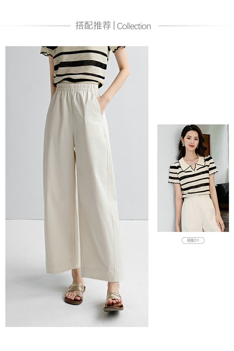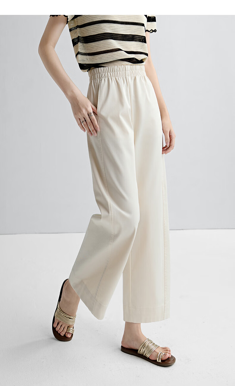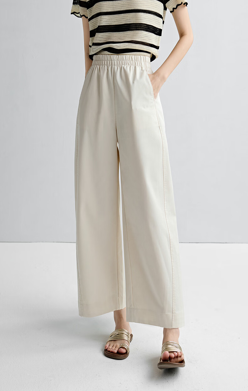 晚白【新品】2026年春款休闲高腰裤子棉感亲肤松紧腰舒适阔腿裤女 杏色 26