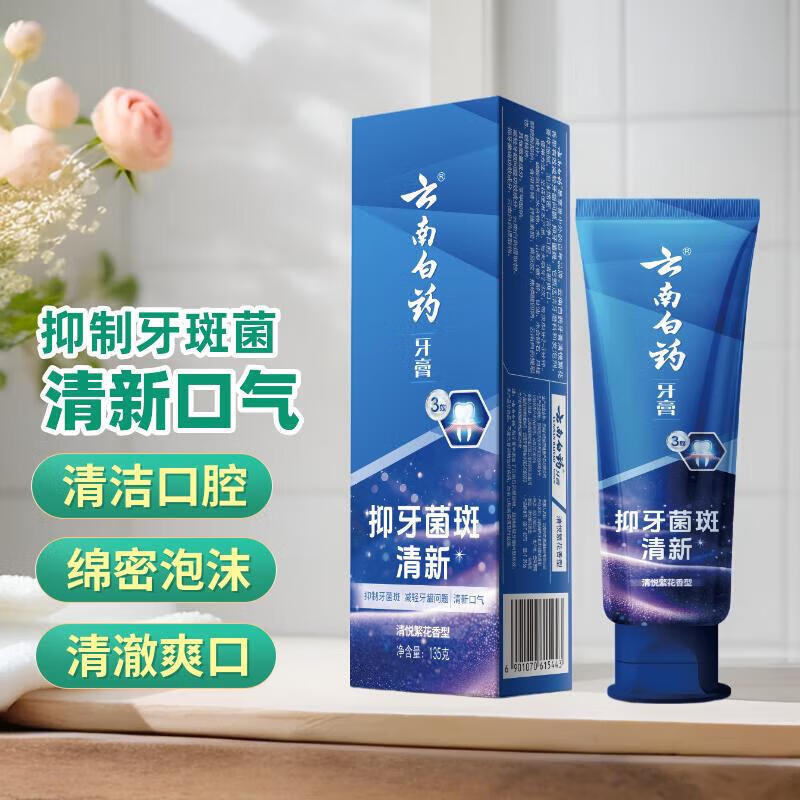 云南白药牙膏清悦繁花香型 抑制牙斑菌 清新口气135g【临期清仓】