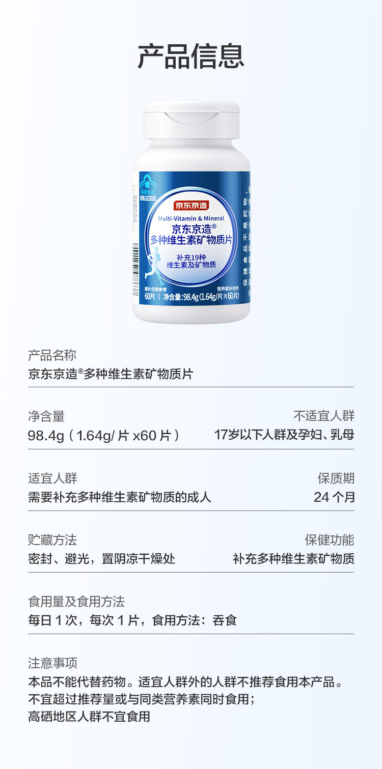 京东京造 男士多种复合维生素矿物质片60片 维生素b族维生素c锌镁