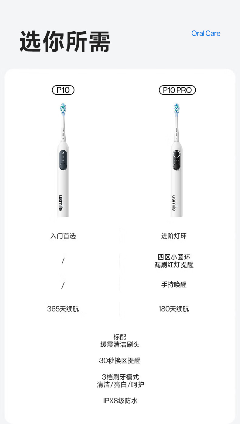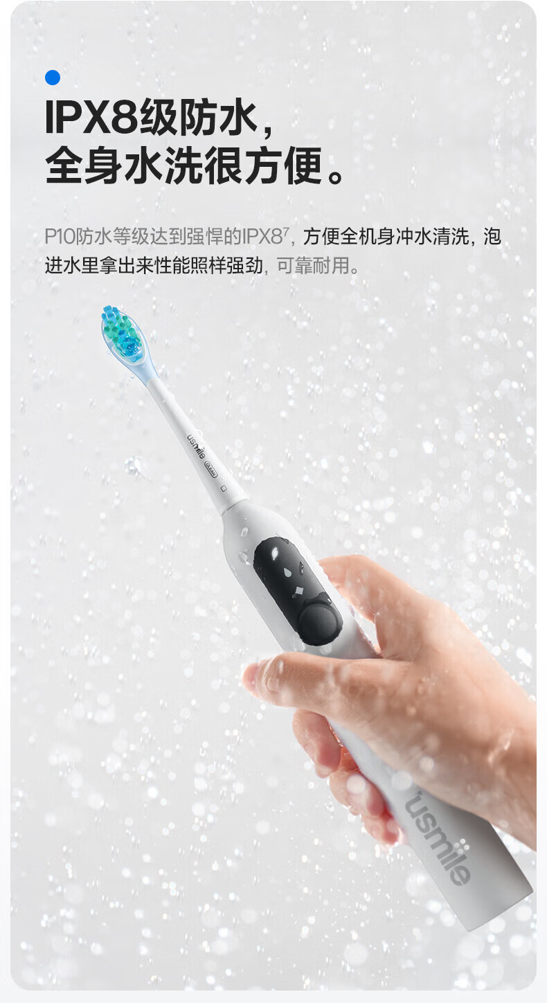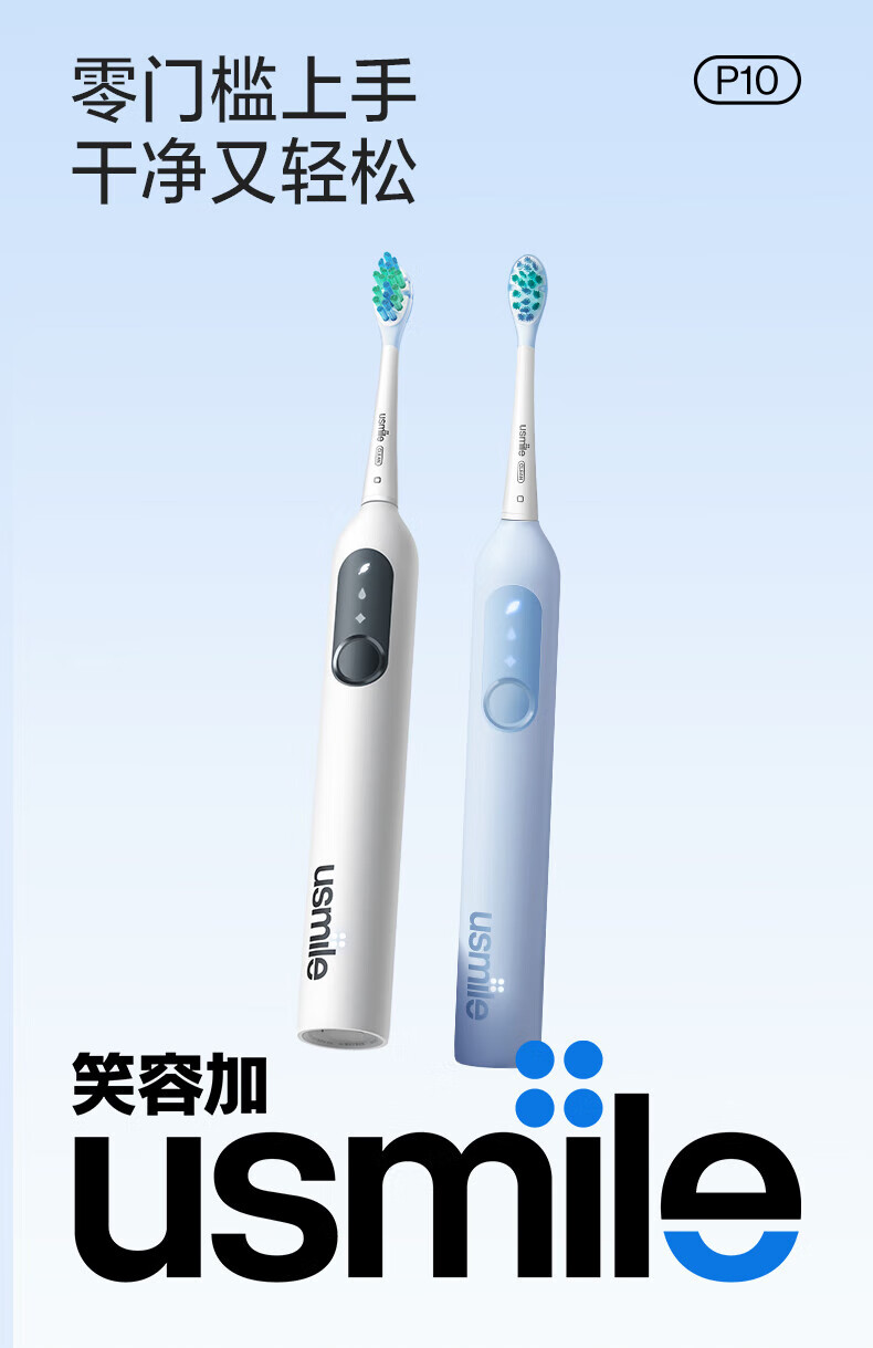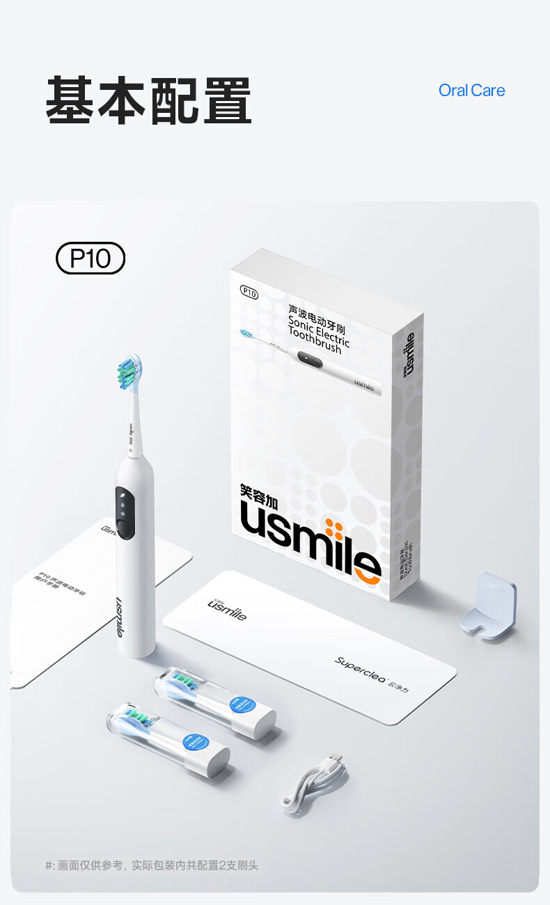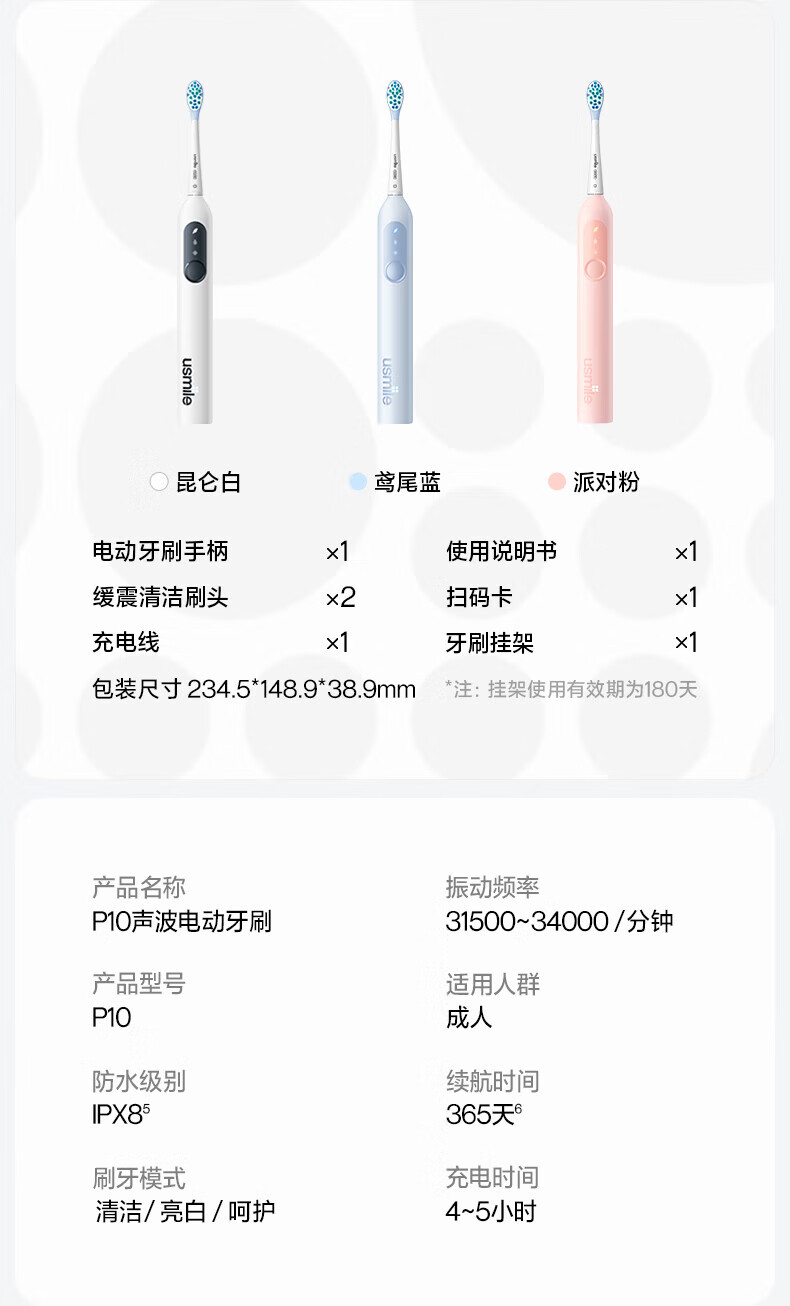 Usmile笑容加电动牙刷P10系列 全新缓震清洁刷头 成人情侣款牙刷送男友女友生日礼物 520节日礼物 P10派对粉【标配2刷头+挂架】
