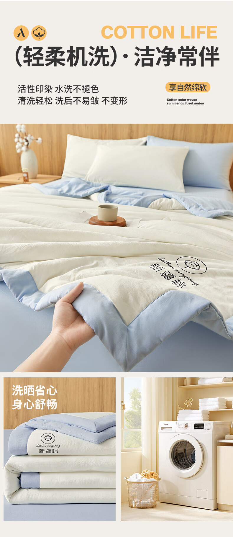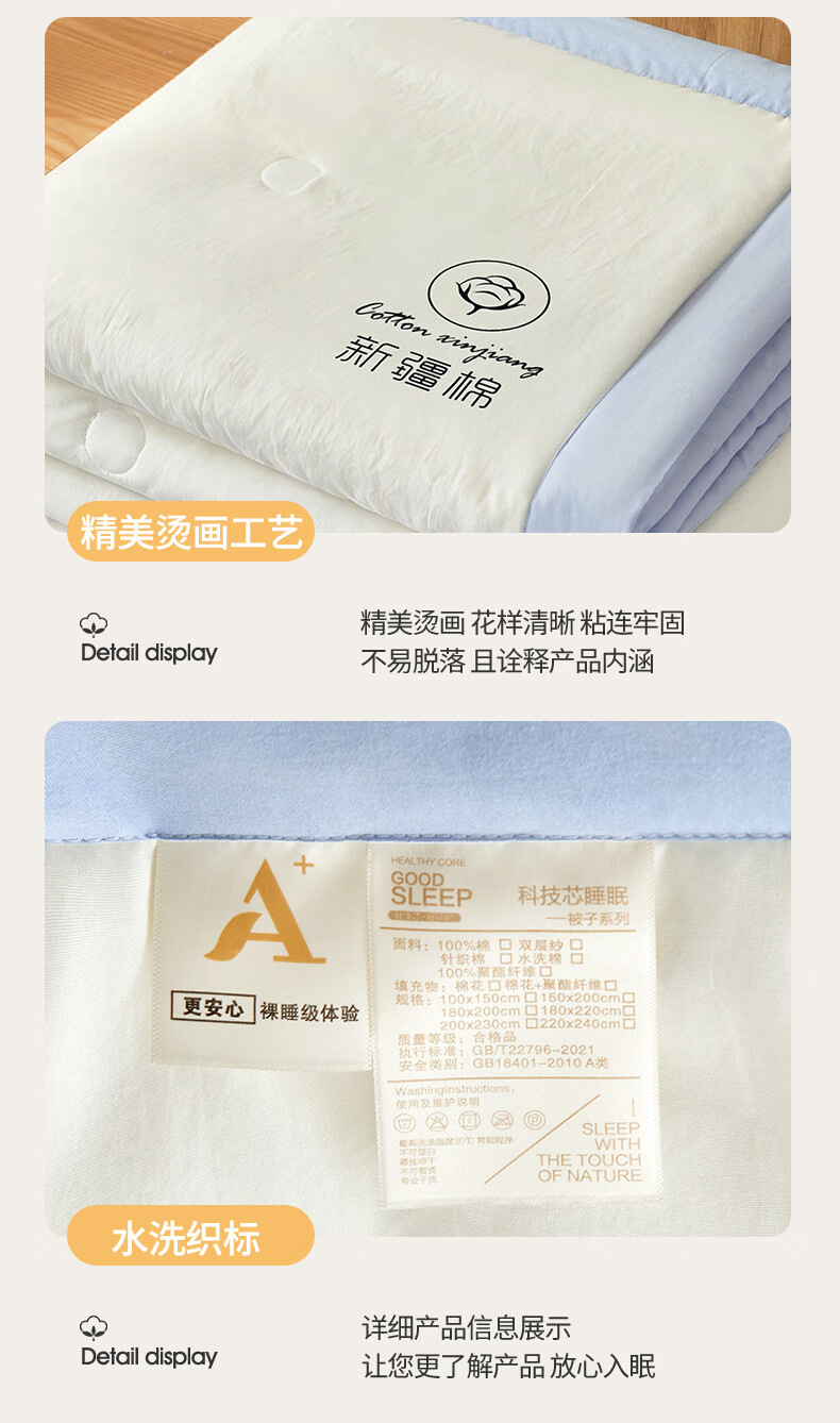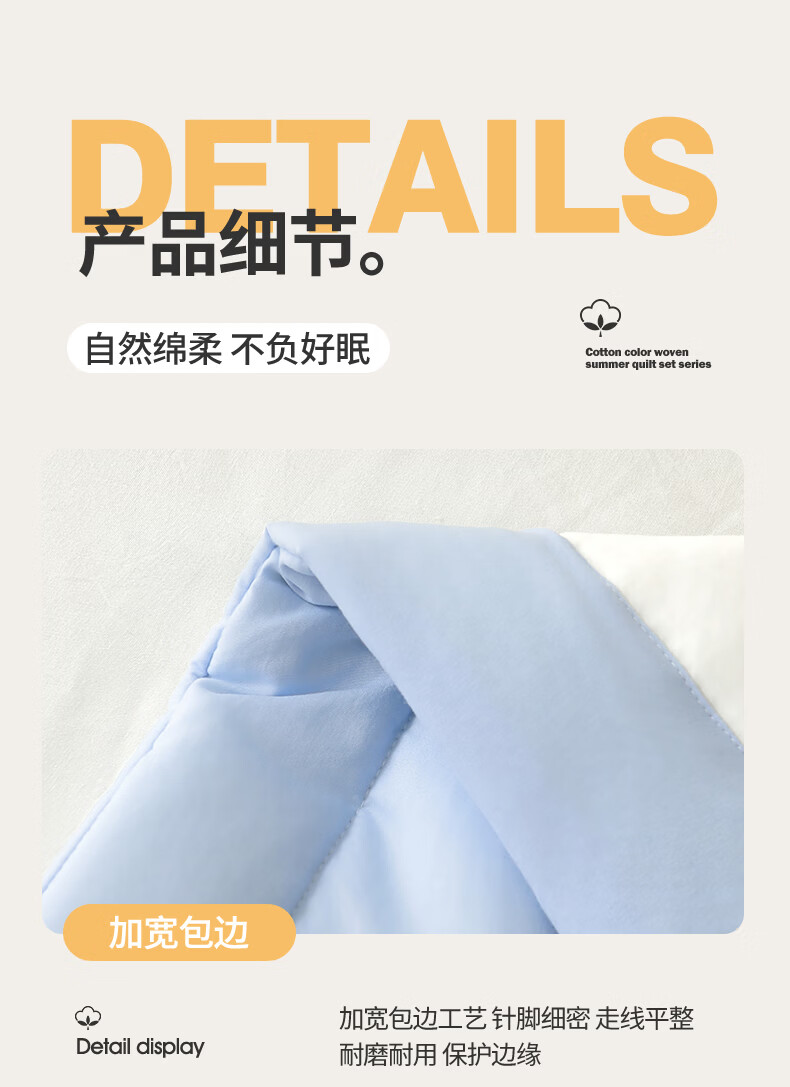 雅鹿A类夏凉被纯棉全棉新疆棉花空调被200x230cm夏季可机洗薄被子被芯 素夏-白蓝 (轻盈柔软 不跑棉不结团) 150x200cm【宿舍被】