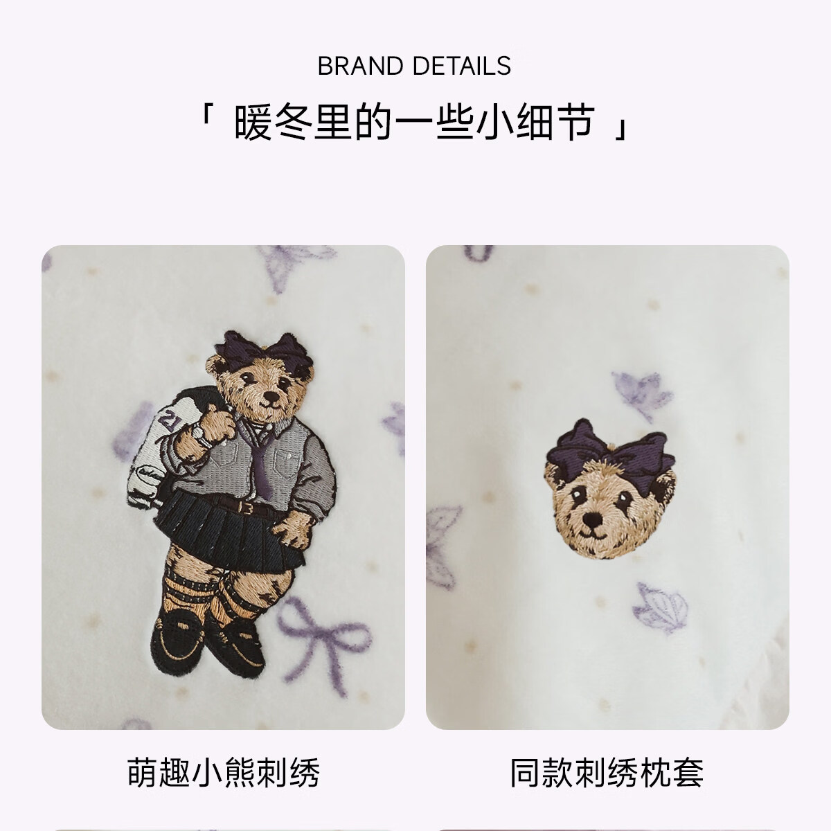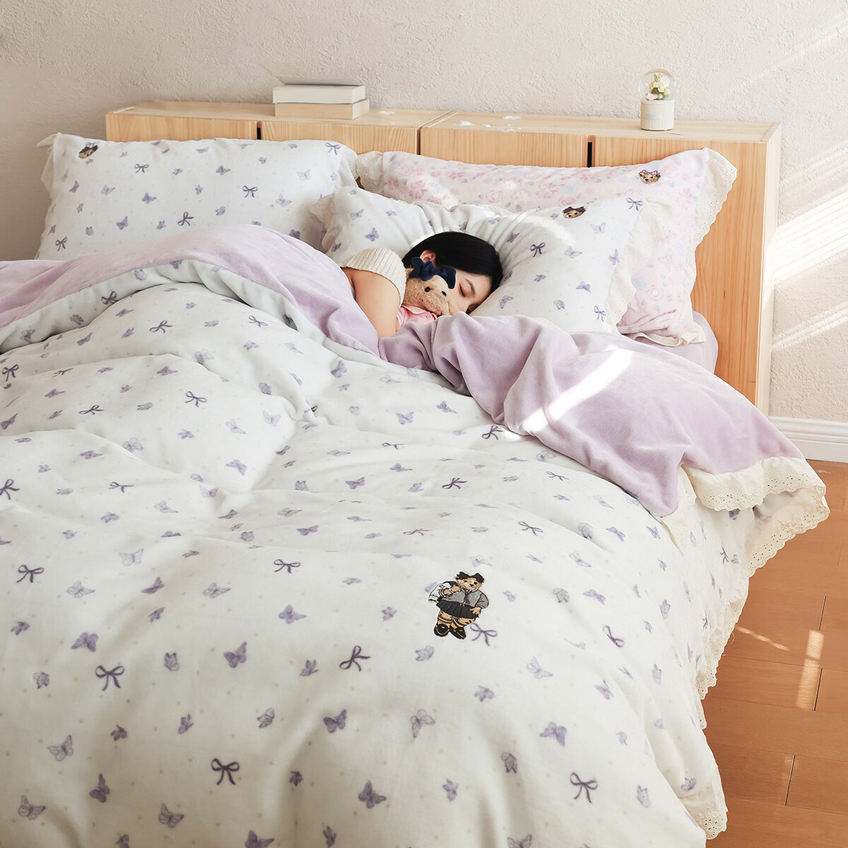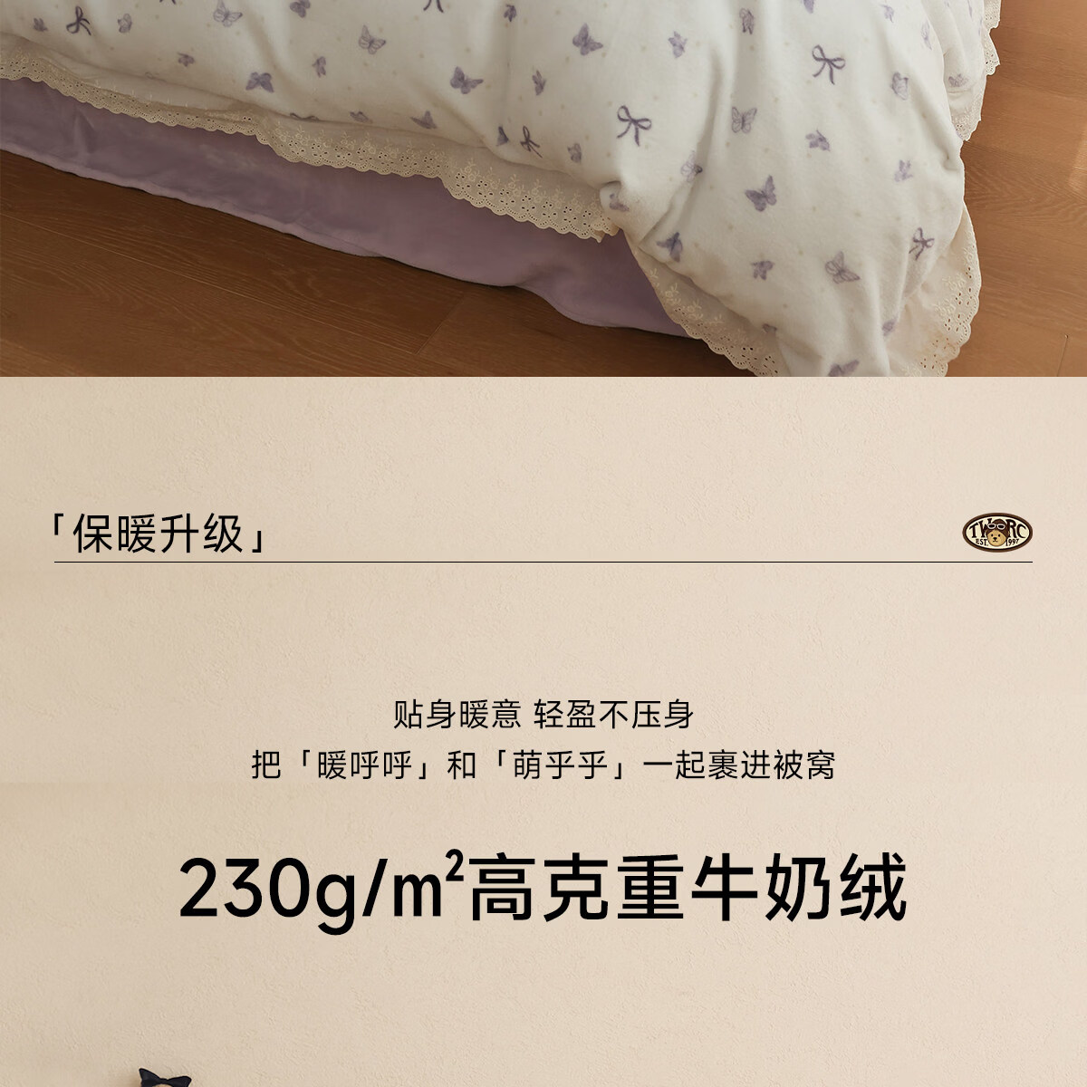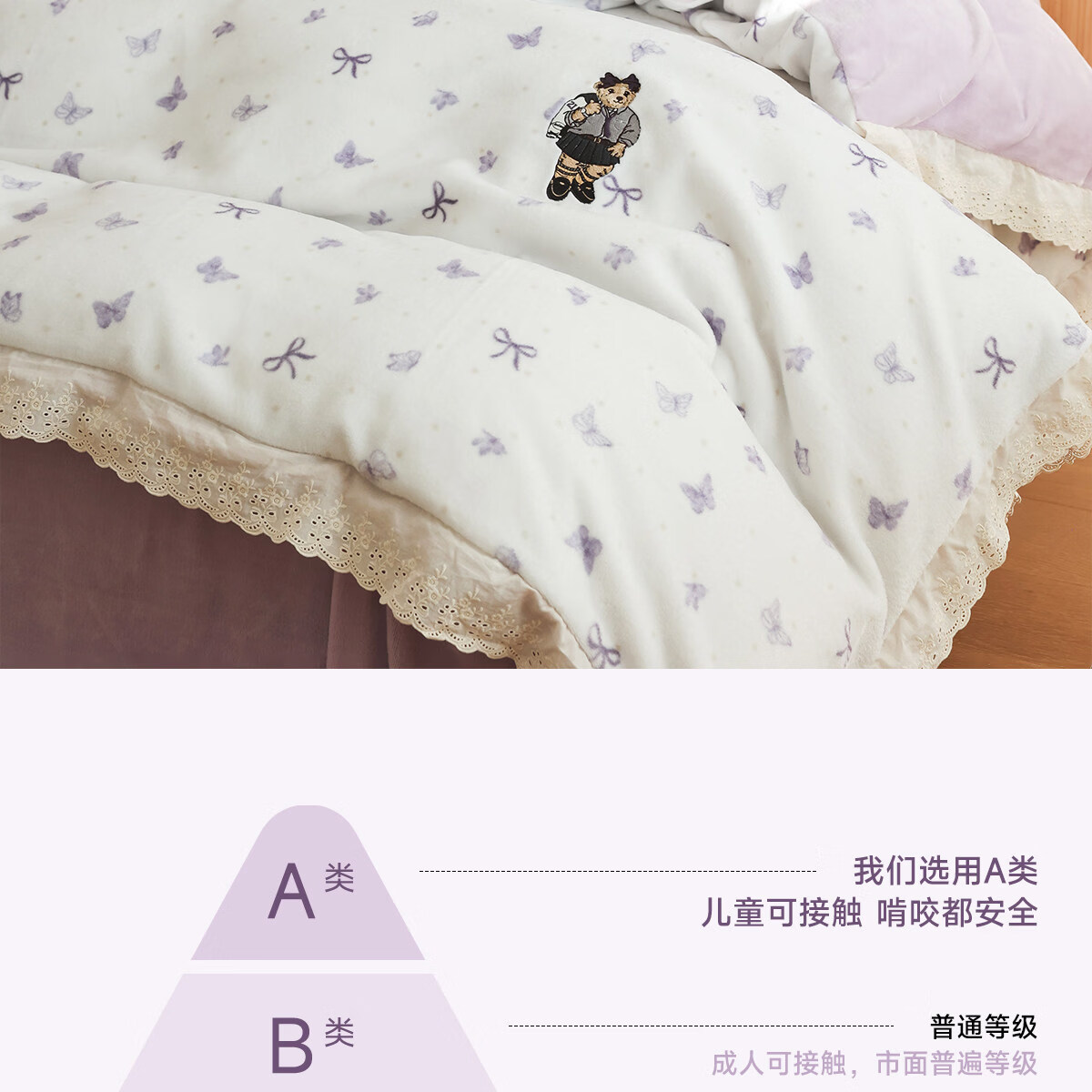 Teenie Weenie小熊A类少女粉碎花牛奶绒保暖四件套法式蕾丝花边被套加厚三件套 小熊慕斯系列-花粉 0.9/1.2m 床单款 被套150*200cm 三件套