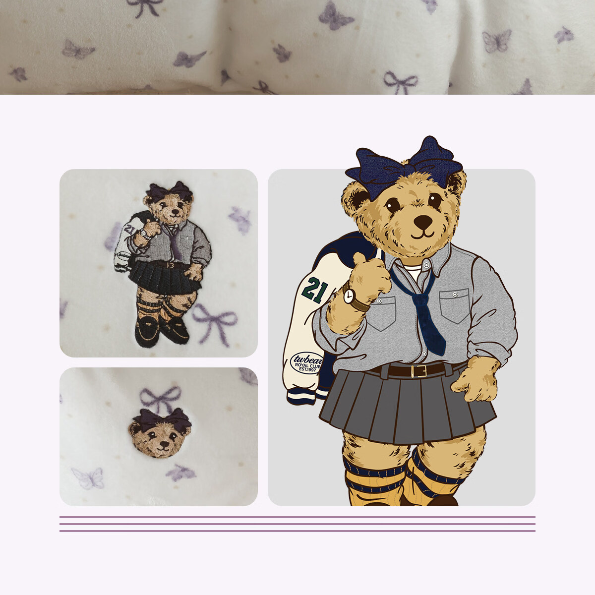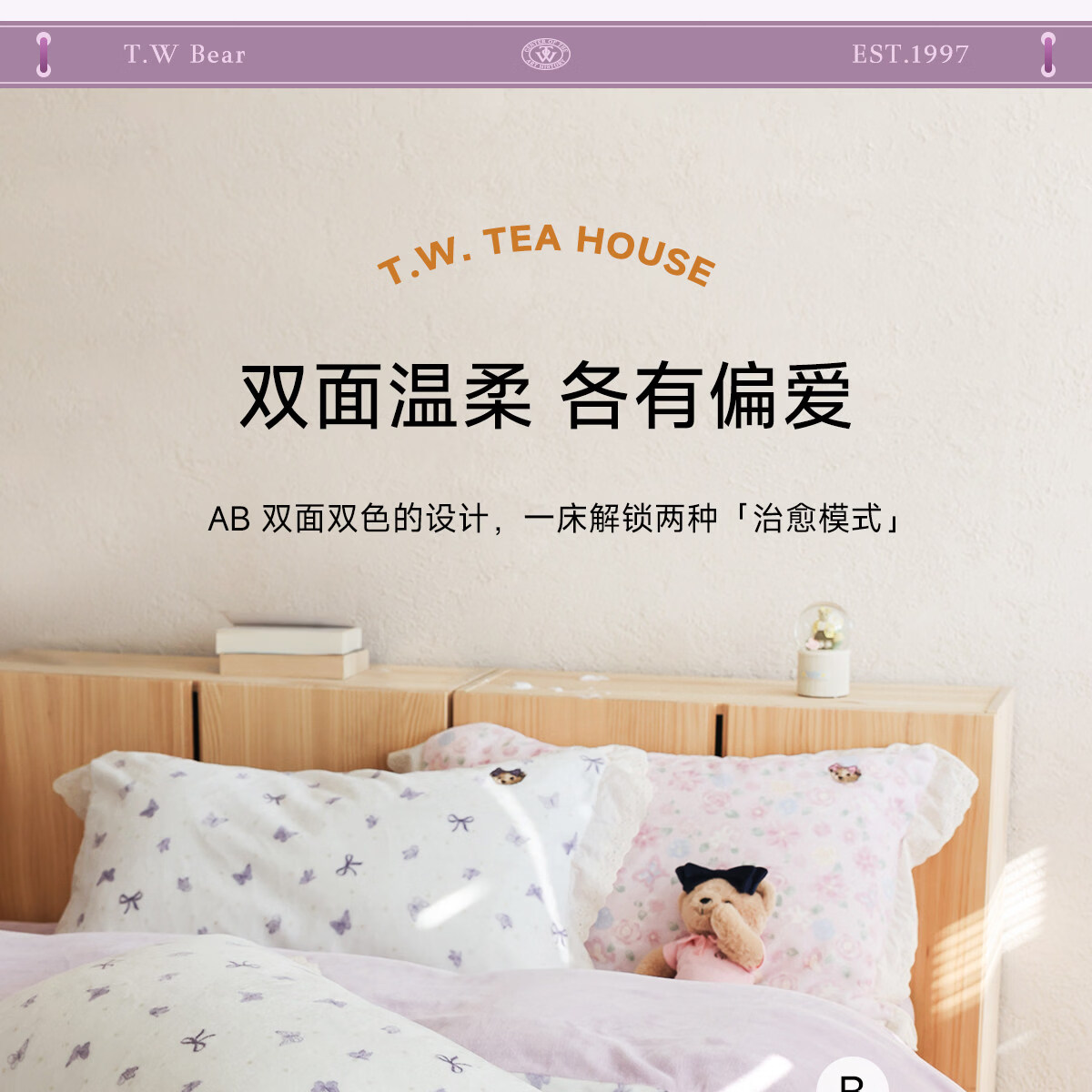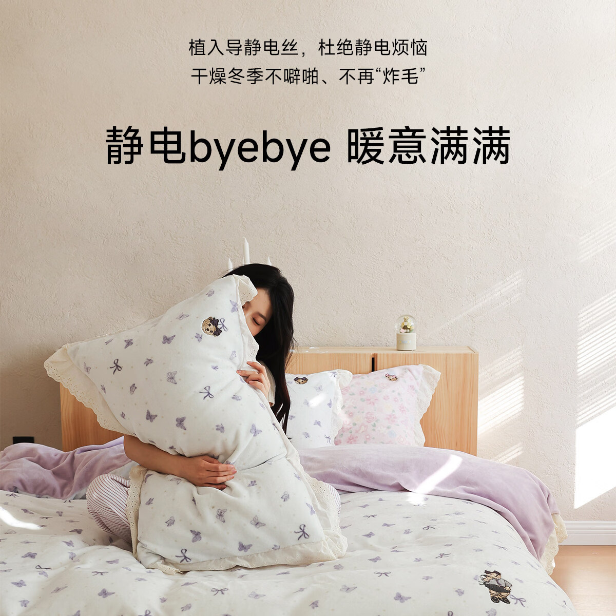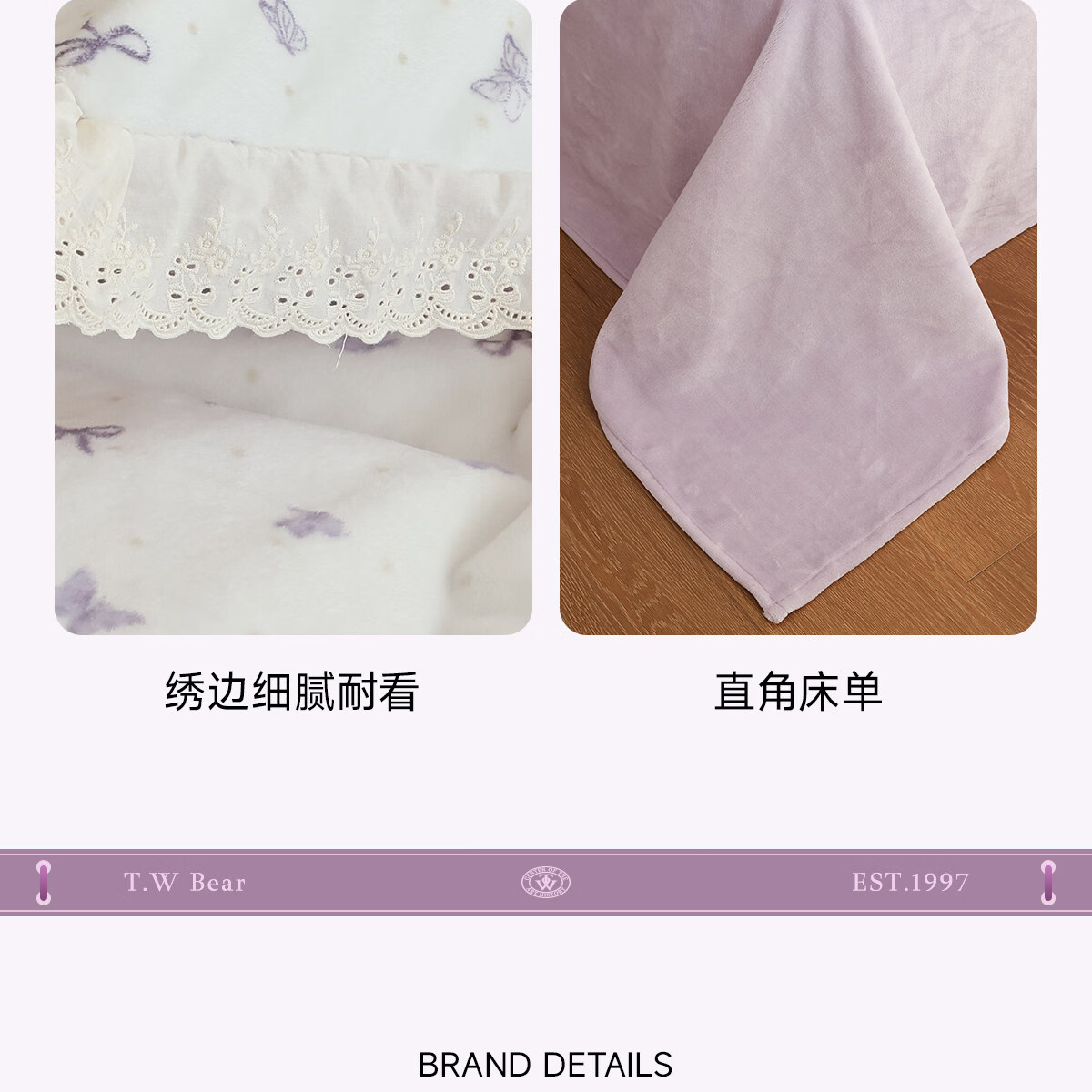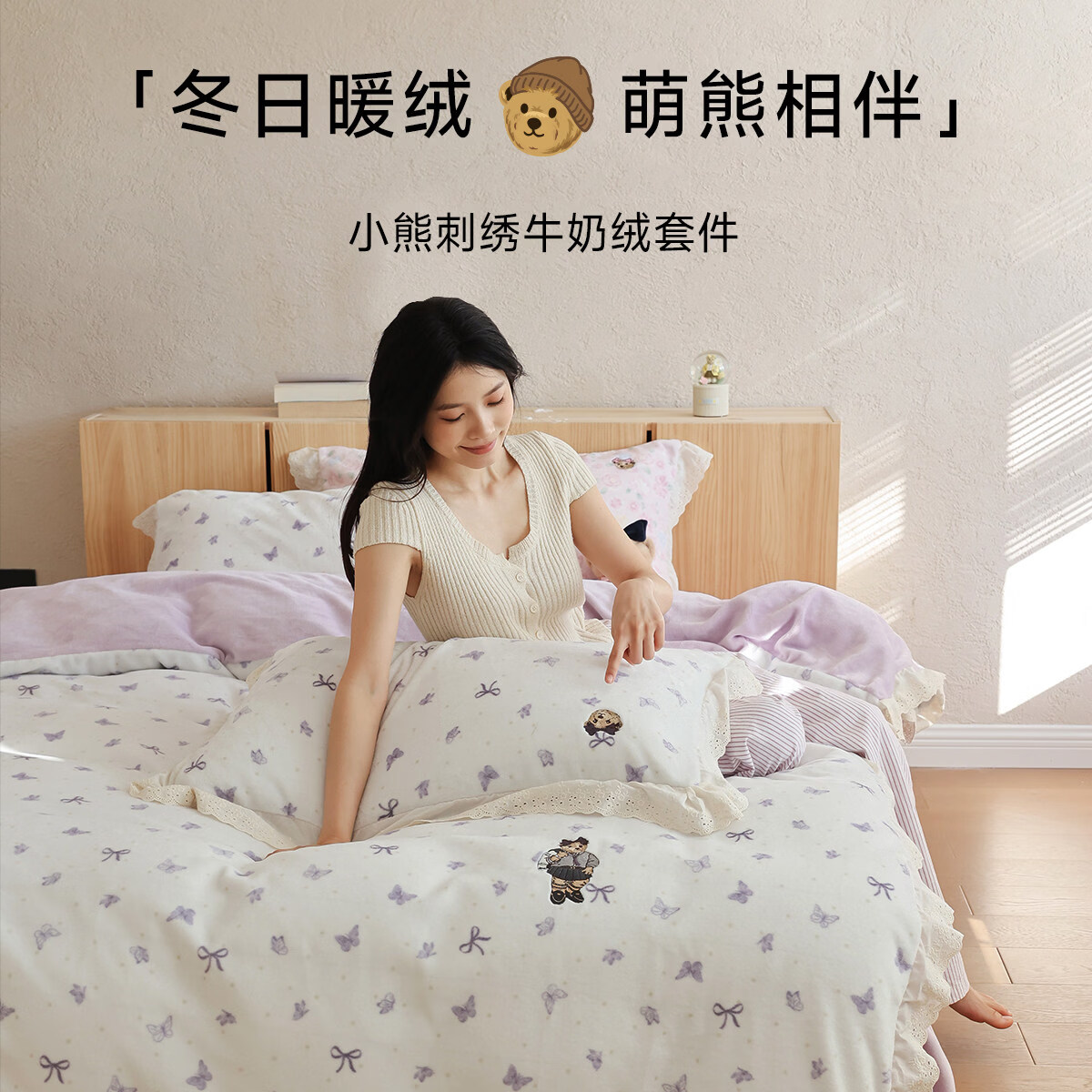 Teenie Weenie小熊A类少女粉碎花牛奶绒保暖四件套法式蕾丝花边被套加厚三件套 小熊慕斯系列-花粉 0.9/1.2m 床单款 被套150*200cm 三件套