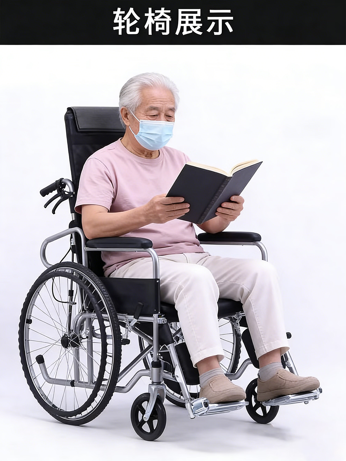 康立普(CANLIPE)轮椅瘫痪老年人可躺可洗澡大小便家用小型轻便折叠专用出行代步车 【主图热卖】扶手可掀+轻便铝圈轮+网垫可拆+赠品