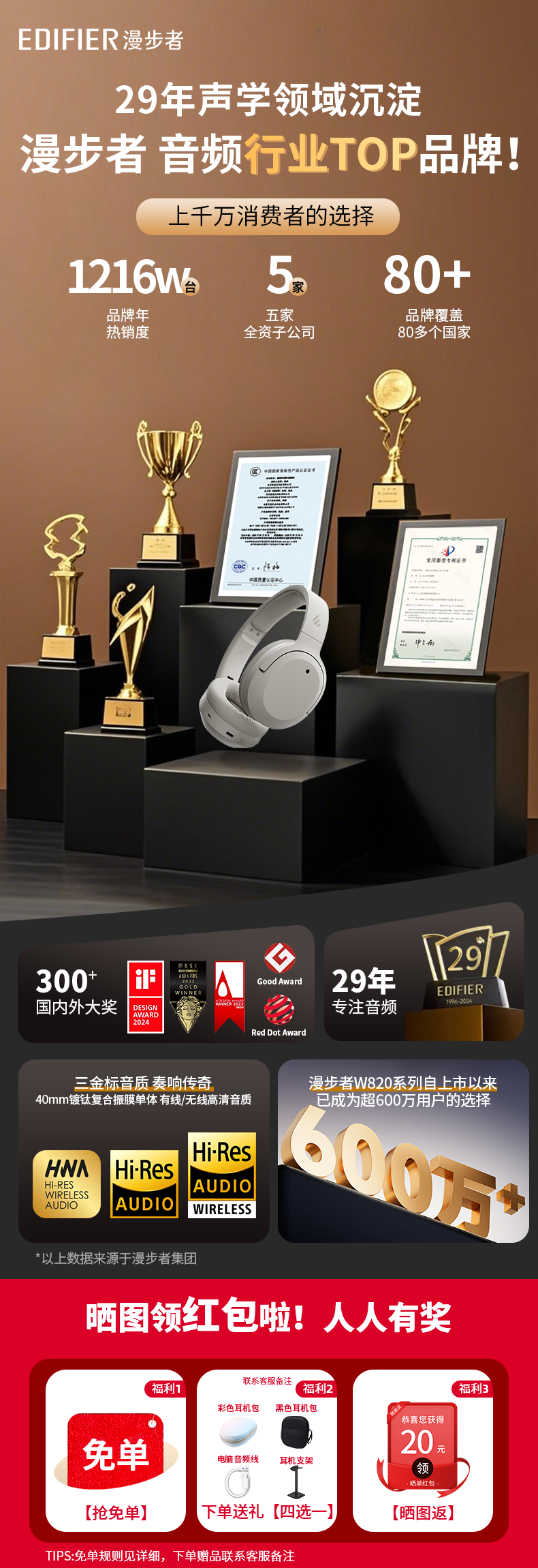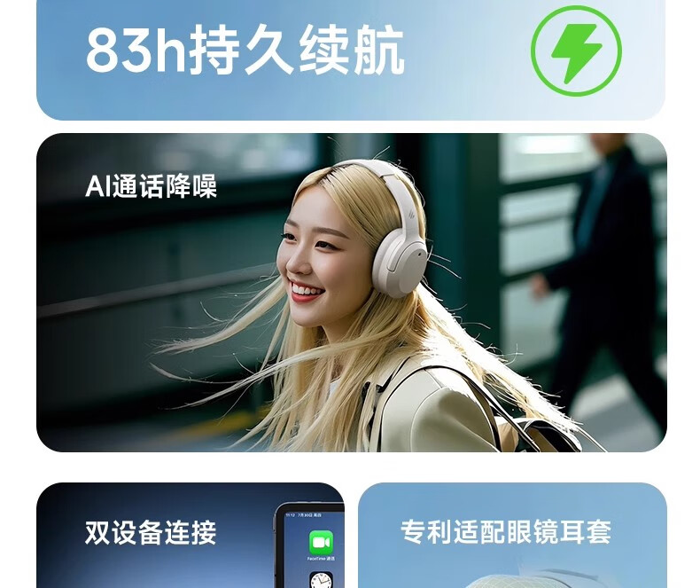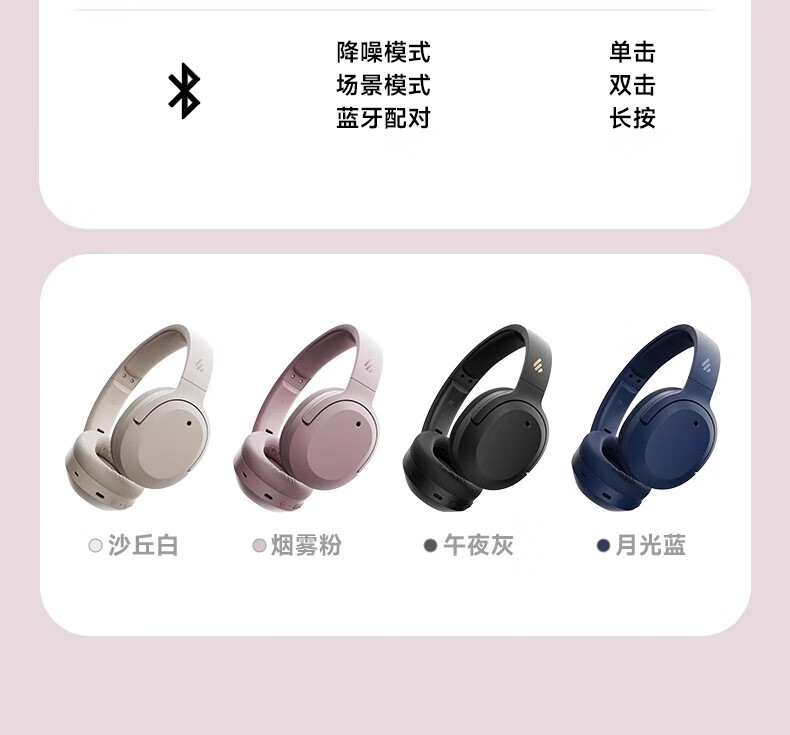 漫步者W820NB【三金标版】头戴式-49深度降噪蓝牙耳机包无线83小时长续航游戏网课LDAC解码耳麦耳塞耳机 【Hi-Res Audio】W820nb湖光蓝