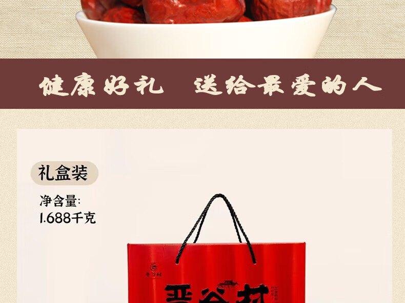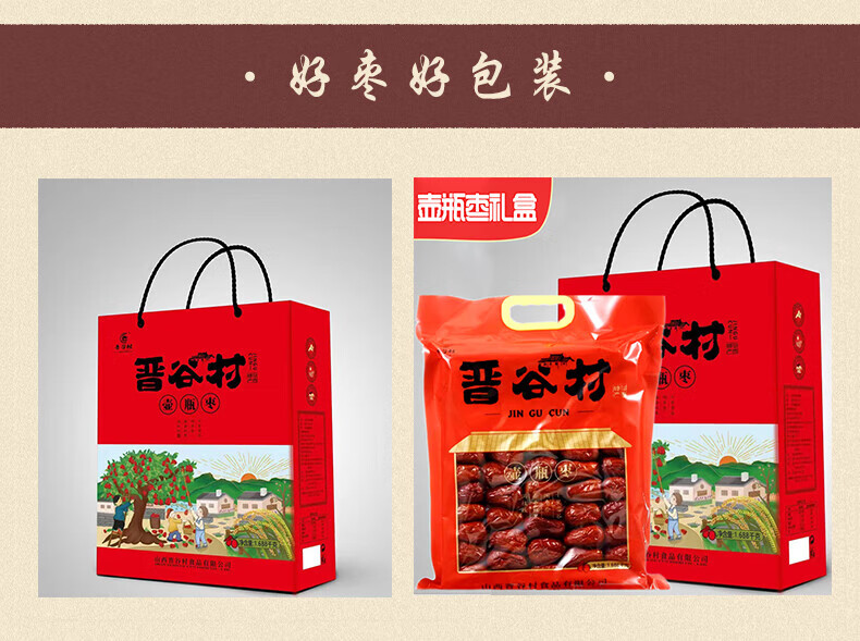 晋谷村红枣太谷壶瓶枣中秋礼盒1.688kg泡茶熬粥豆浆即食零食山西特产