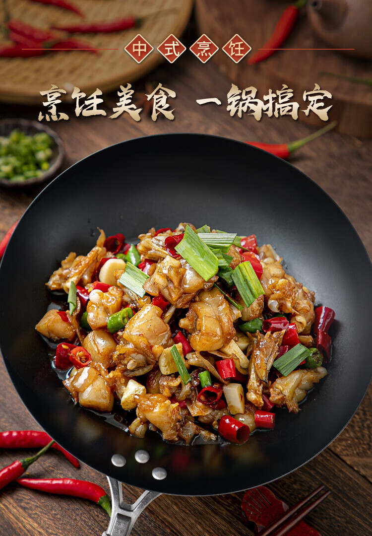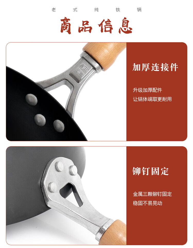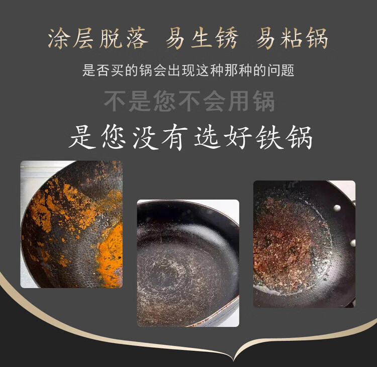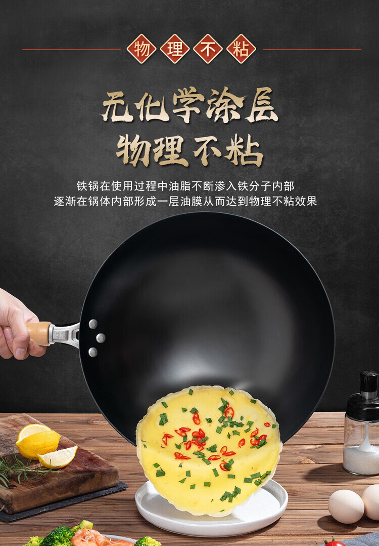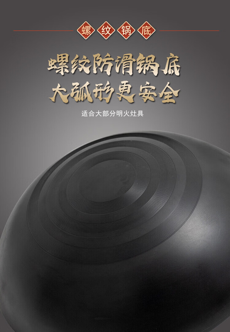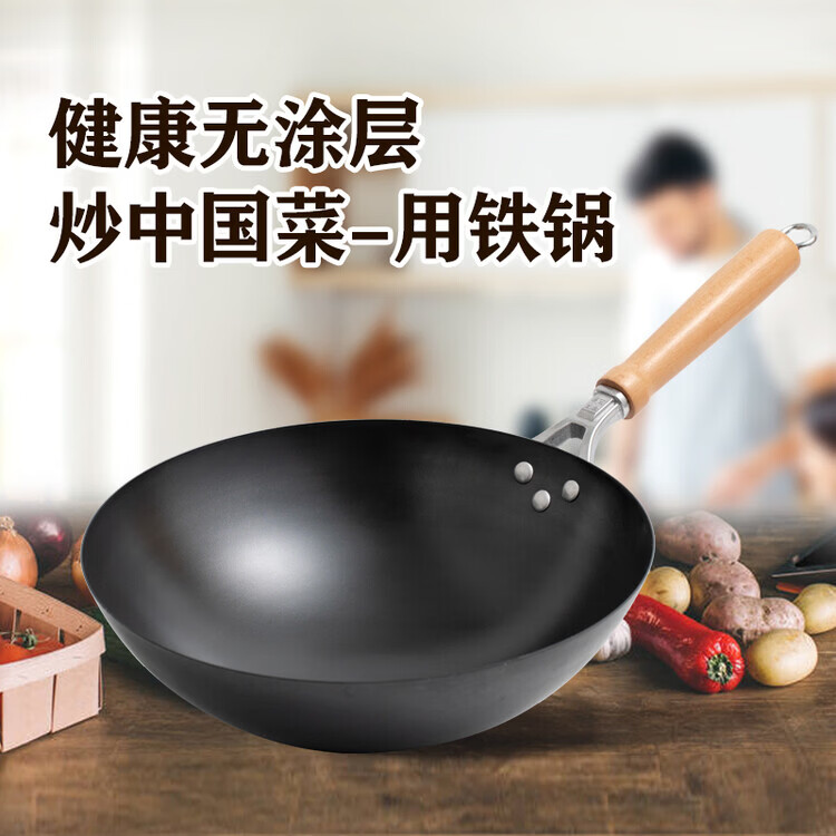 大鑫铁锅大鑫中式无涂层真铁锅第二代防滑设计(已开锅防生锈) 二代36厘米圆底(一家8人用)有盖木柄铲(加耳朵) 36cm