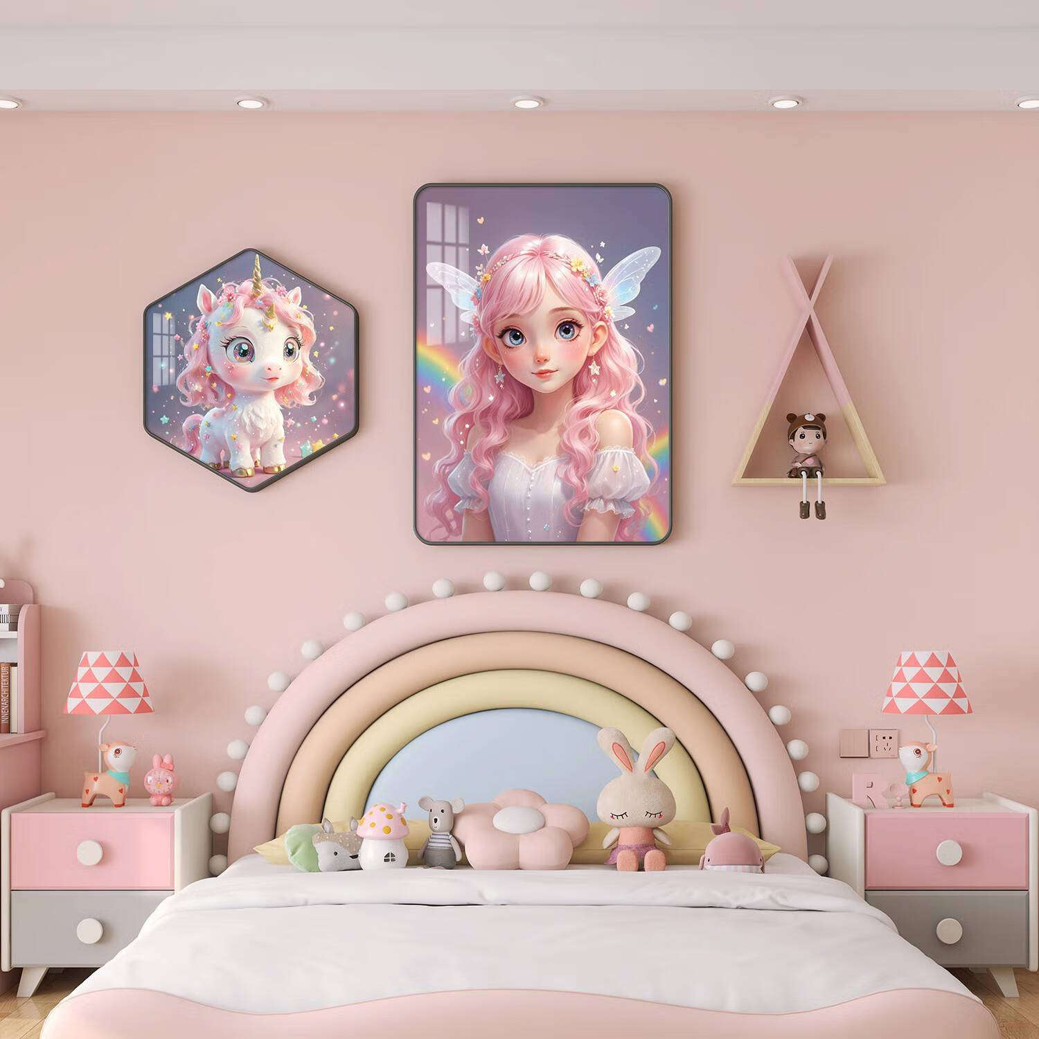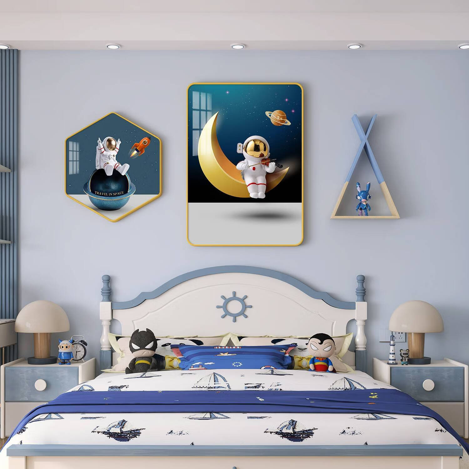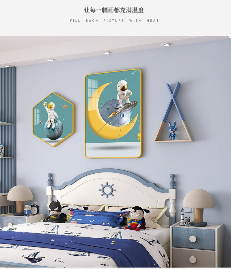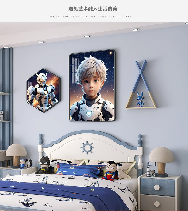 现代女孩儿童房装饰画男孩儿卧室床头挂画公主房间背景壁画免打孔 紫蝎战甲(蓝架子) PVC黑色(28寸)1.5-1.8米床