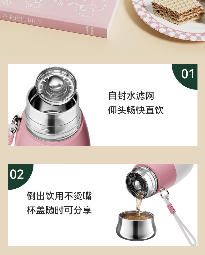 GROOT不锈钢保温杯2024新款女士便携随行杯男士泡茶水杯高颜值杯子 桃夭粉 450ml