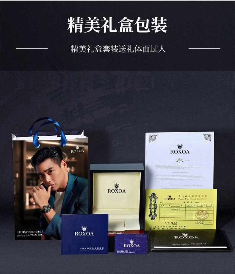 梭伦(SOLLEN)新款迷宫表盘手表男镂空全自动机械表男士手表防水夜光腕表送男友 蓝色黑盘【国潮双开礼盒】326