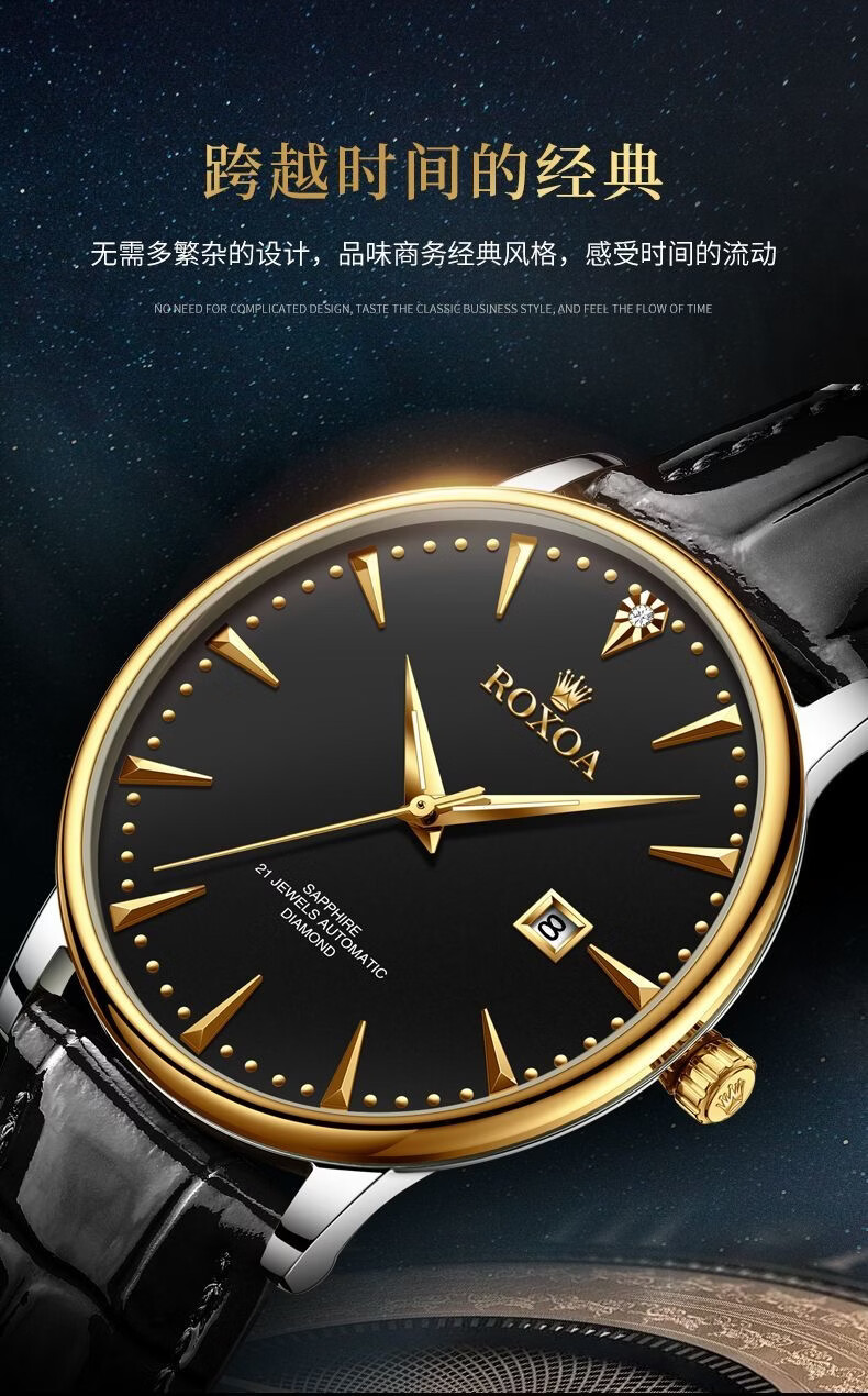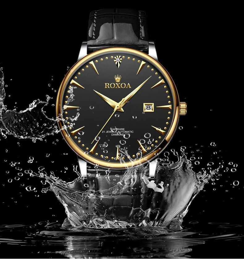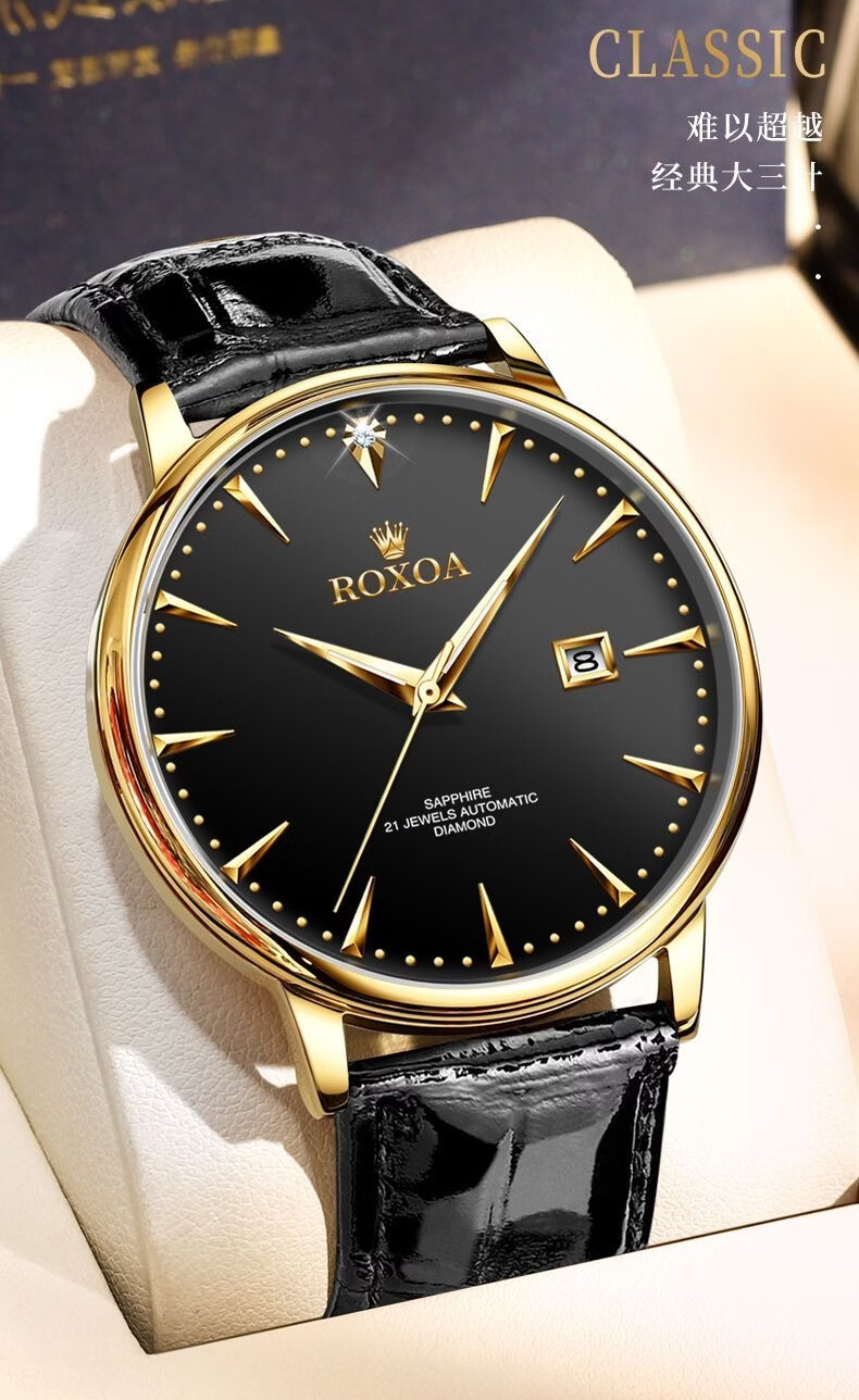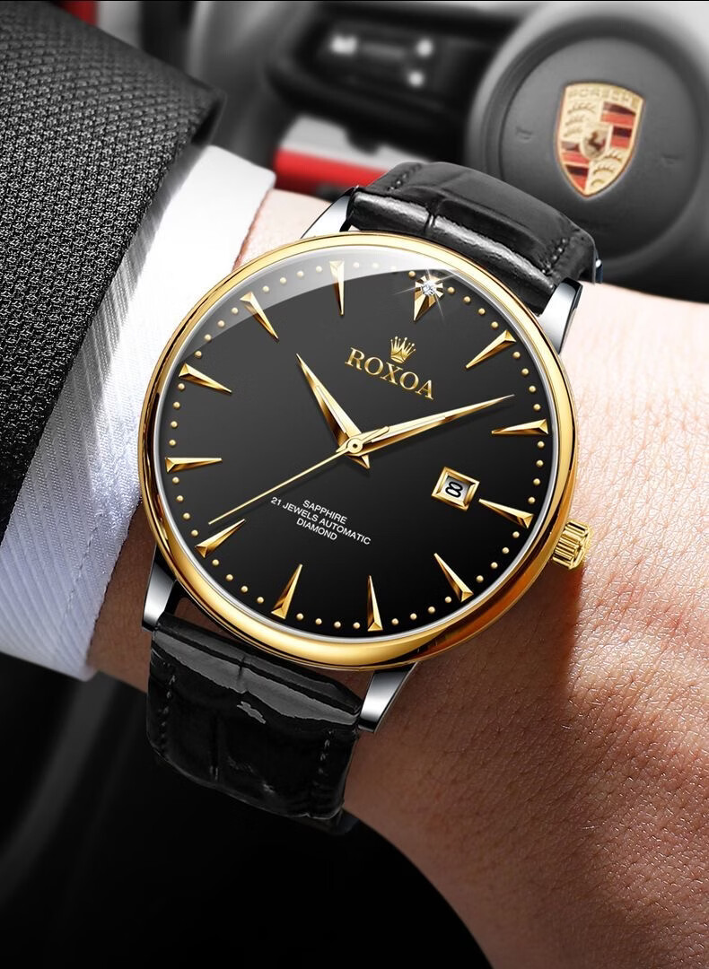 瑞士劳力RoIex男士手表夜光防水全自动机械表双日历真钻名表专用 间金黑面升级版