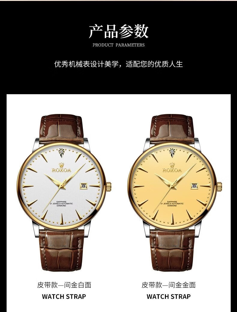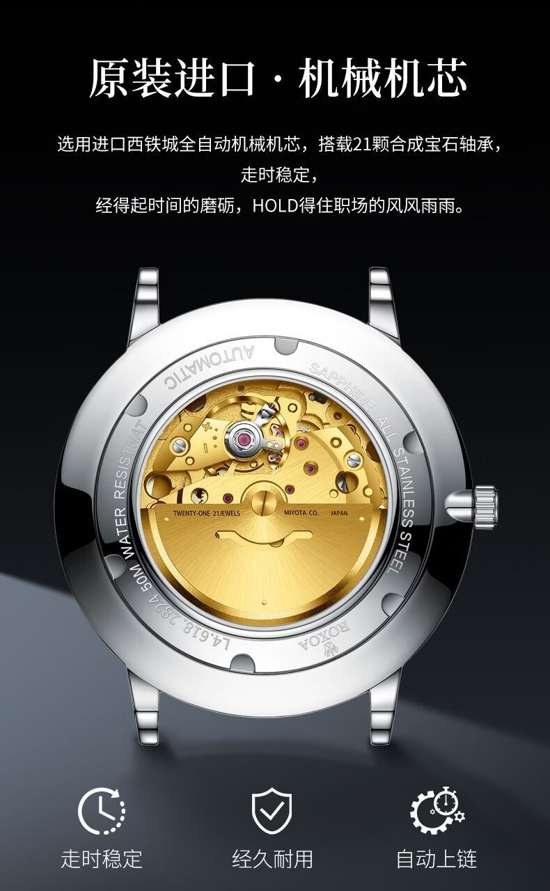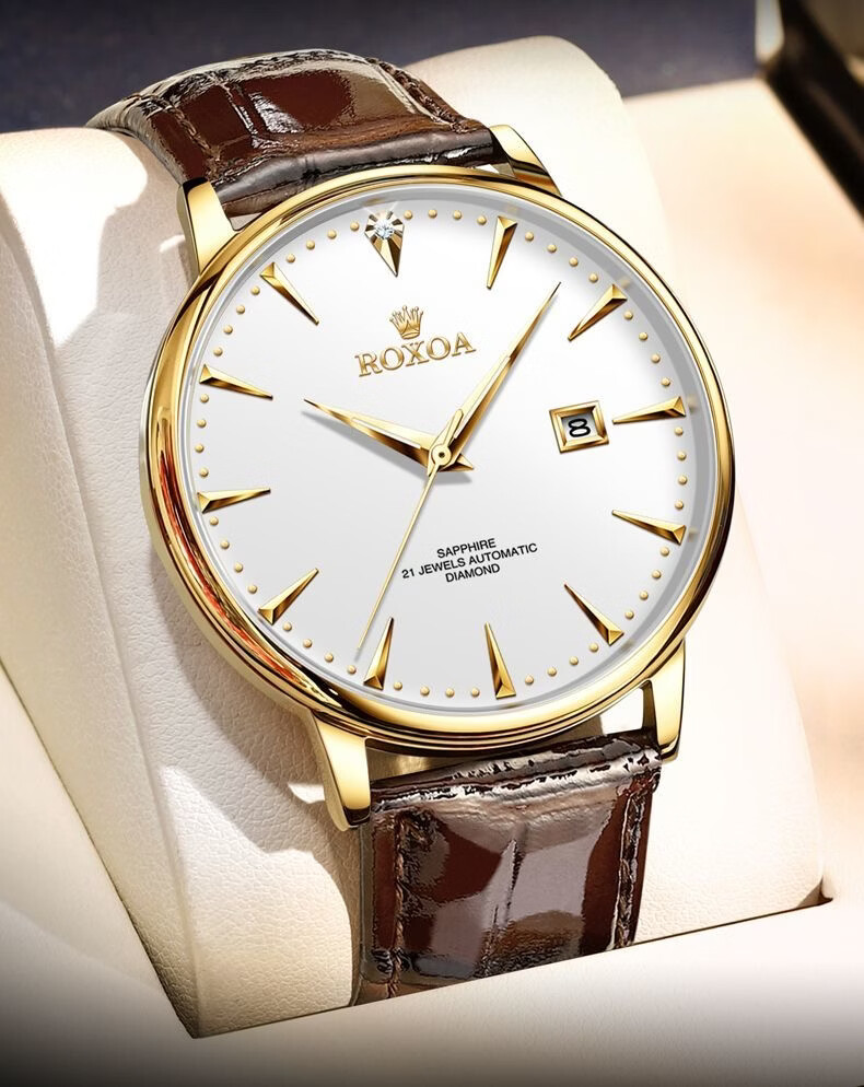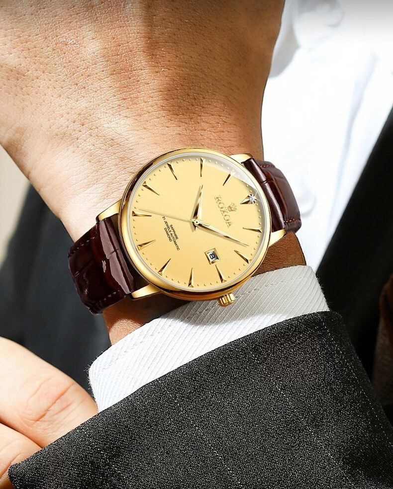 冠琴(GUANQIN)十大品牌手表男机械表全自动男表夜光防水进口机芯男士手表 间金白面【进口西鉄城机芯】